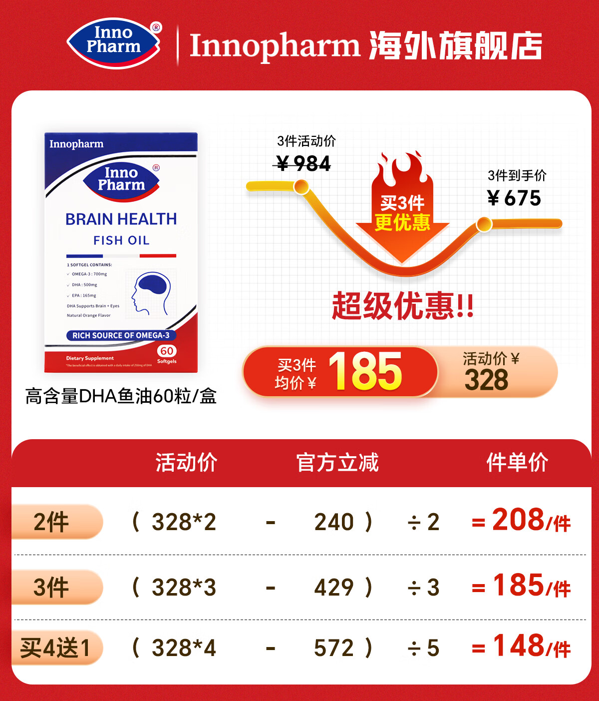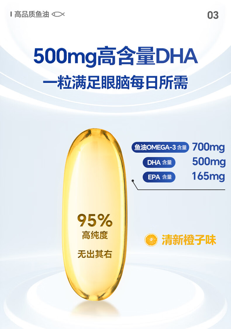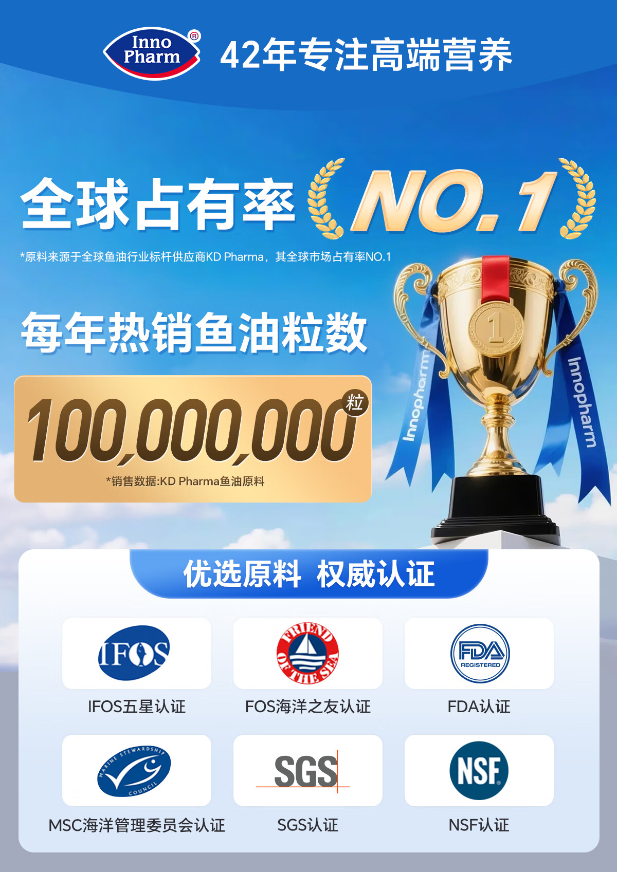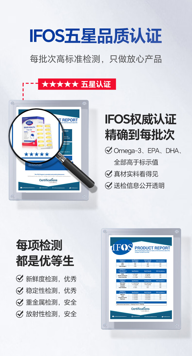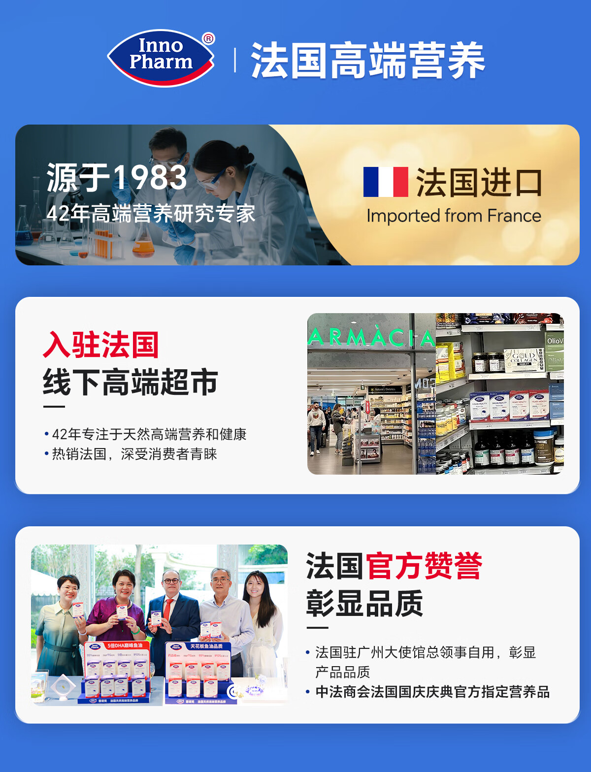Innopharm茵诺梵95%高纯度深海鱼油软胶囊omega3青少年学生补脑dha小蓝盒 rTG结构 大脑高浓度鱼油软胶囊 60粒