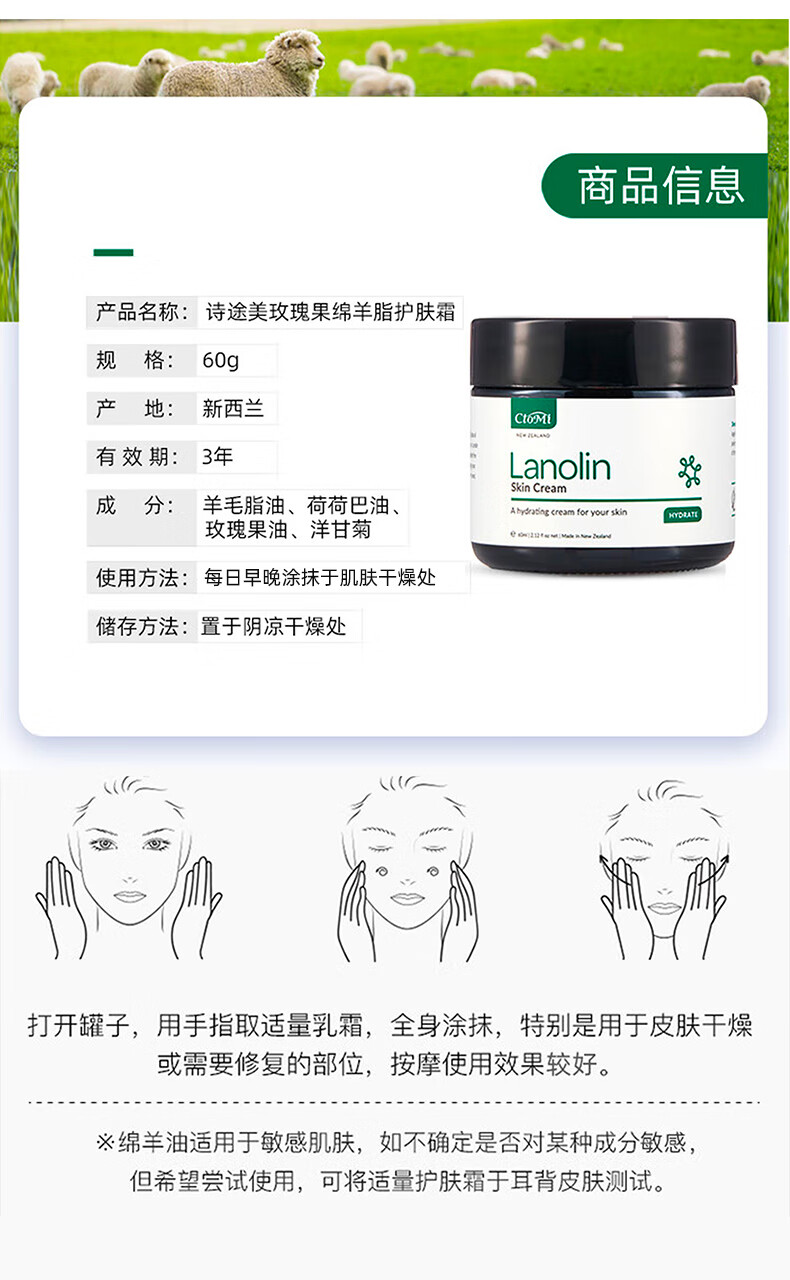 ctomi护手霜绵羊油护肤霜保湿多效面霜身体乳补水新西兰进口旗舰店60g