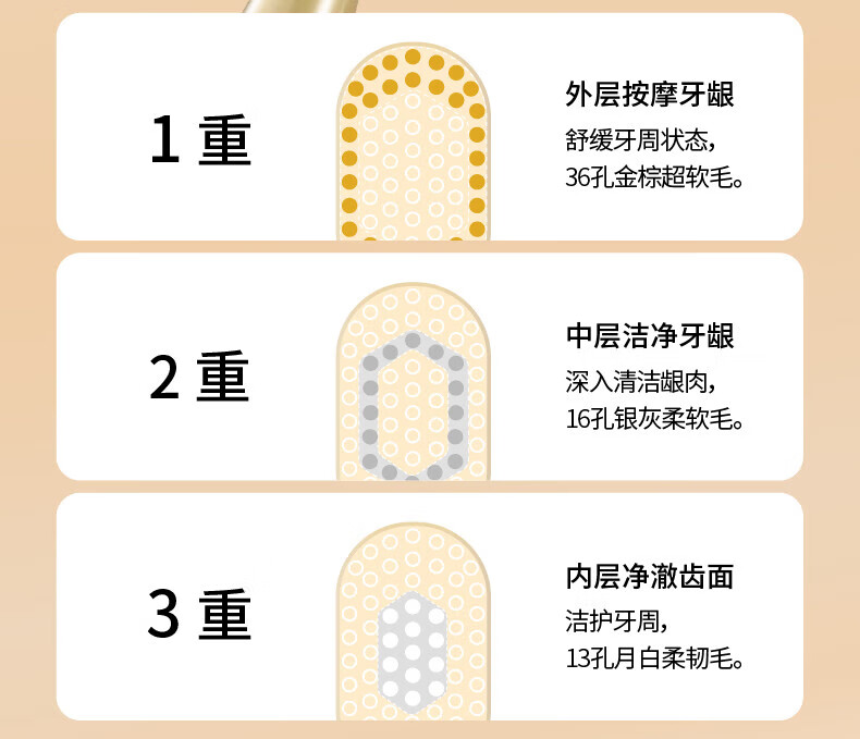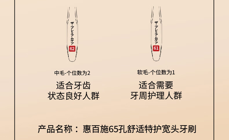 惠百施牙刷进口65孔4支 三重植毛软毛中毛成人手动牙刷清新口气男女通用 【三重植毛】65孔软毛 4支