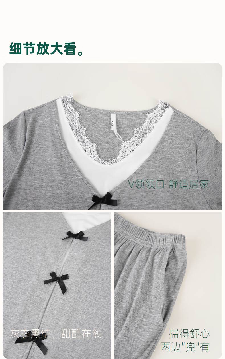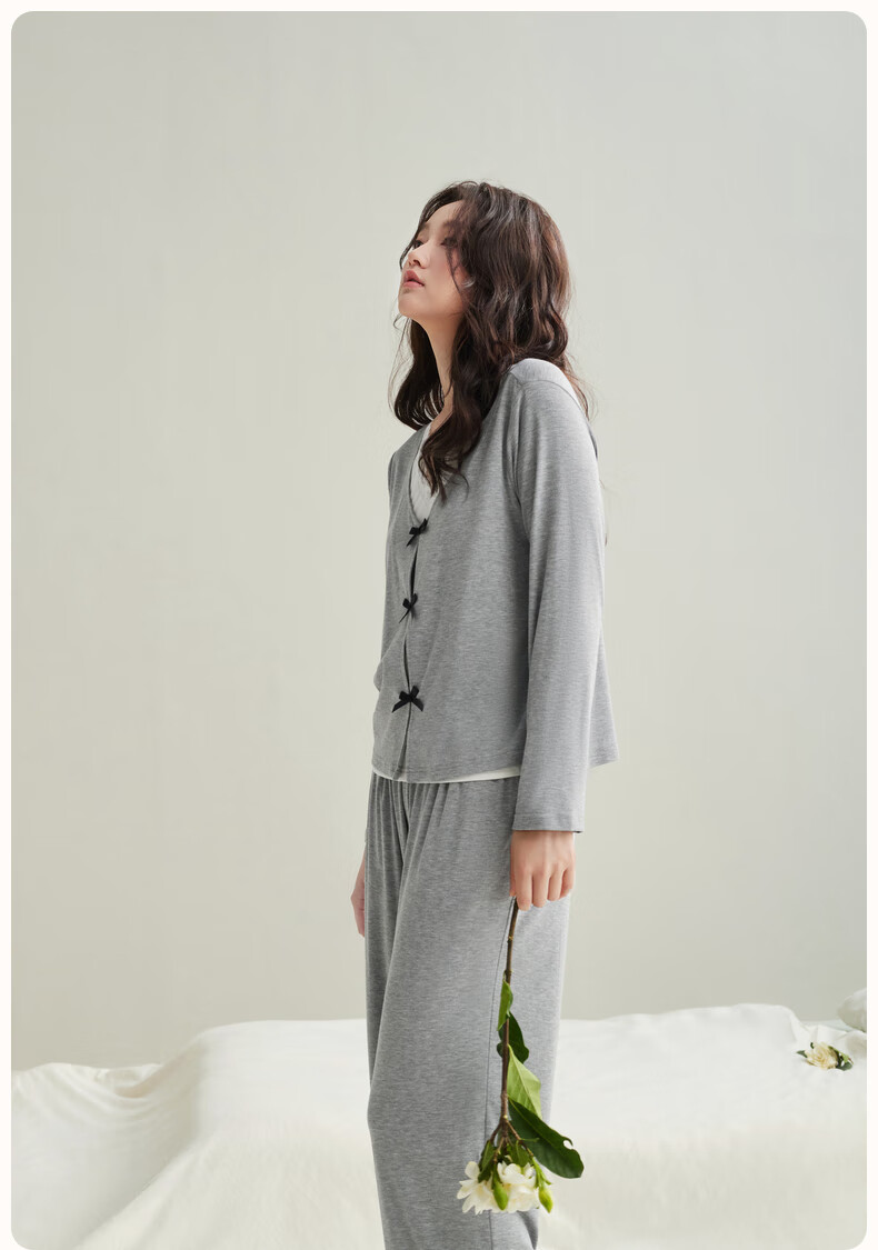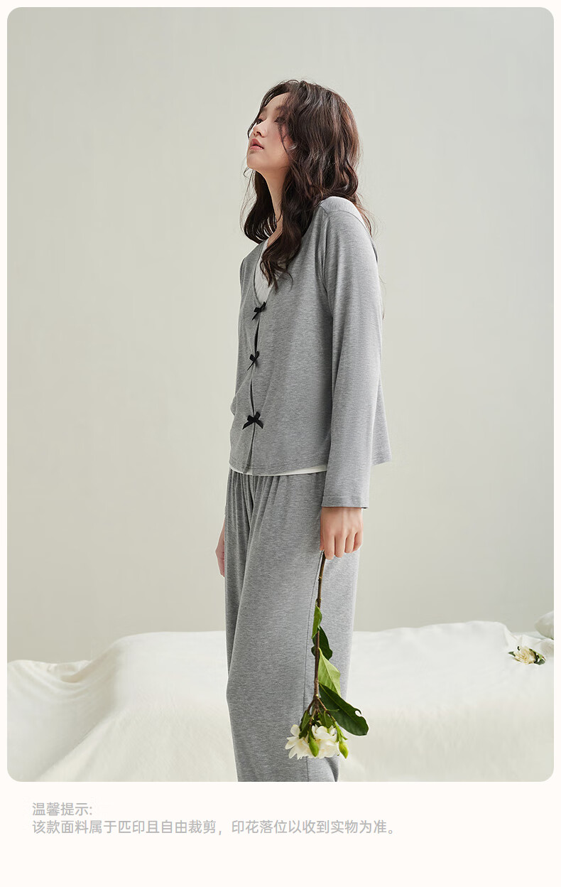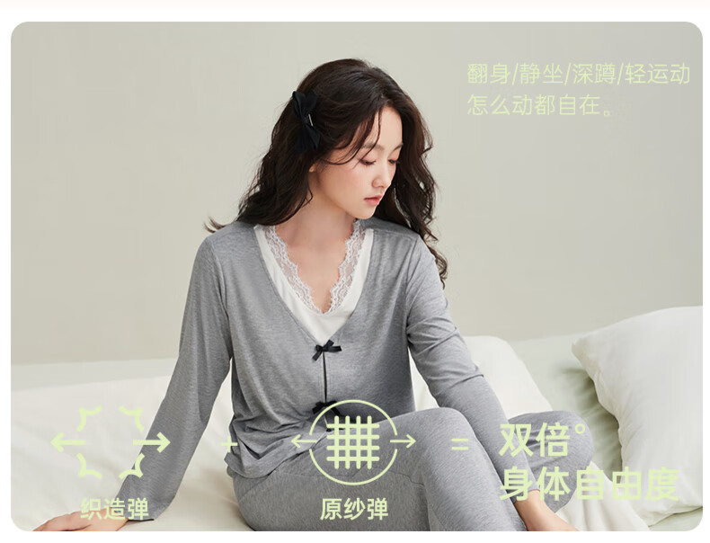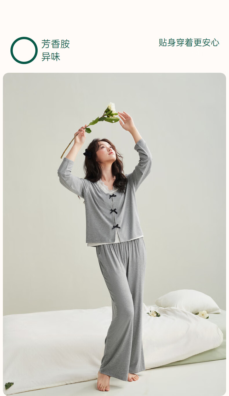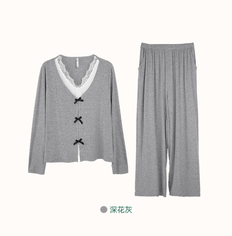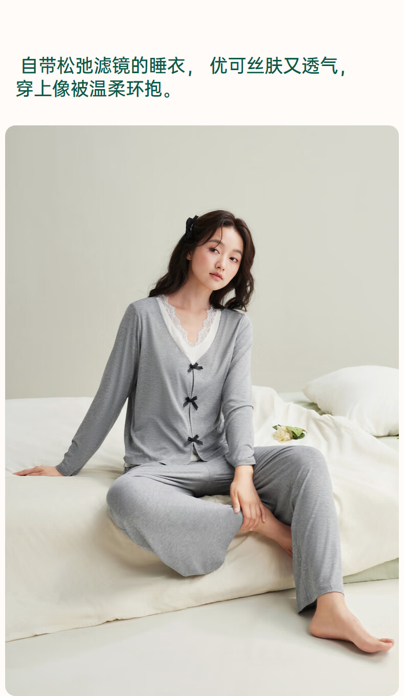 安之伴【巨柔软】睡衣女春秋季2025新款优可丝宽松大码可爱家居服 深花灰【柔软有弹性-超透气】 M