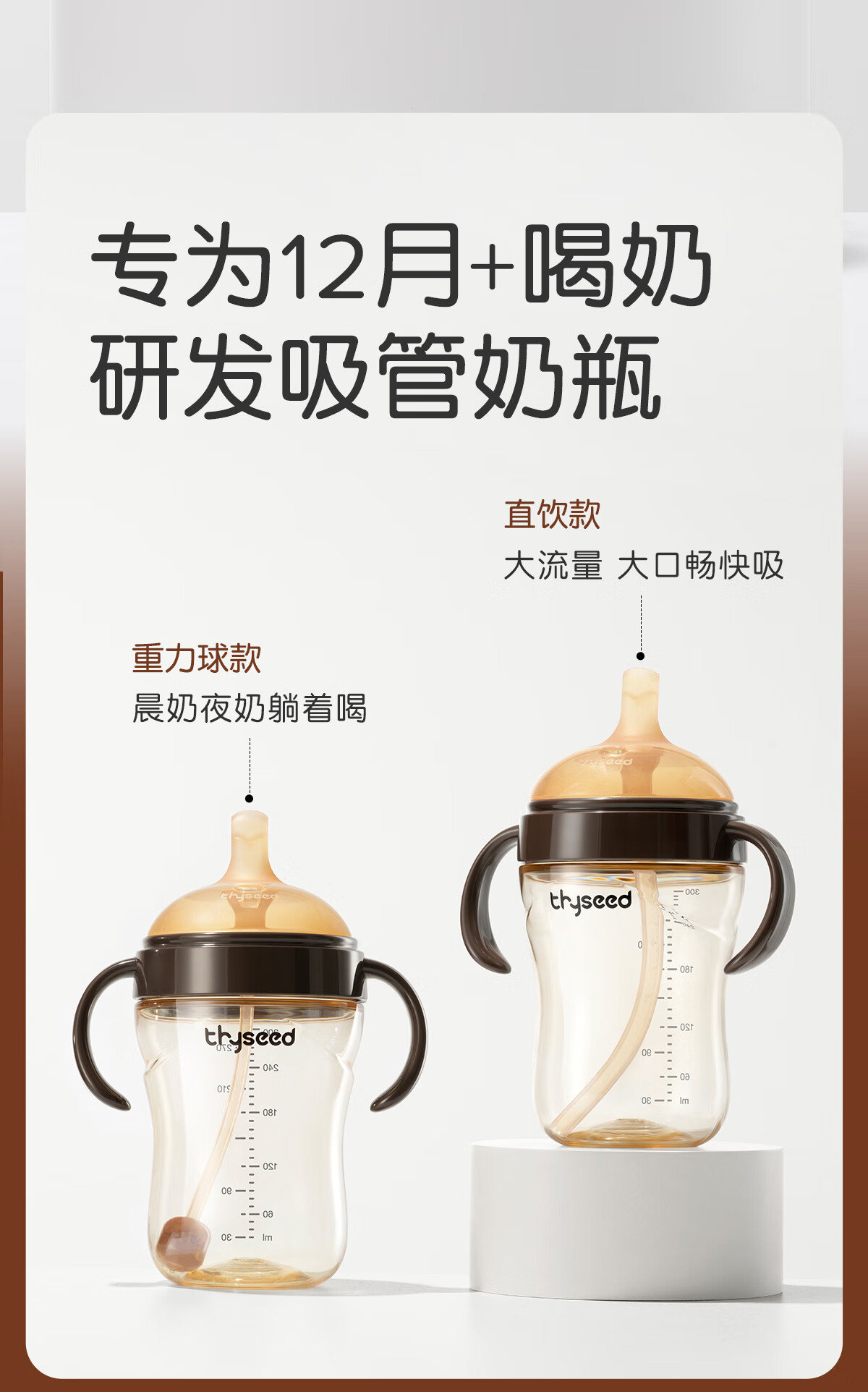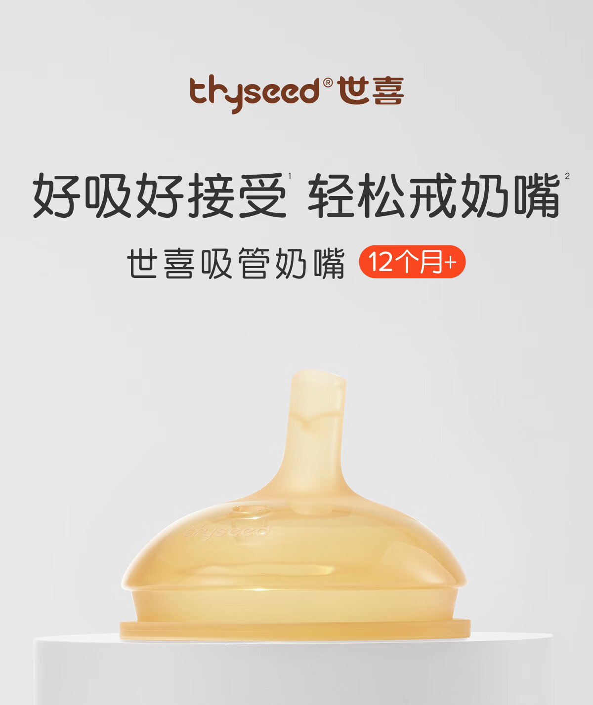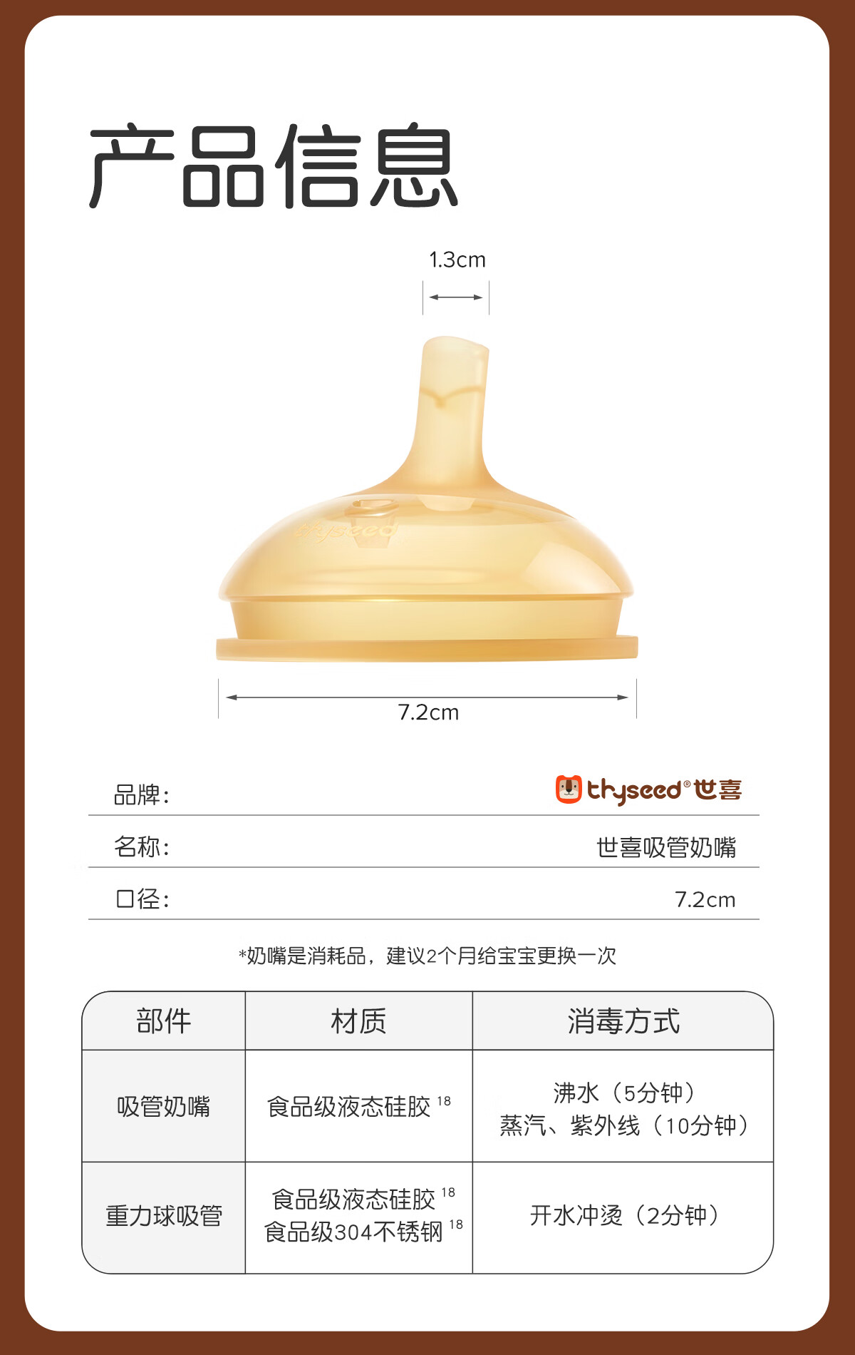 世喜吸管奶嘴大宝宝一岁以上宽口径硅胶 两只装