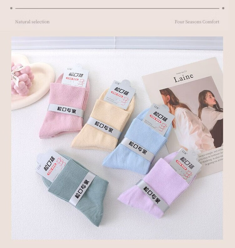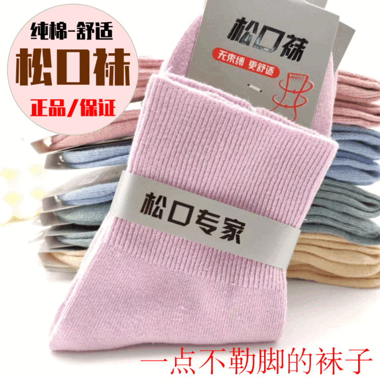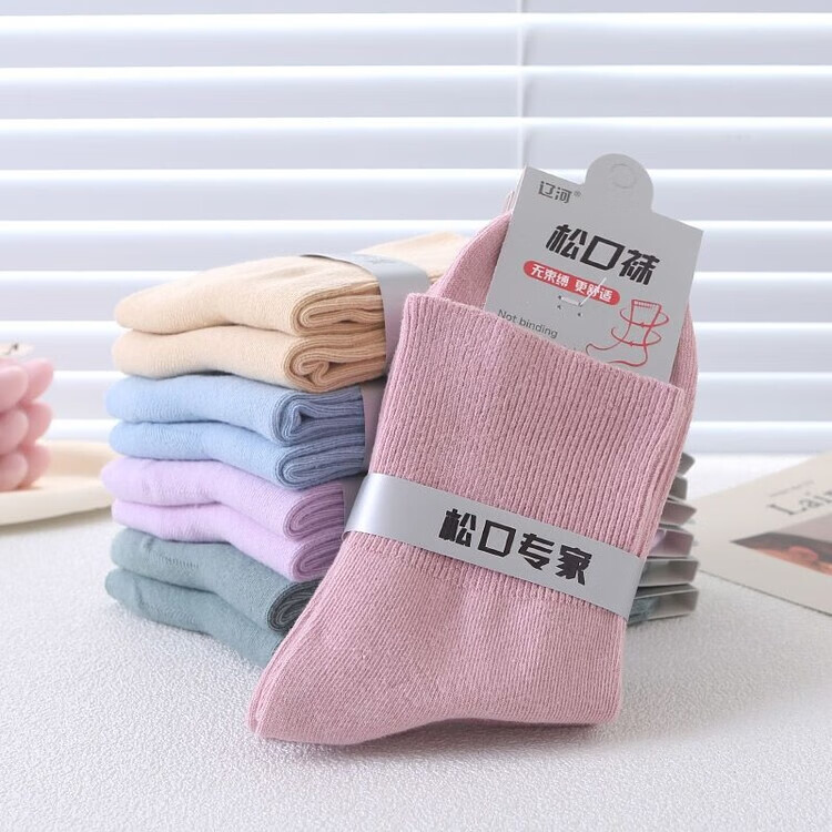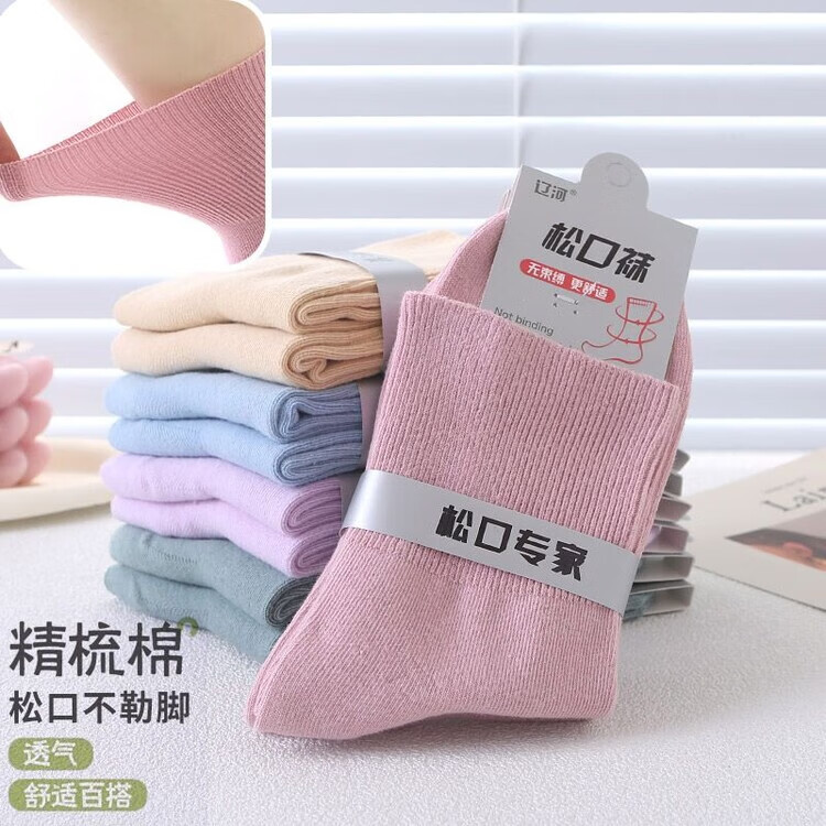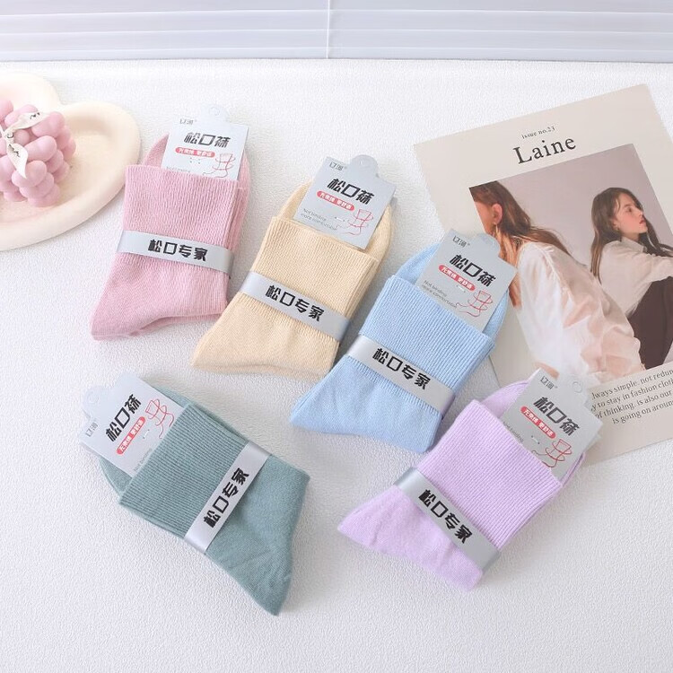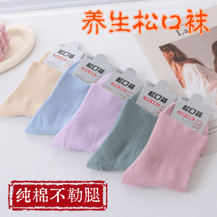 AILUKI秋冬松口袜女袜月子精梳棉宽口袜子棉袜纯色不勒脚孕妇妈妈袜花边 女/彩棉紫色 五双/组合【四季中厚】中筒松口养生棉袜