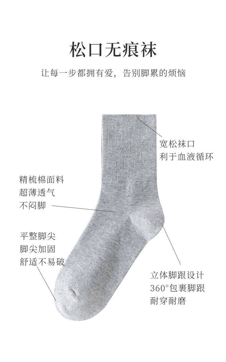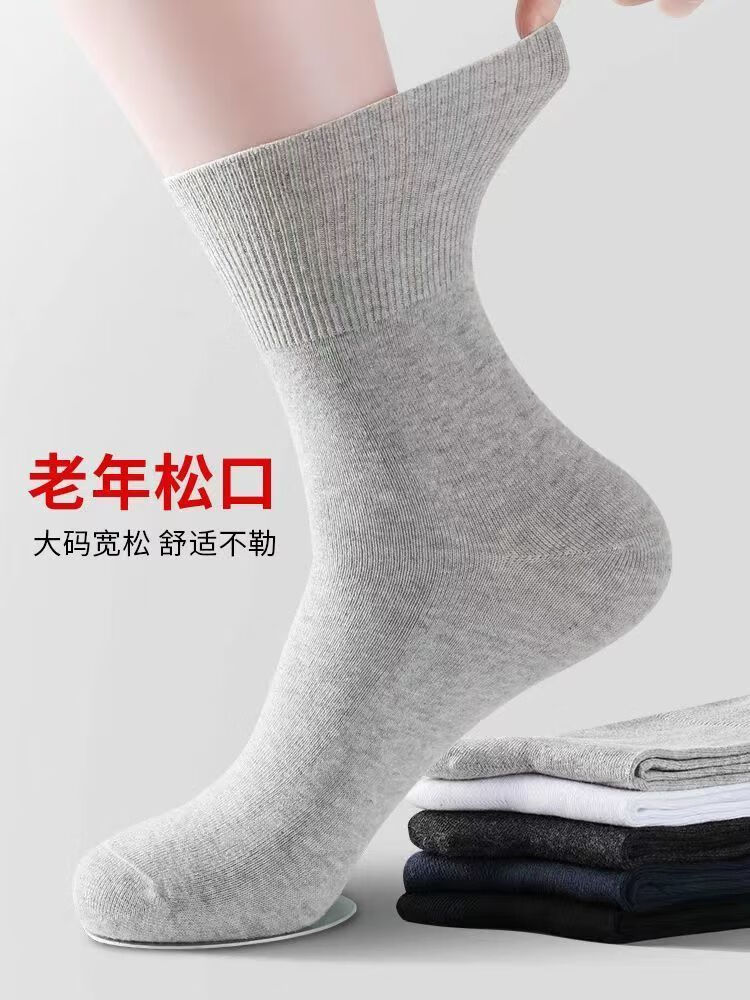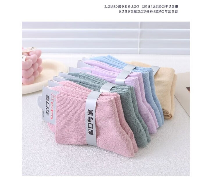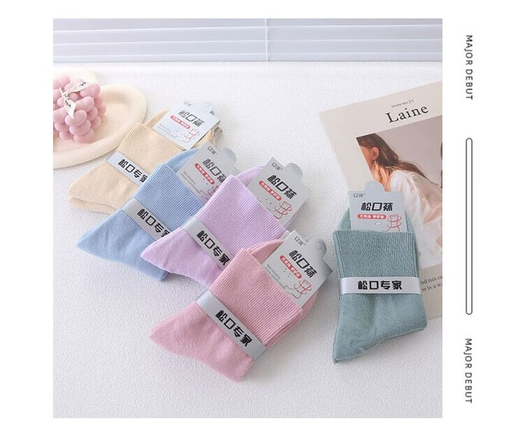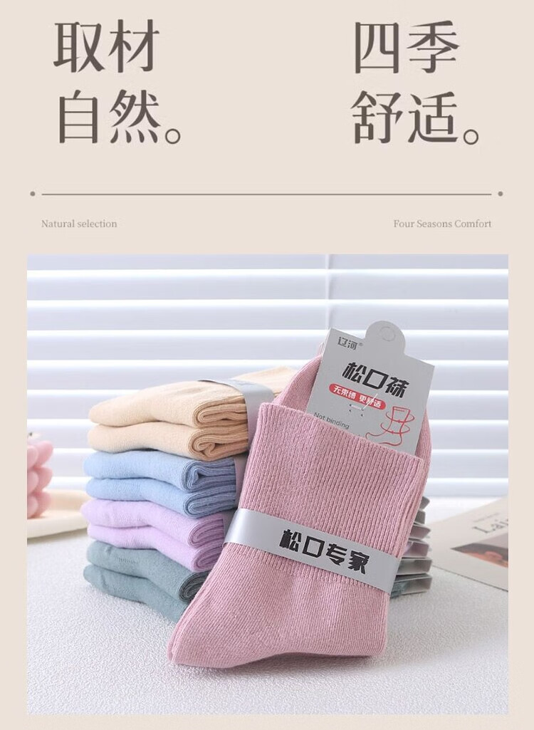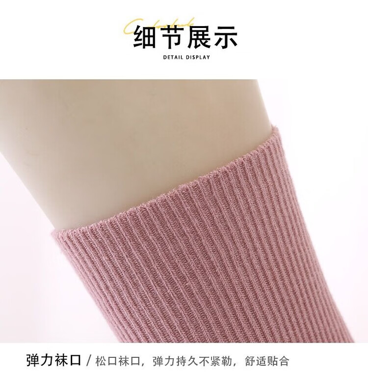 AILUKI秋冬松口袜女袜月子精梳棉宽口袜子棉袜纯色不勒脚孕妇妈妈袜花边 女/彩棉紫色 五双/组合【四季中厚】中筒松口养生棉袜