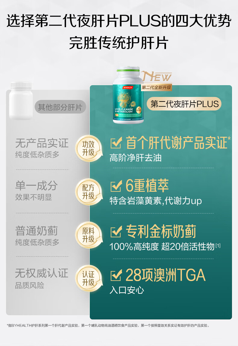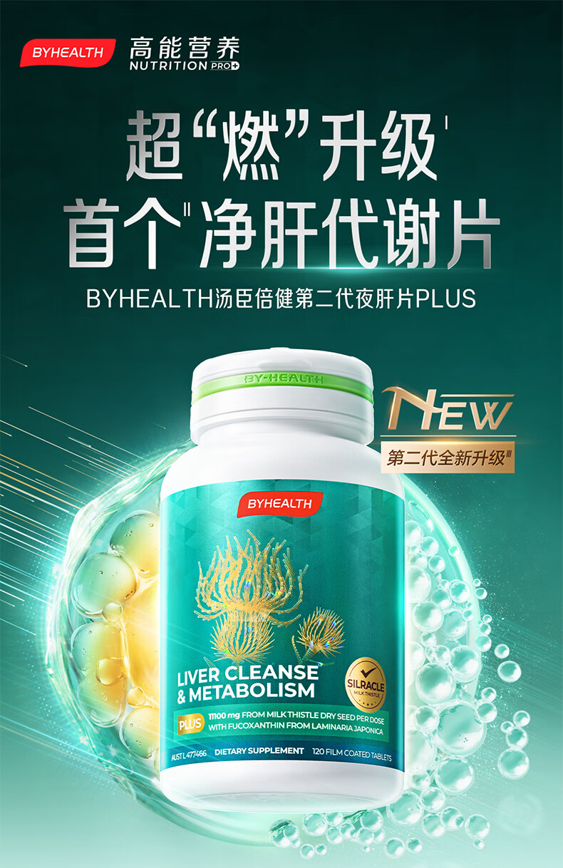 汤臣倍健(BYHEALTH)奶蓟草护肝片PLUS升级版男女加班熬夜应酬脂肪肝水飞蓟进口养肝 护肝PLUS2.0升级版*2【周期装 去油排毒】