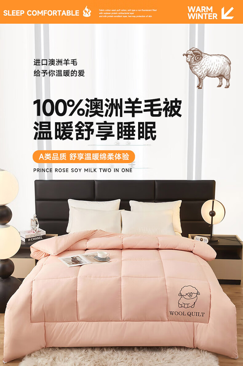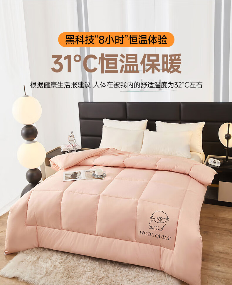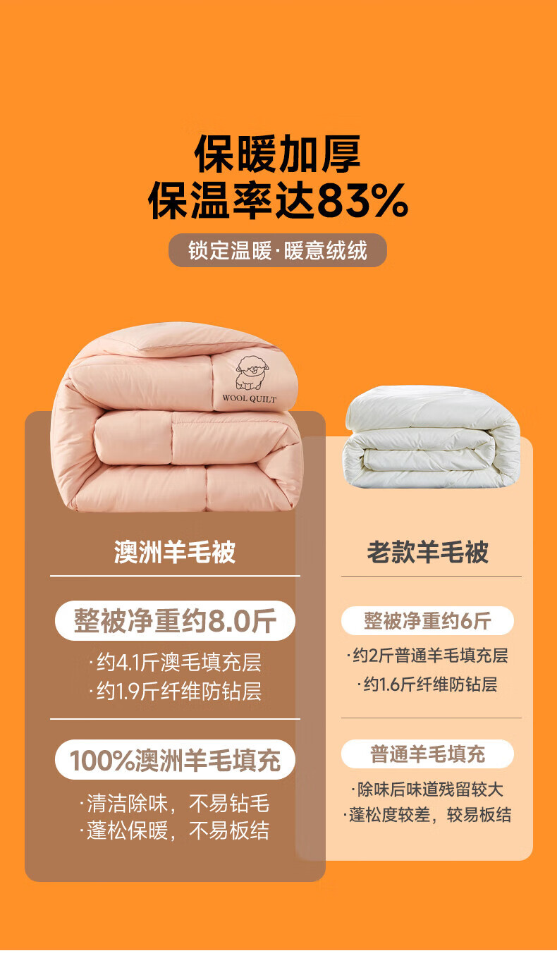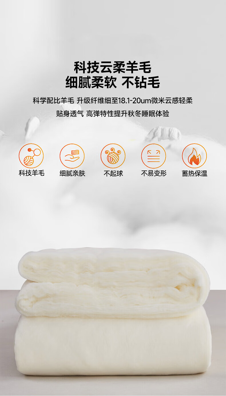 恒源祥澳洲进口羊毛被子被芯春秋被8斤厚冬被加厚保暖单人双人棉被 美羊羊-白 150*200冬被【4斤夏被】