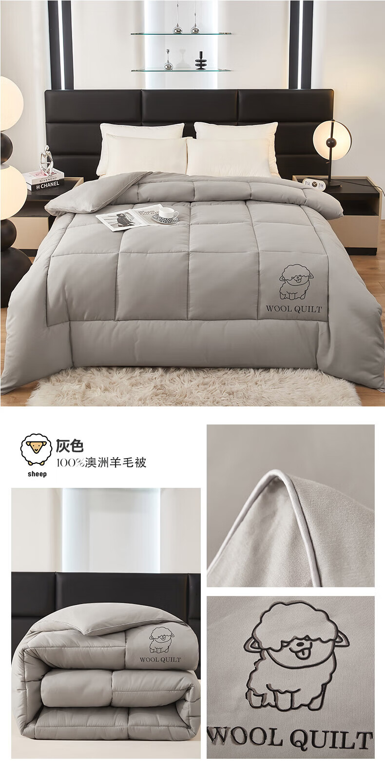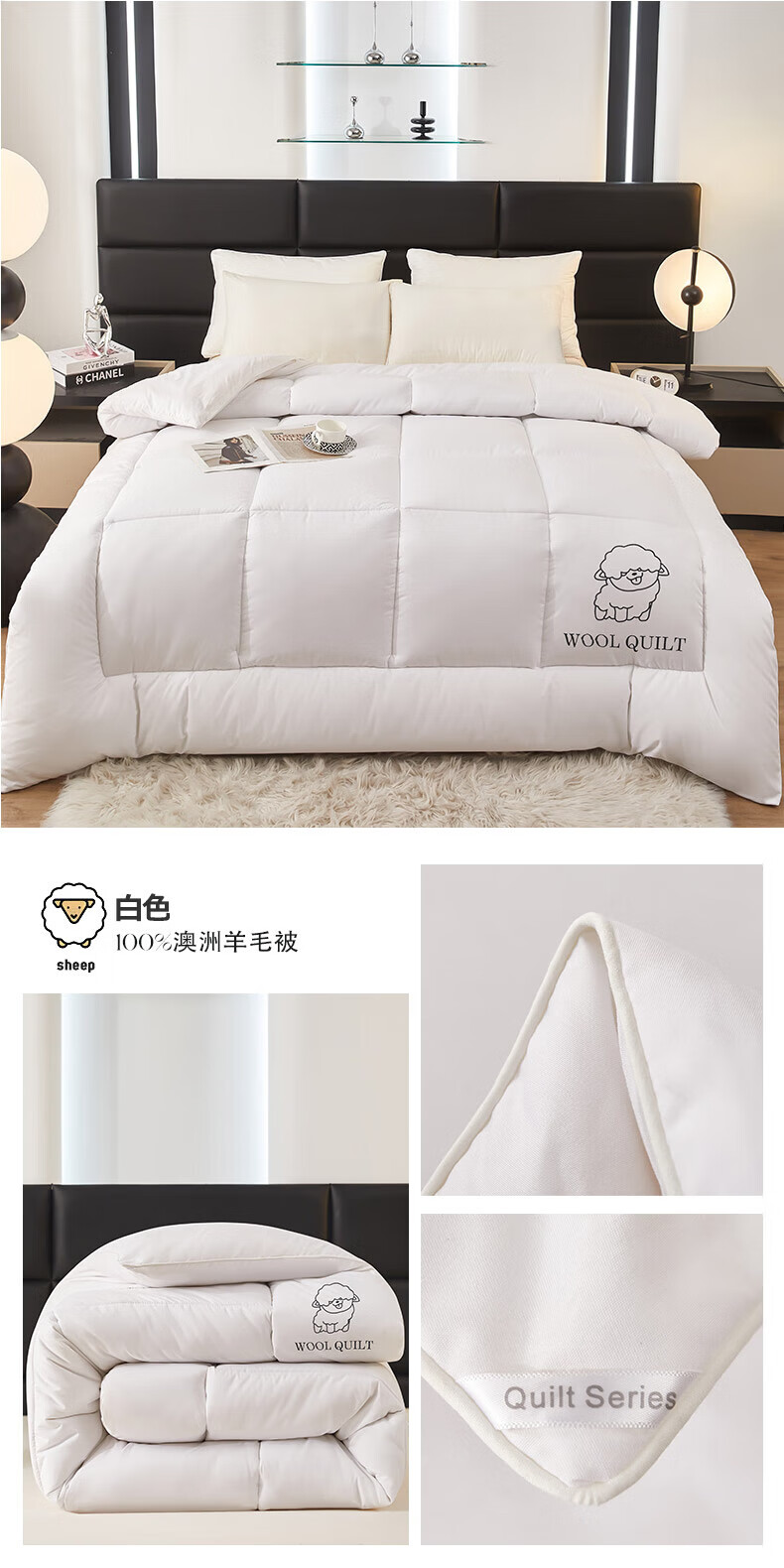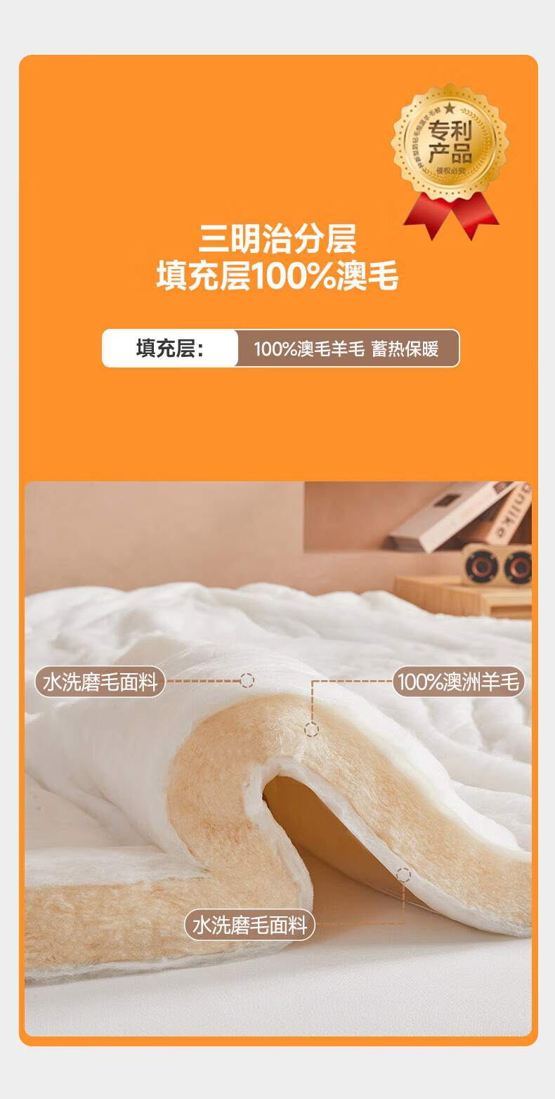 恒源祥澳洲进口羊毛被子被芯春秋被8斤厚冬被加厚保暖单人双人棉被 美羊羊-白 150*200冬被【4斤夏被】