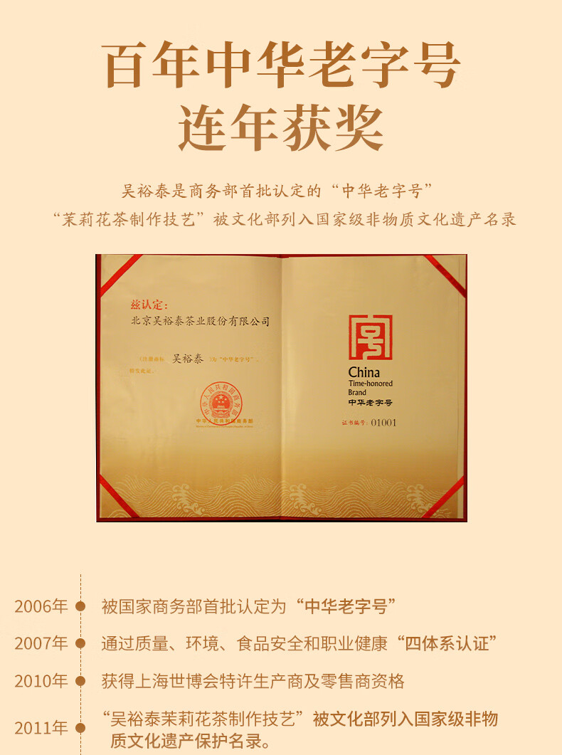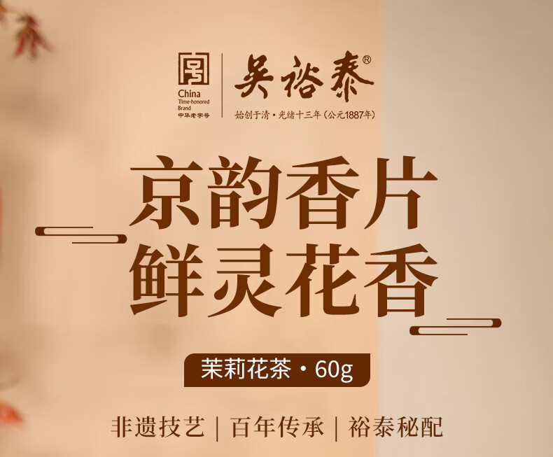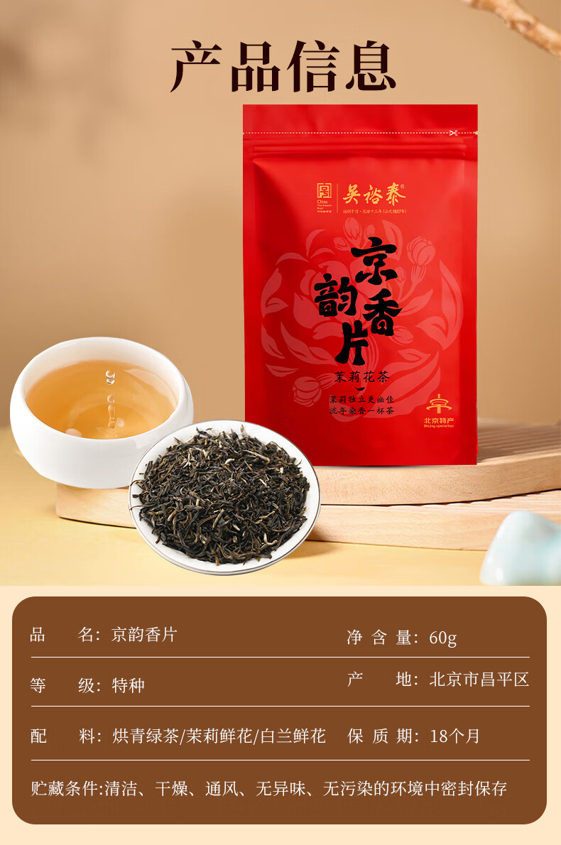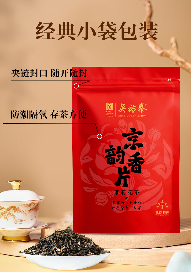 吴裕泰 茉莉花茶 京韵香片60g袋装 六窨含芽 浓香耐泡 老北京茶叶