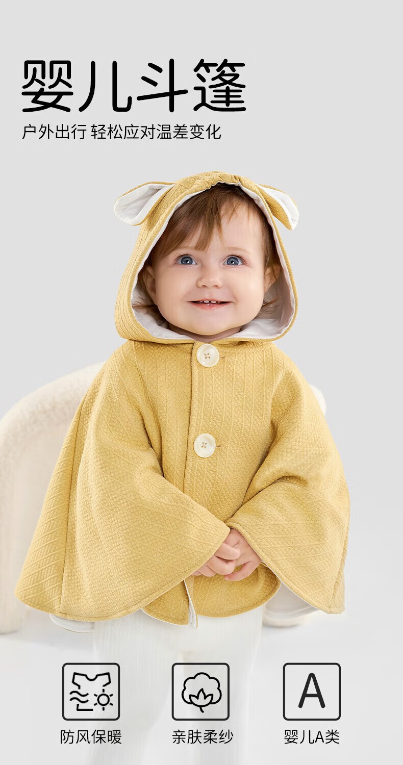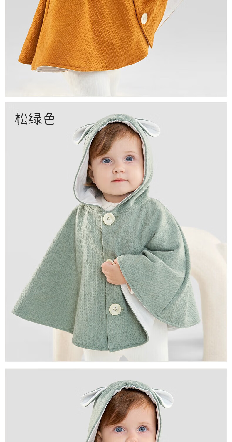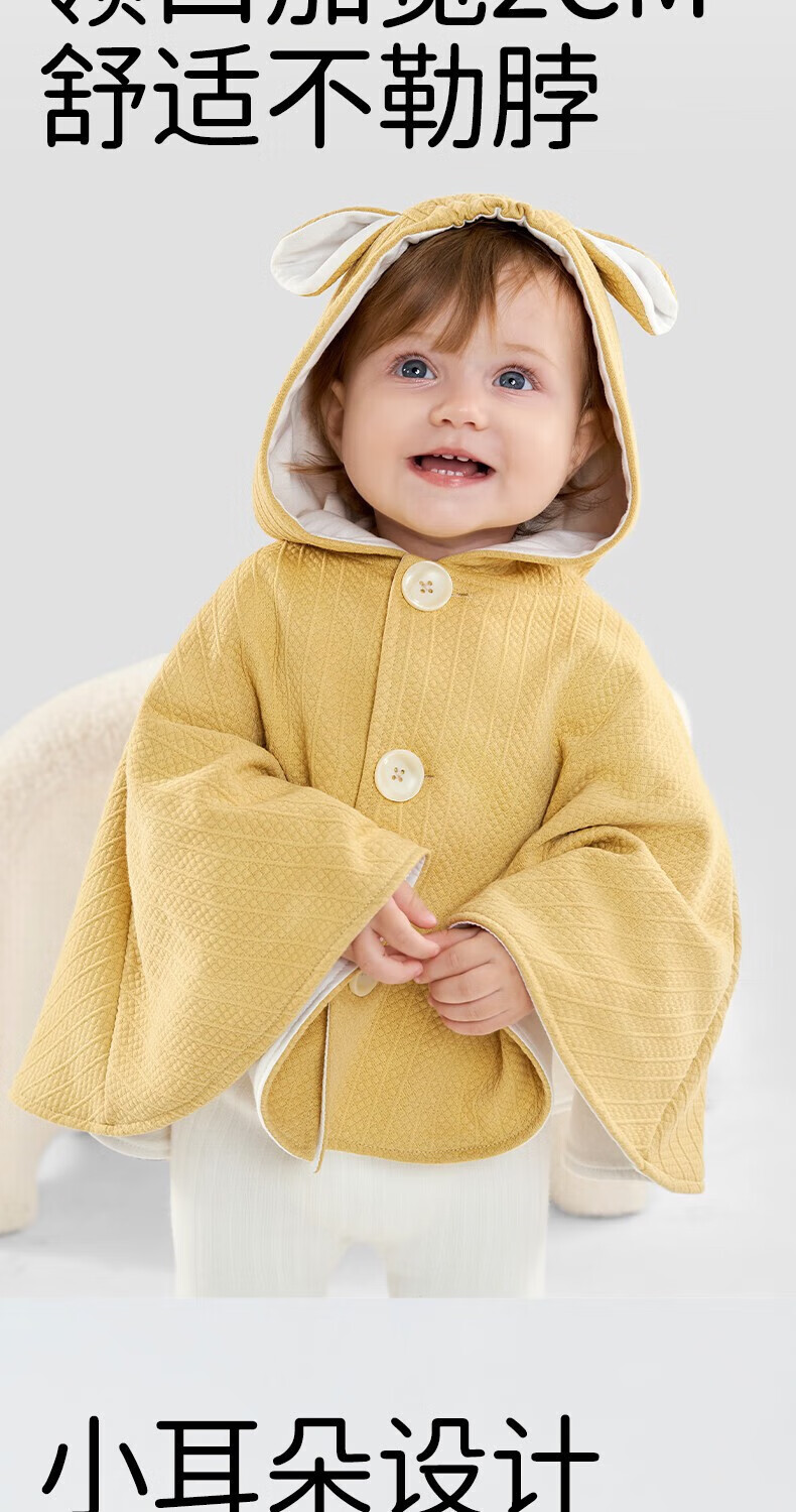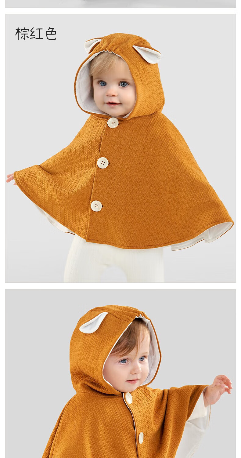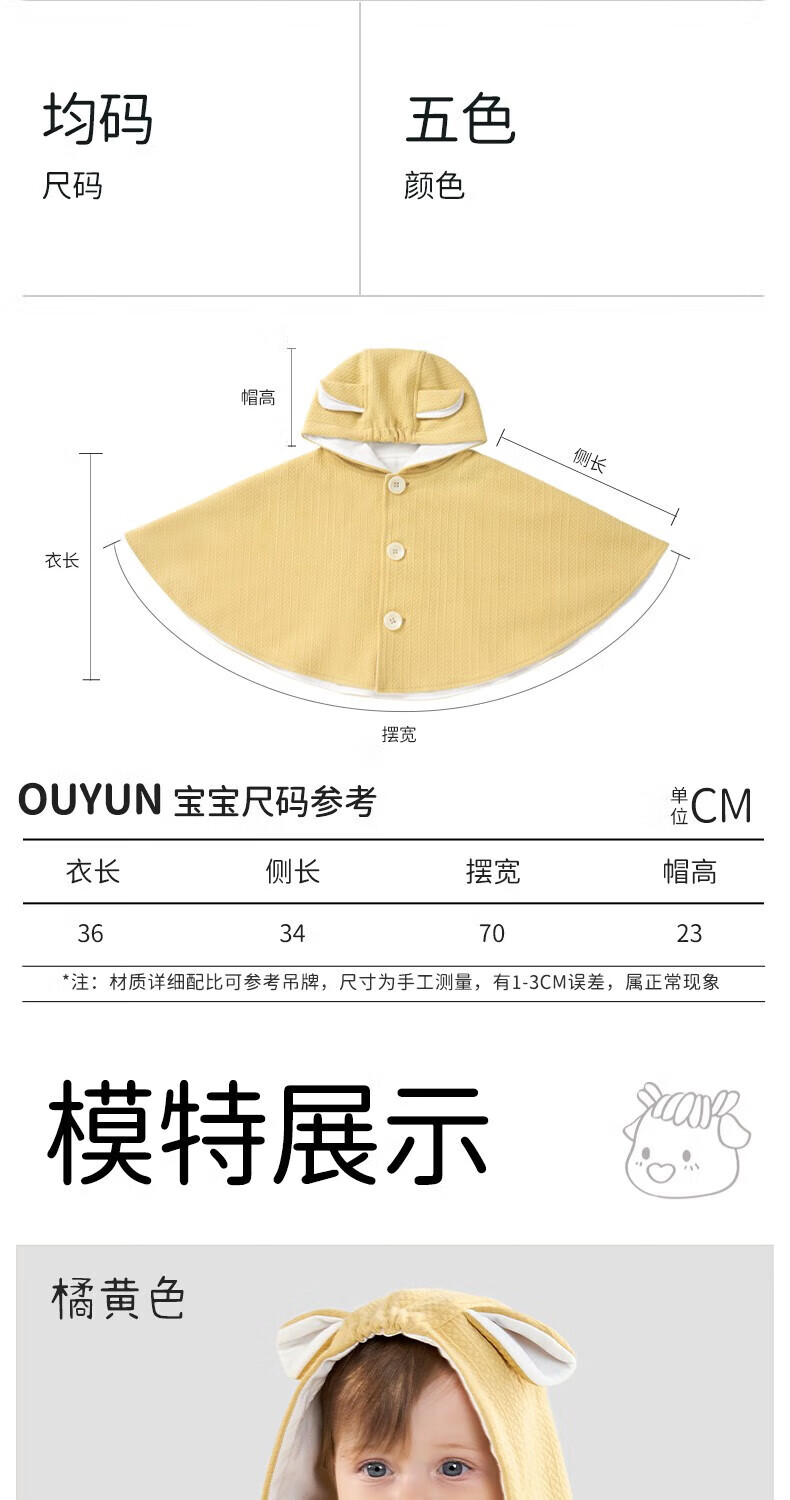 欧孕(OUYUN)婴儿外穿棉小披风秋冬宝宝婴幼儿防风衣保暖斗篷披肩连帽外套 橘黄色【适合0-3岁】 均码【建议身高50-100cm】