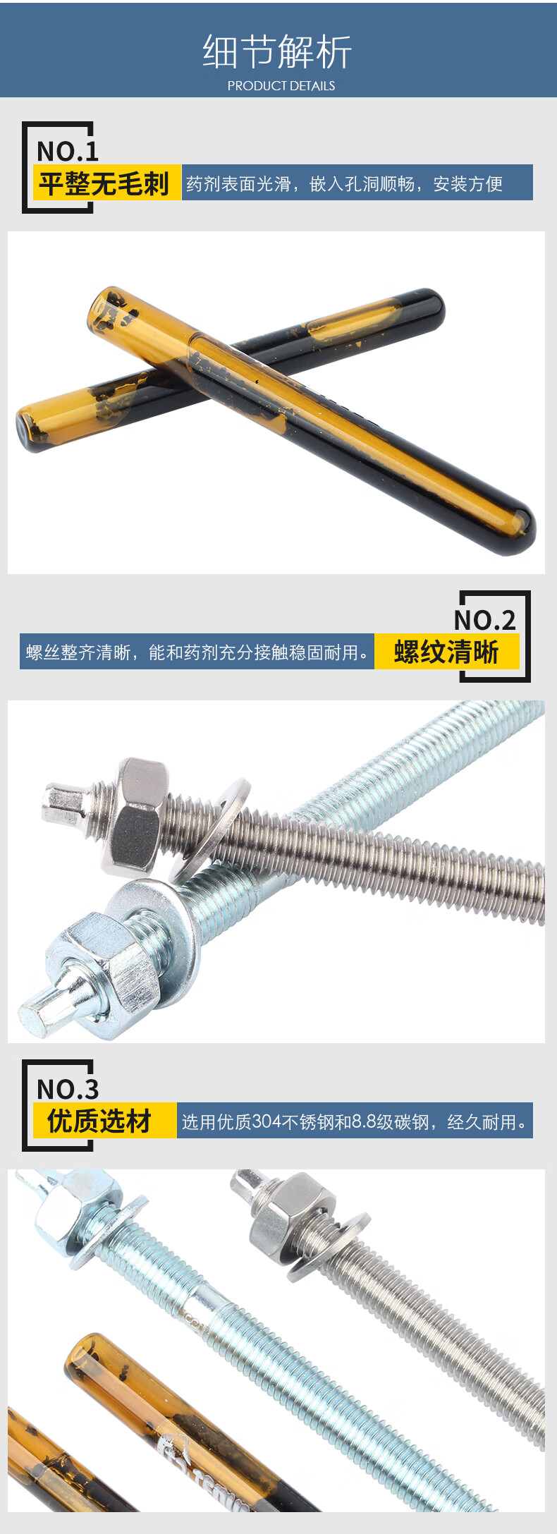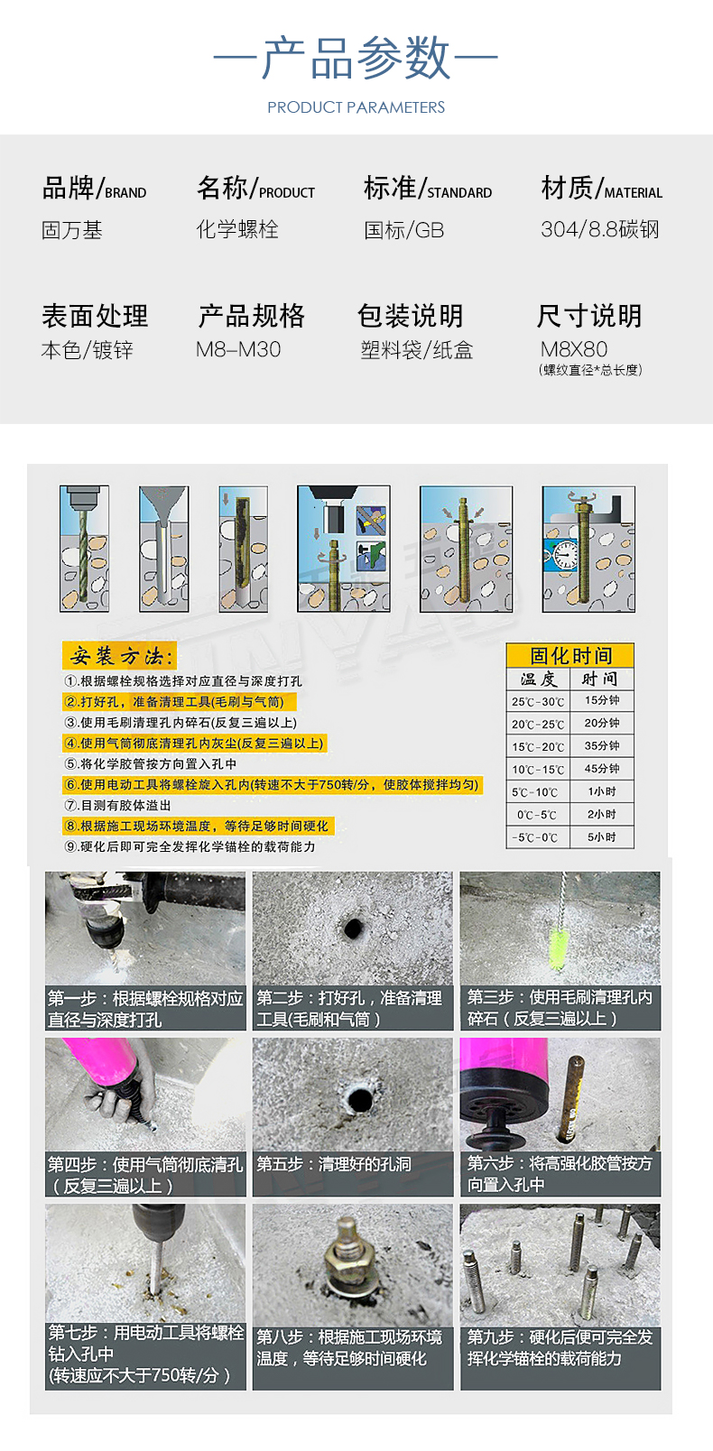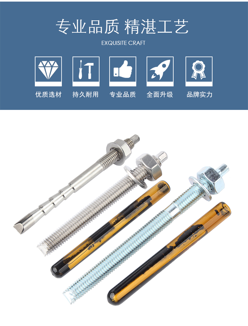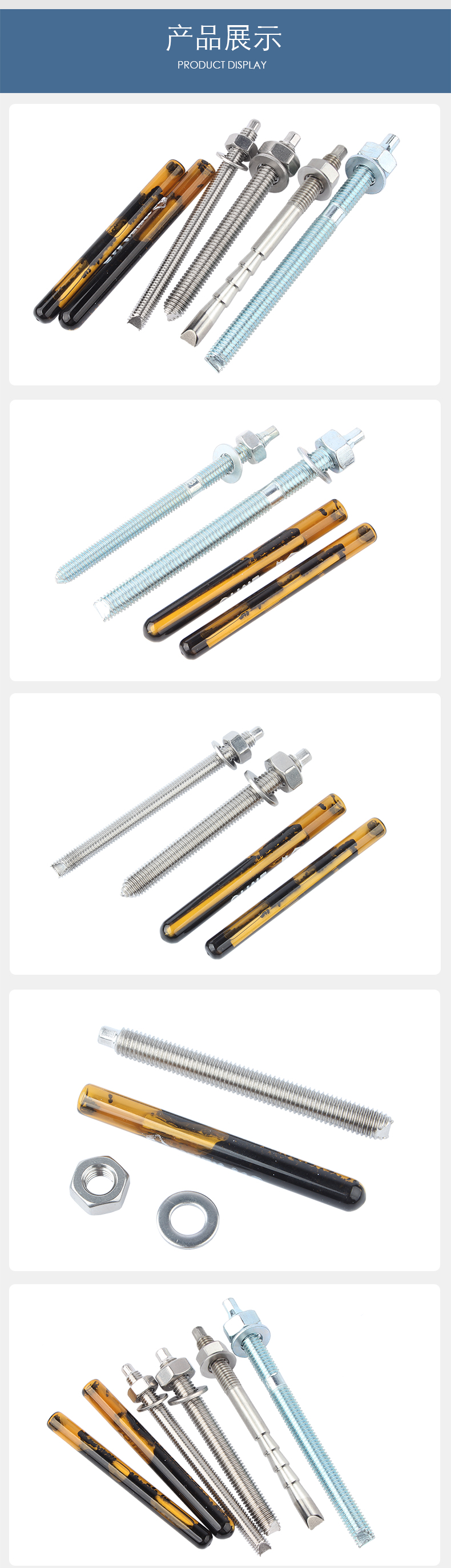 固万基 304不锈钢化学膨胀螺栓化学锚栓药剂镀锌碳钢倒锥化学栓膨胀螺丝 8.8级镀锌螺栓+药剂 M12x160[1套]