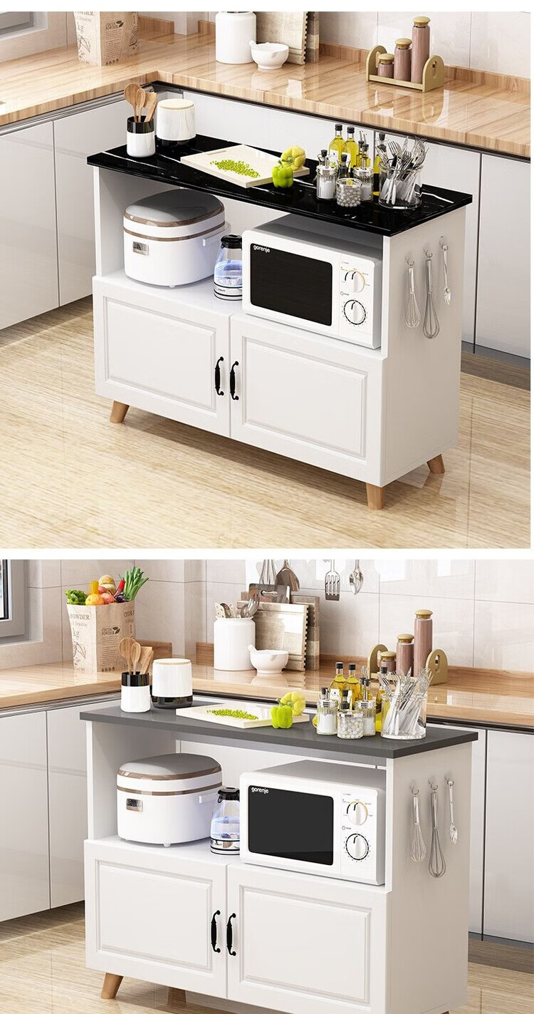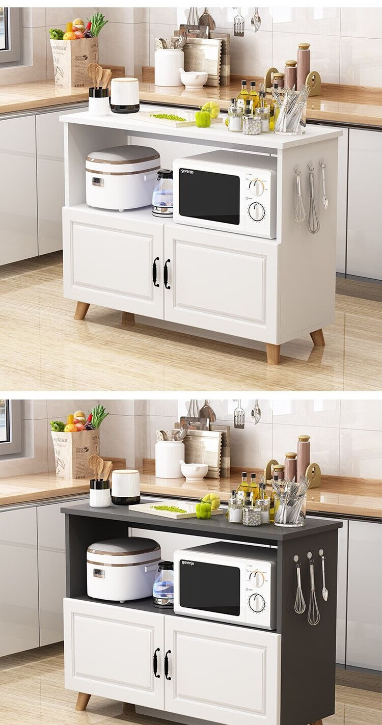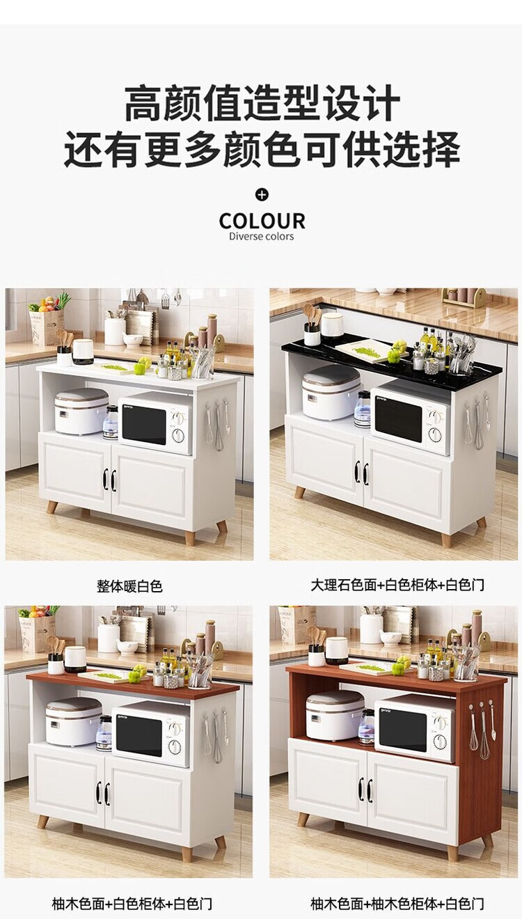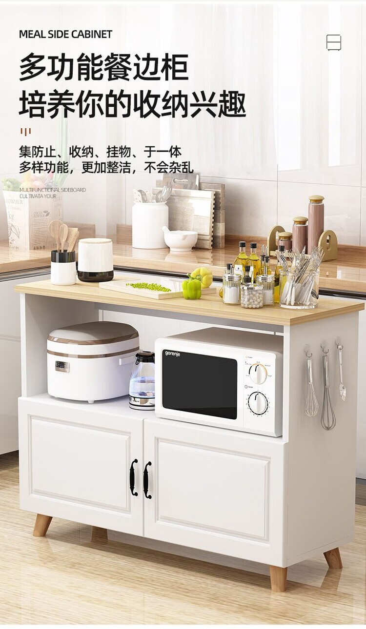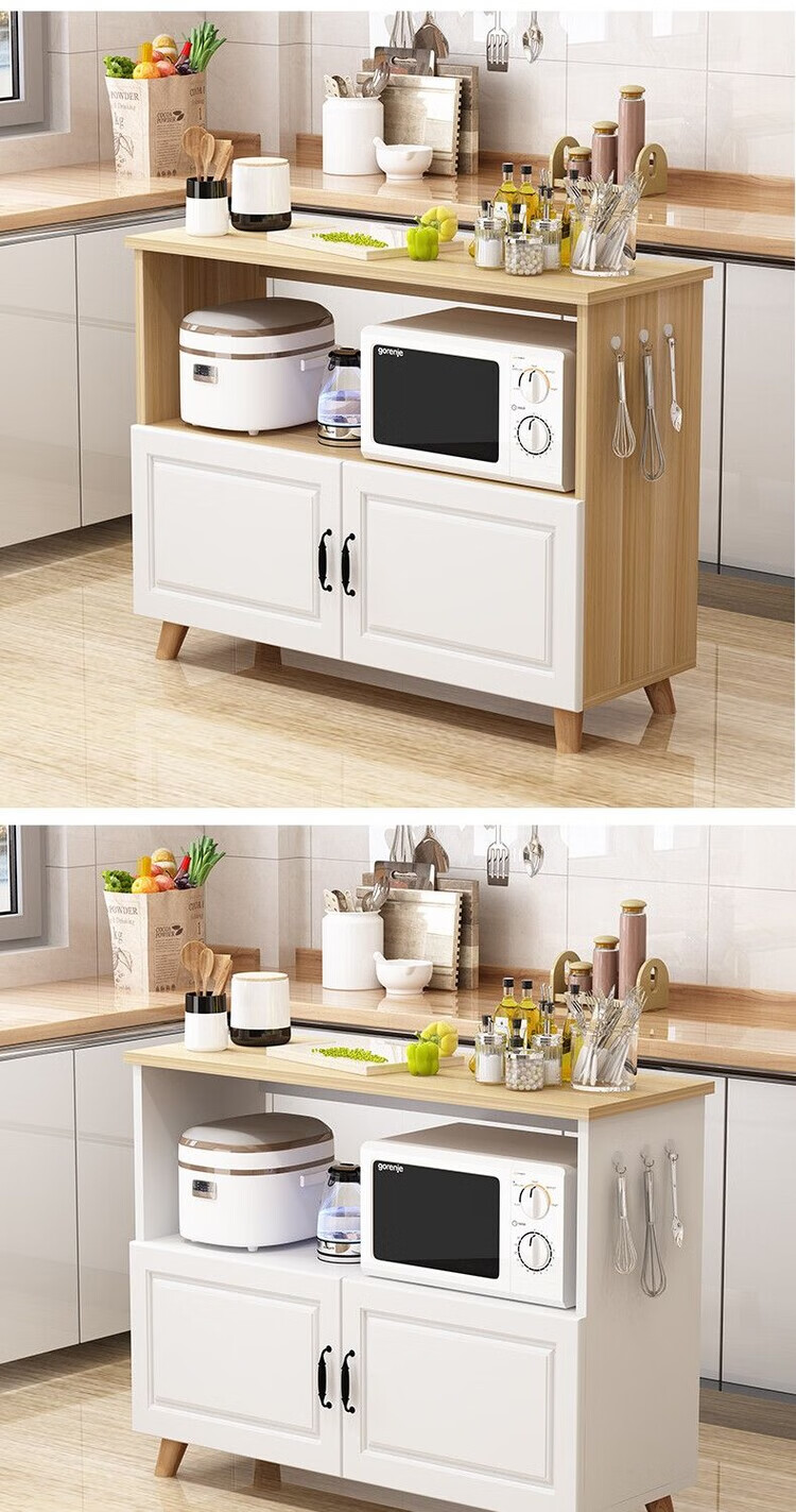弘星隆厨房置物架落地微波炉烤箱储物柜切菜桌橱柜餐边柜家用阳台收纳柜 暖白色 长60宽30高80