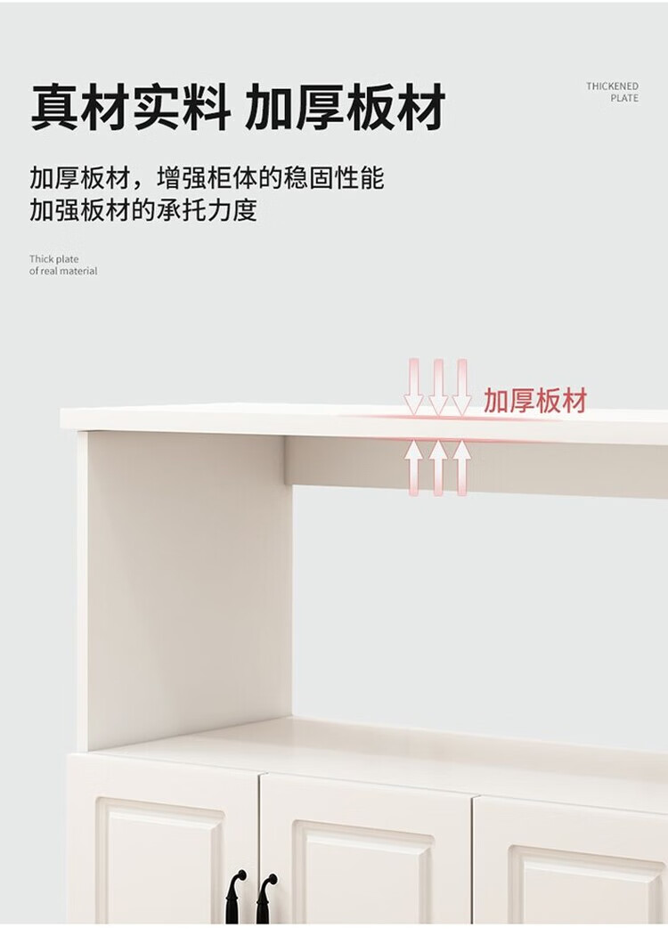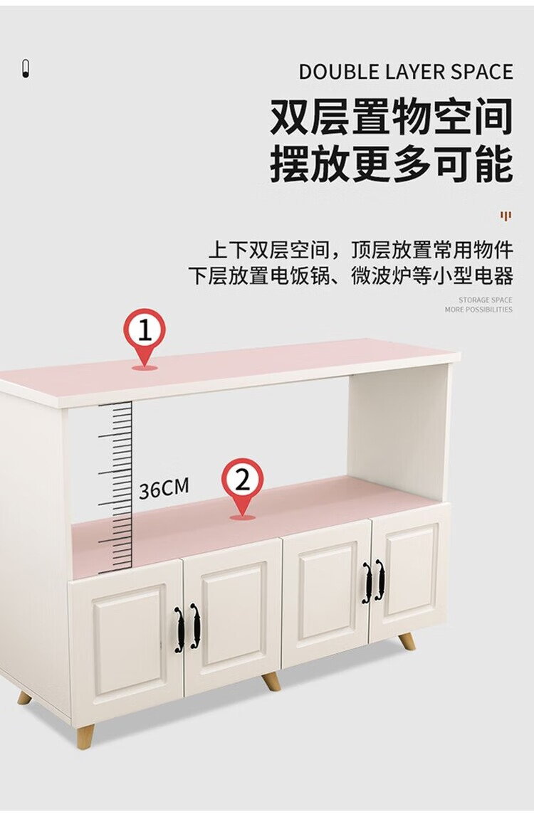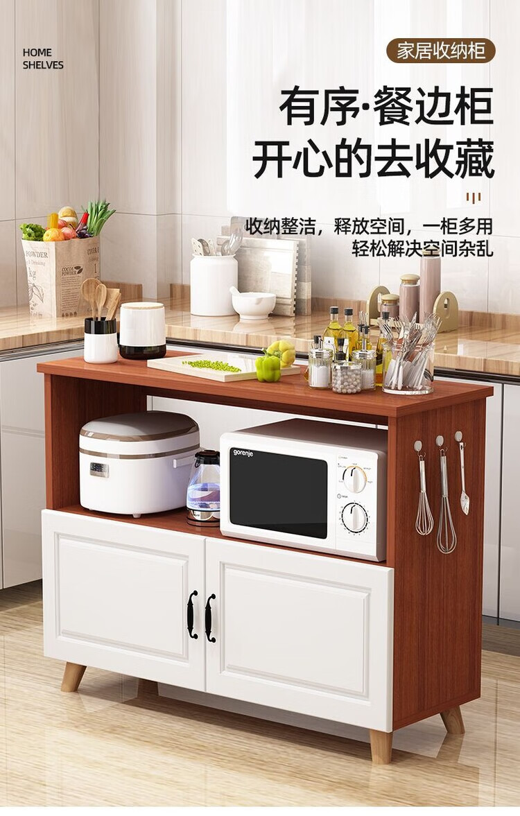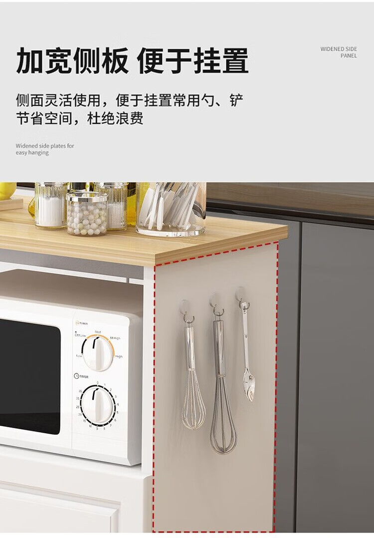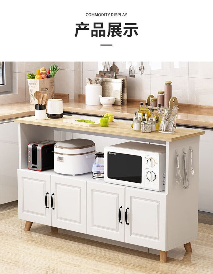 弘星隆厨房置物架落地微波炉烤箱储物柜切菜桌橱柜餐边柜家用阳台收纳柜 暖白色 长60宽30高80