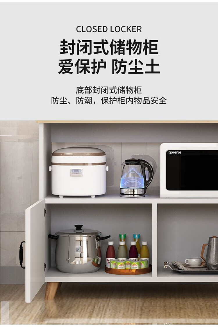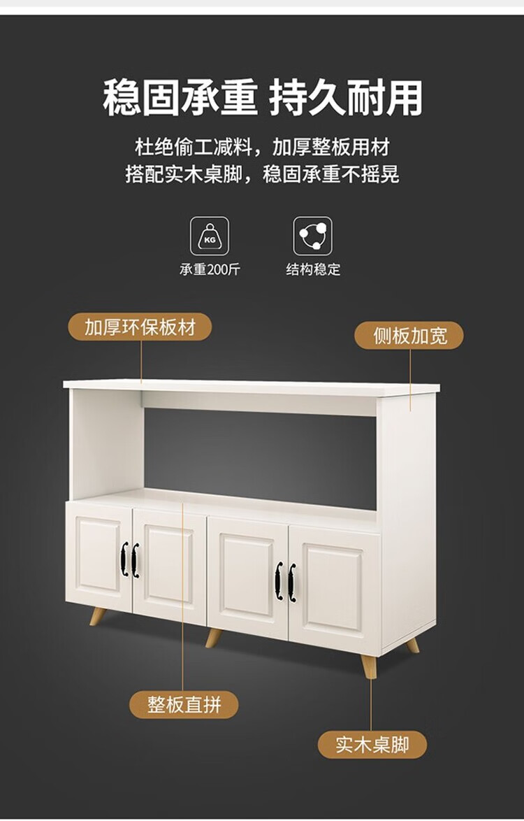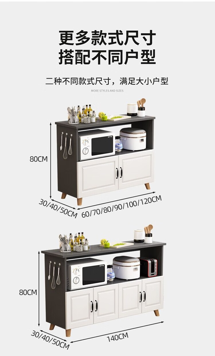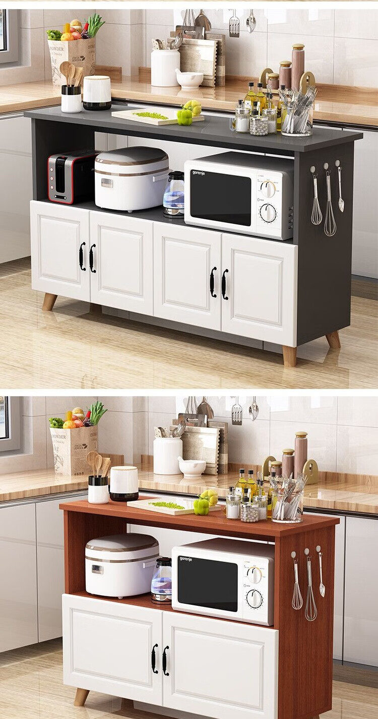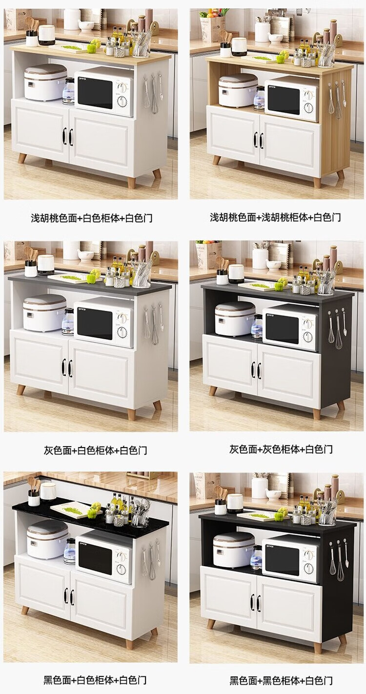 弘星隆厨房置物架落地微波炉烤箱储物柜切菜桌橱柜餐边柜家用阳台收纳柜 暖白色 长60宽30高80
