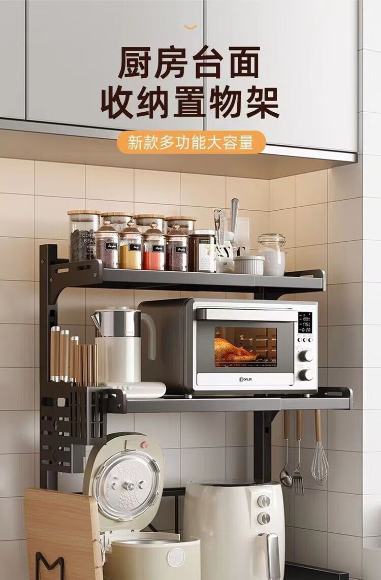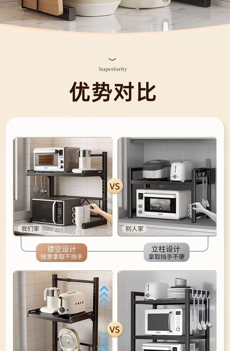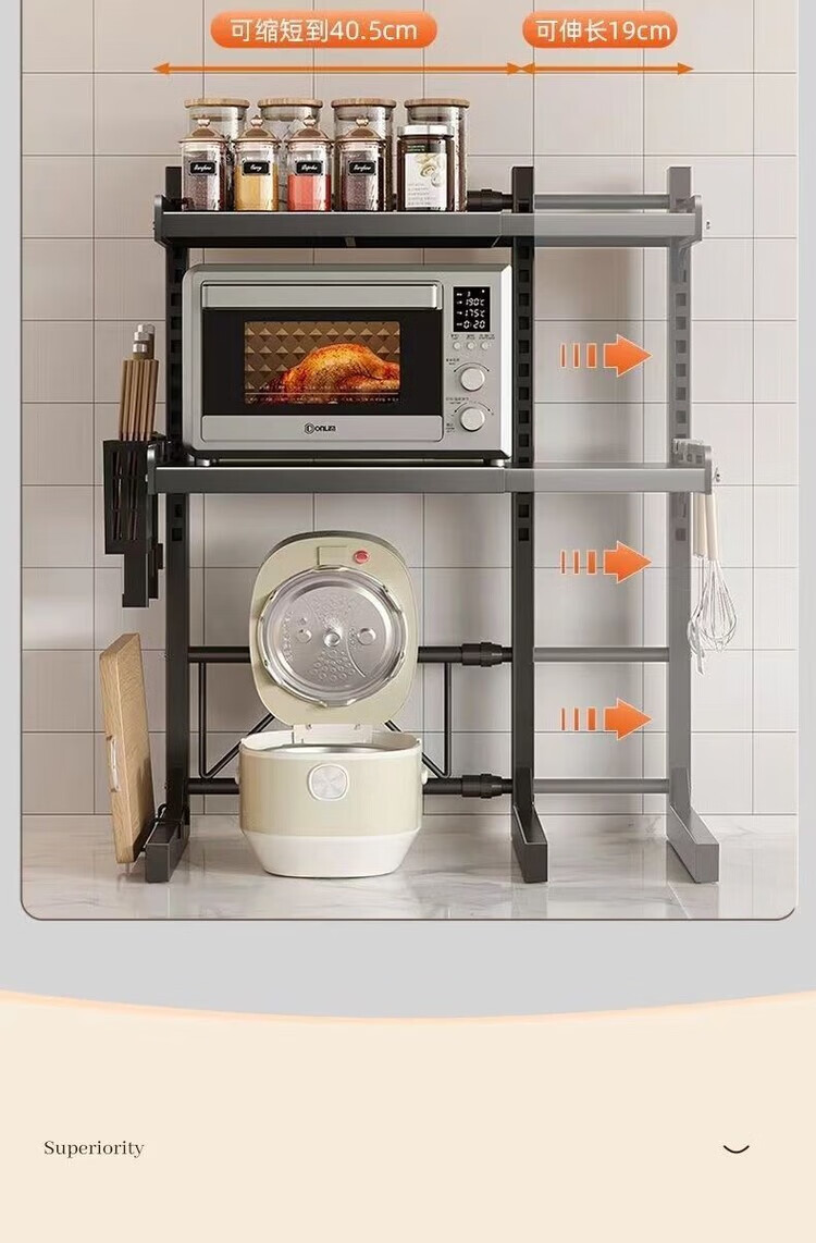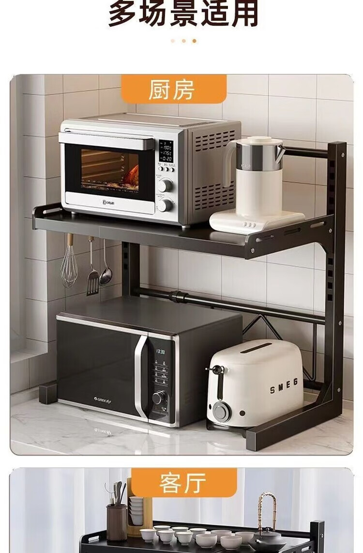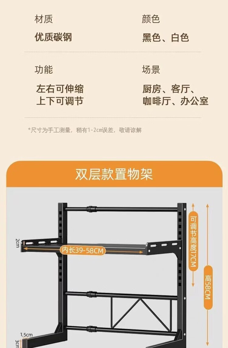 简漾可伸缩台面微波炉置物架加厚厨房置物架家用收纳烤箱锅架隔层架子 白色【左右可伸缩层高上下调】 基础款小号