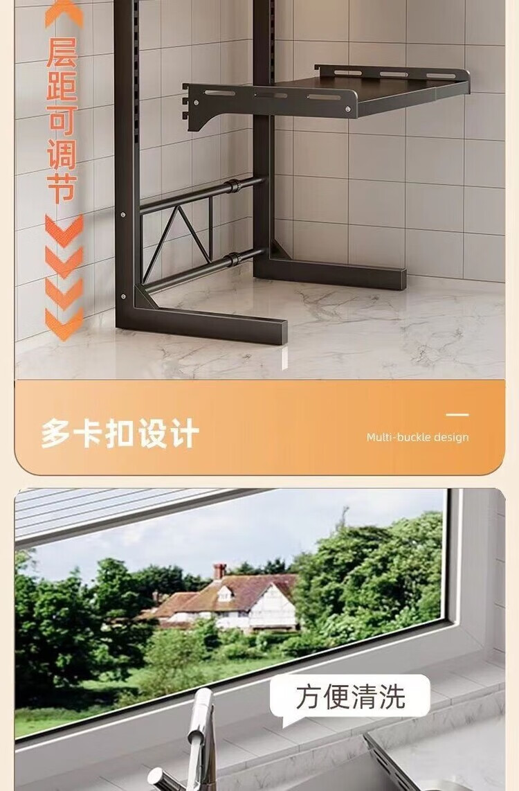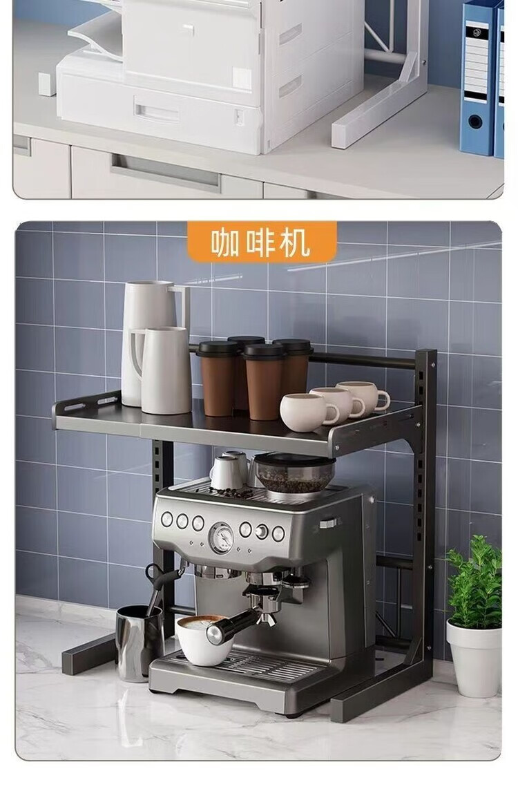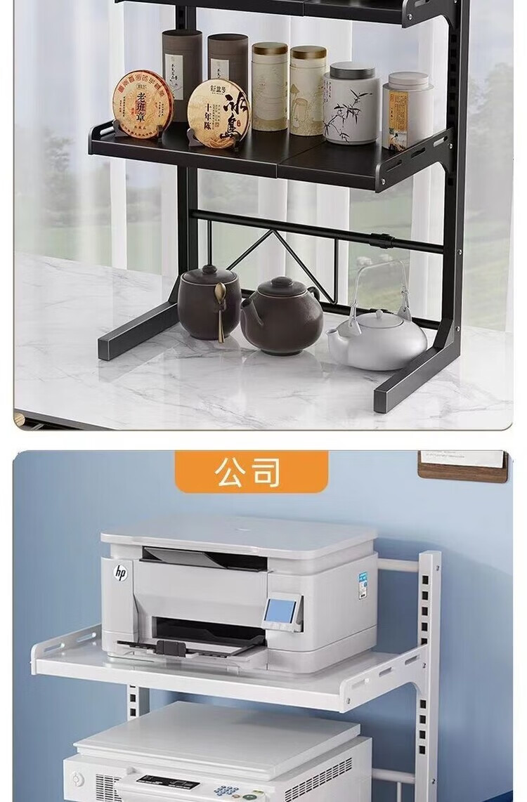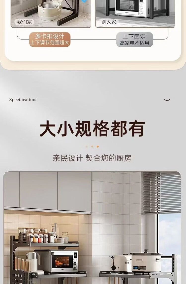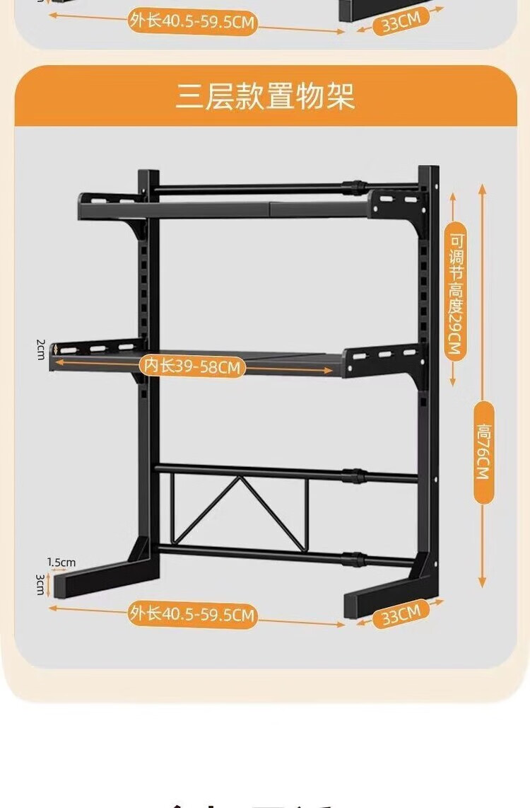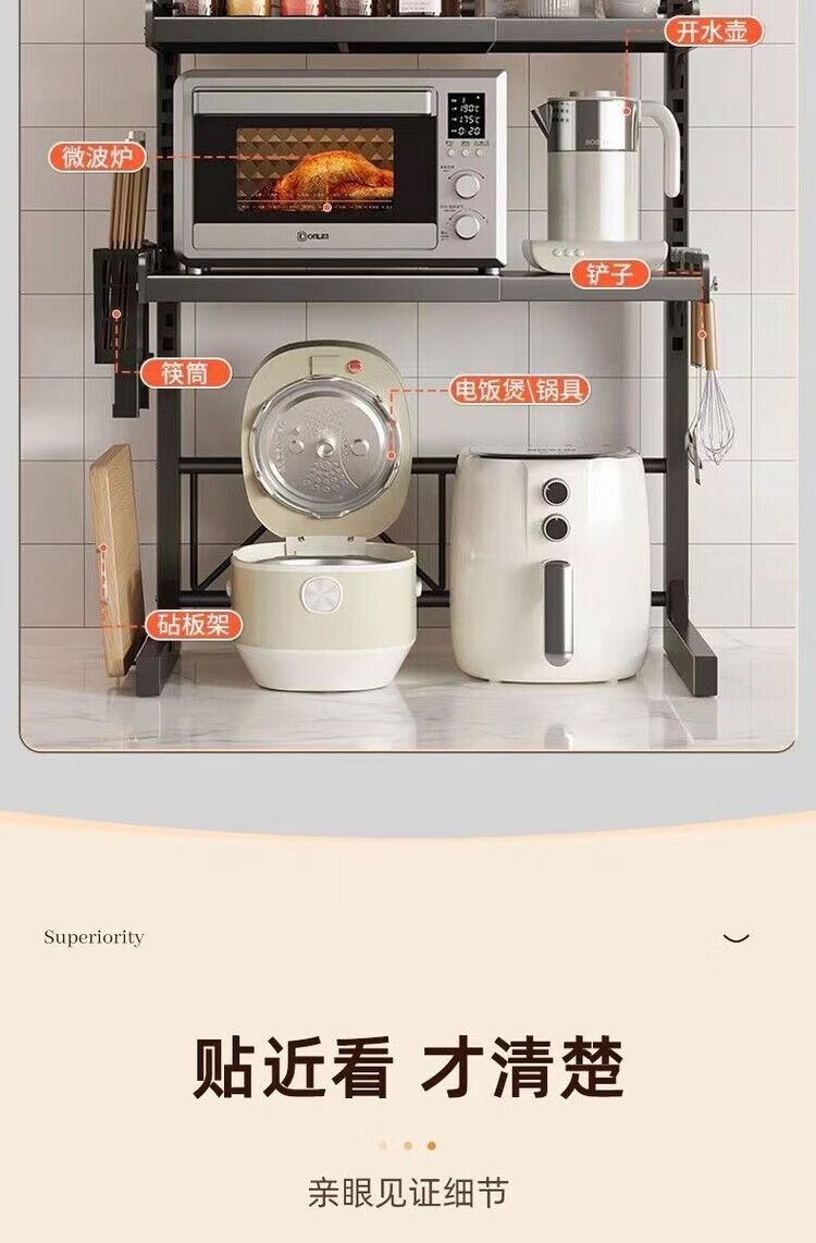 简漾可伸缩台面微波炉置物架加厚厨房置物架家用收纳烤箱锅架隔层架子 白色【左右可伸缩层高上下调】 基础款小号