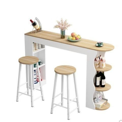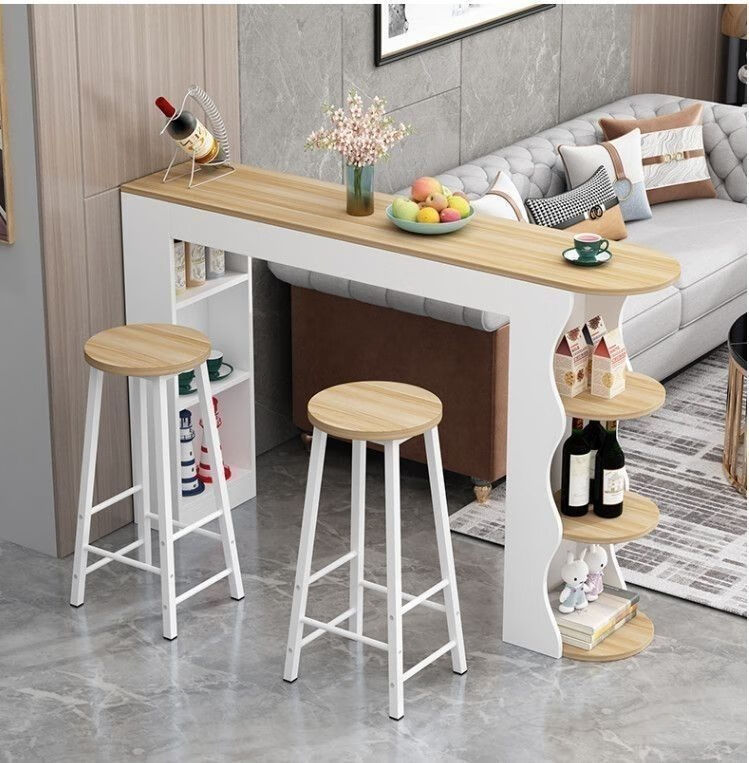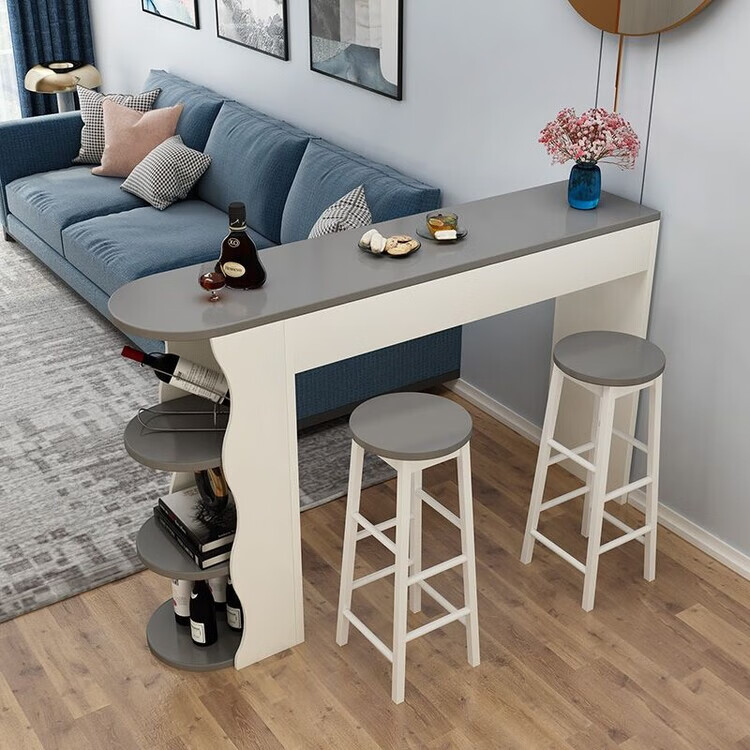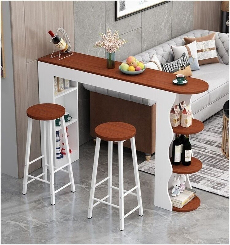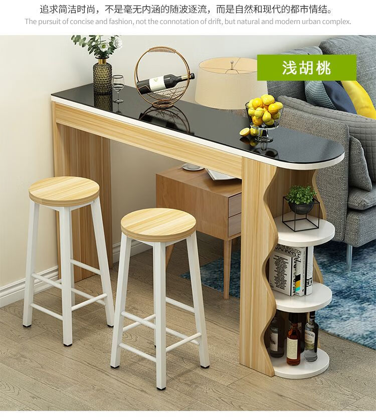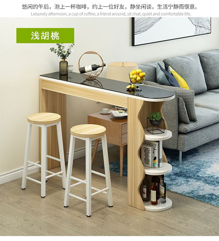 迈途森小户型吧台桌家用简约现代客厅玄关小吧台沙发边几餐厅轻奢隔断柜 新款浅胡桃色+无凳+无玻璃 长140*高100*宽30
