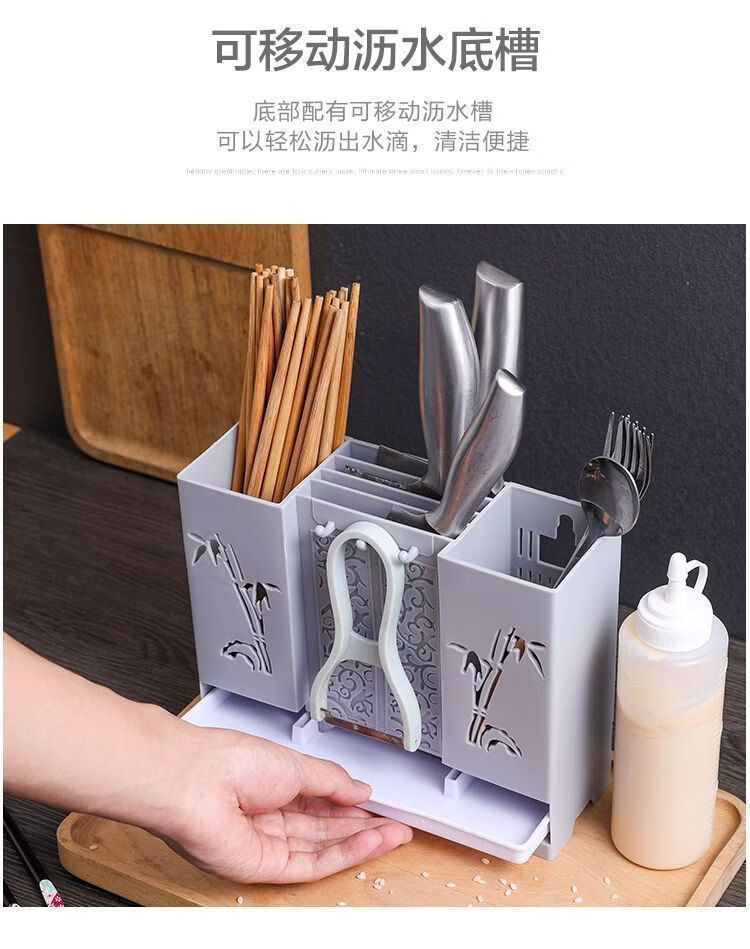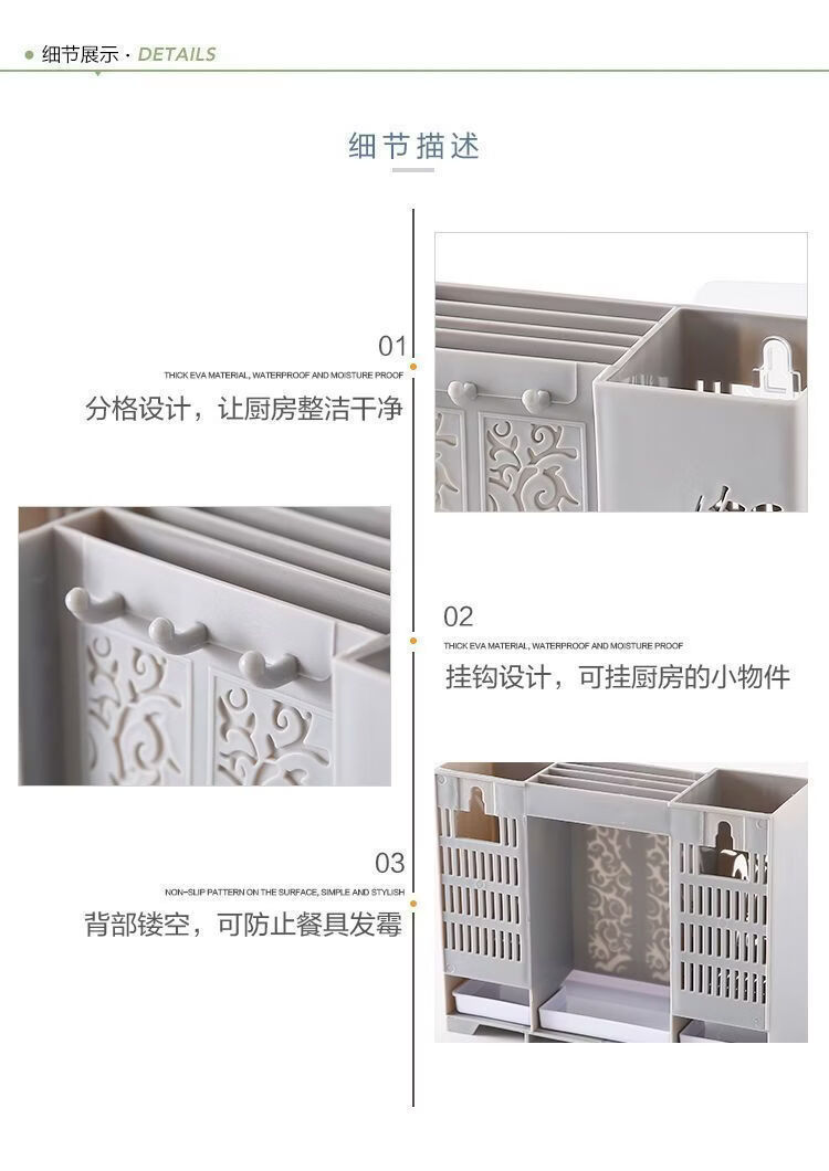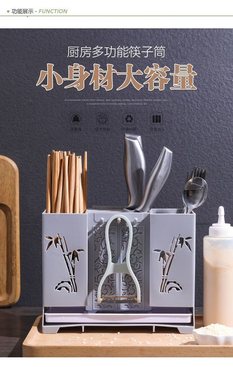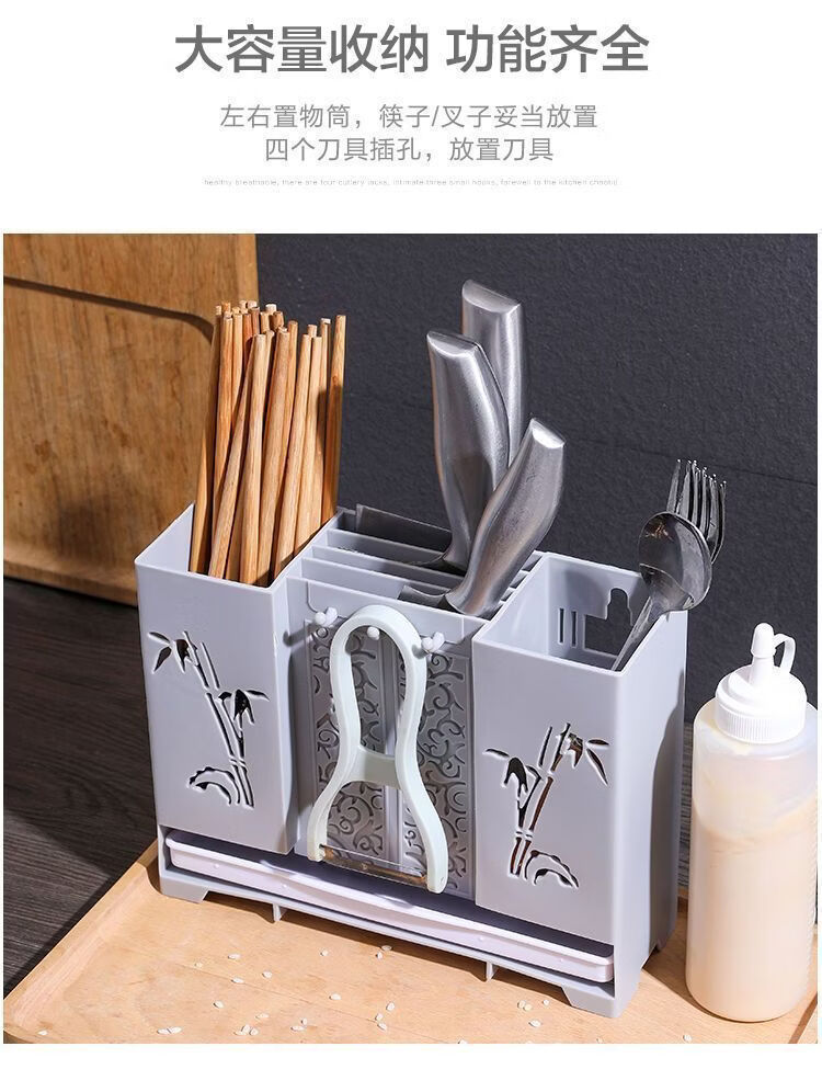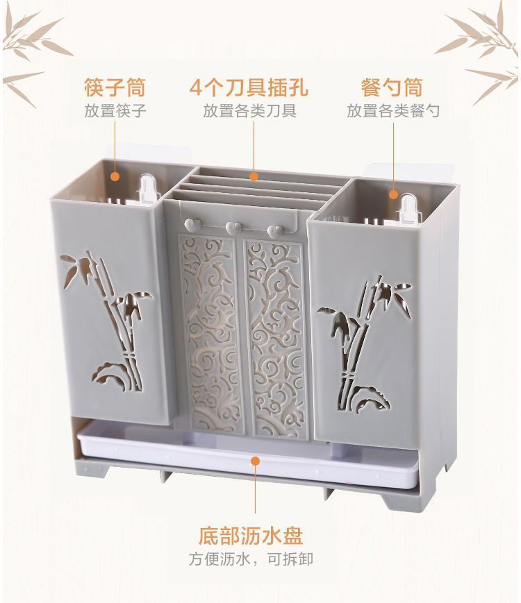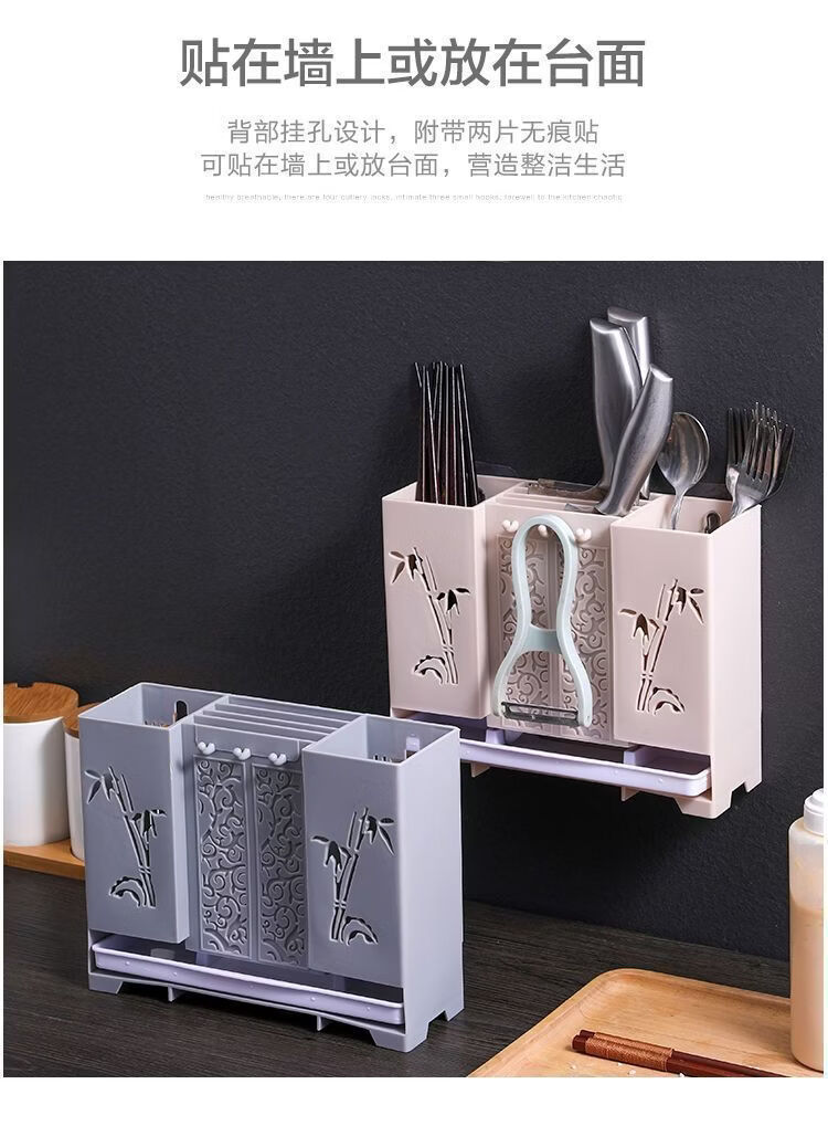 咏夏厨房家用筷子筒多功能壁挂筷笼子创意沥水筷子笼筷子勺子餐具收纳 可挂可立可沥水【加厚筷子笼】蓝色 +贴片2个