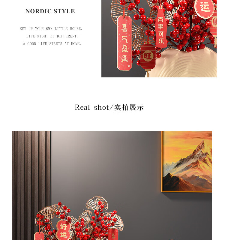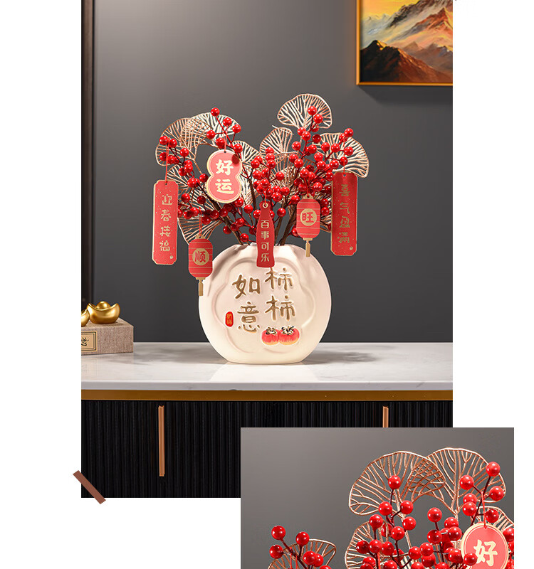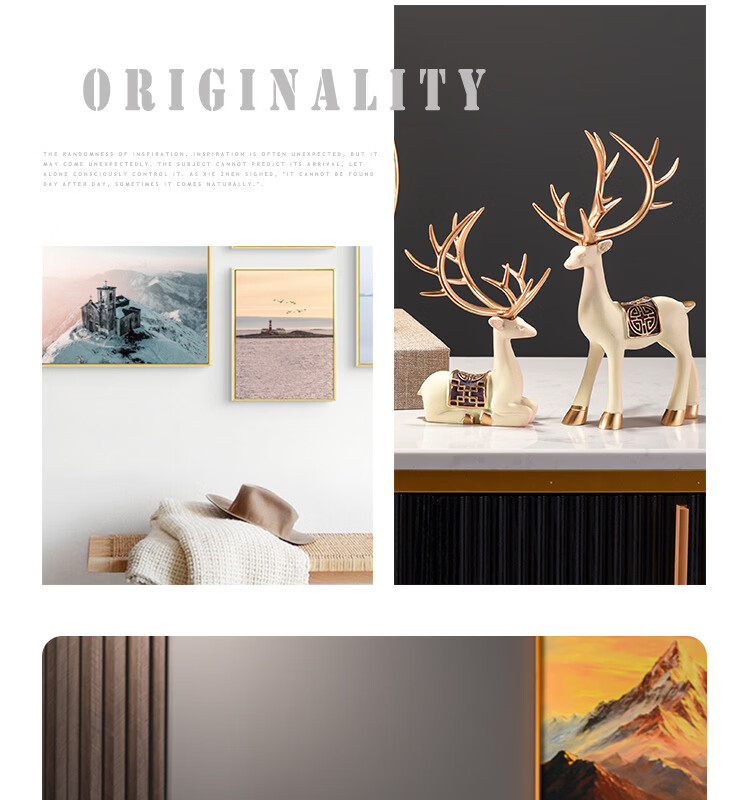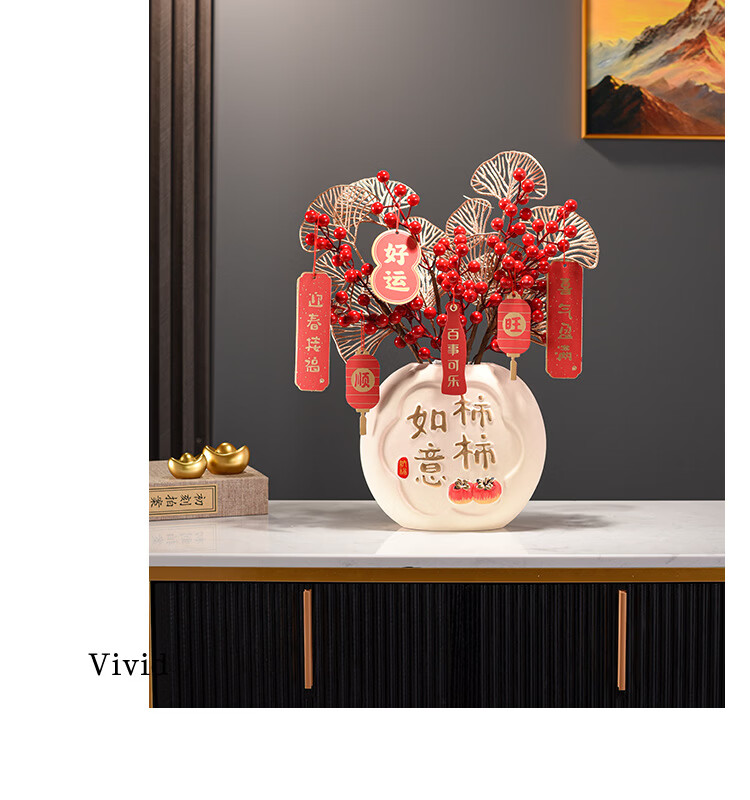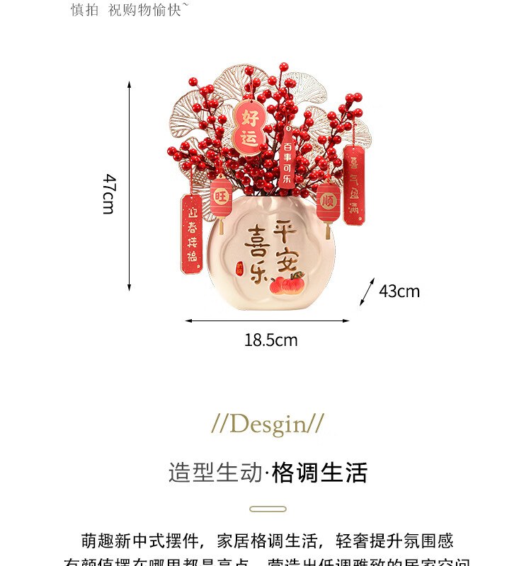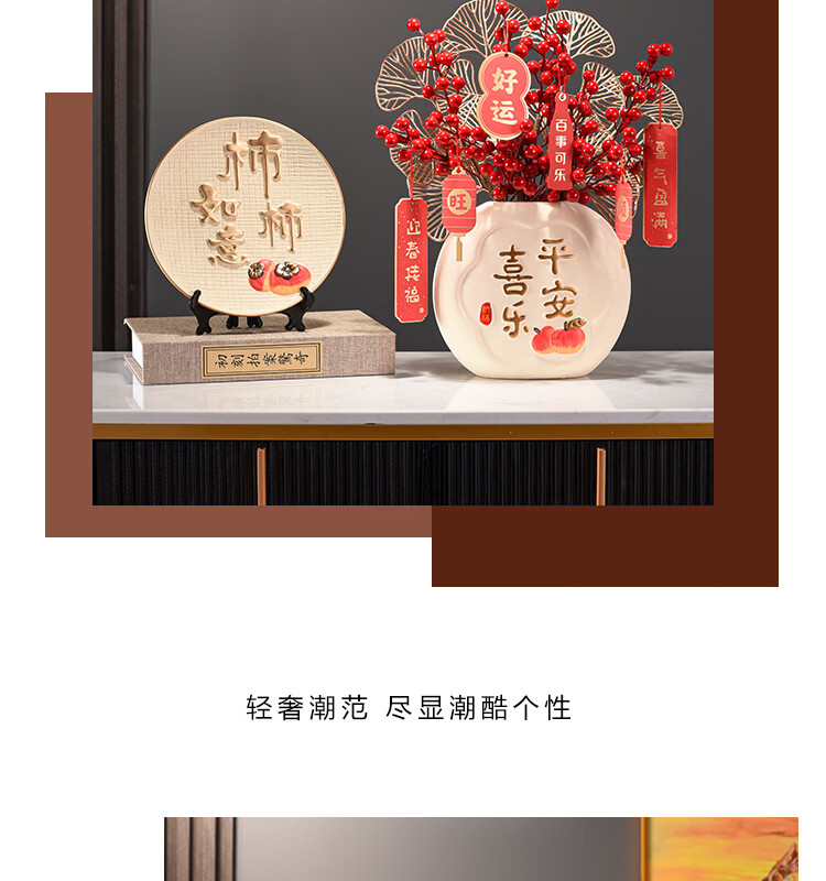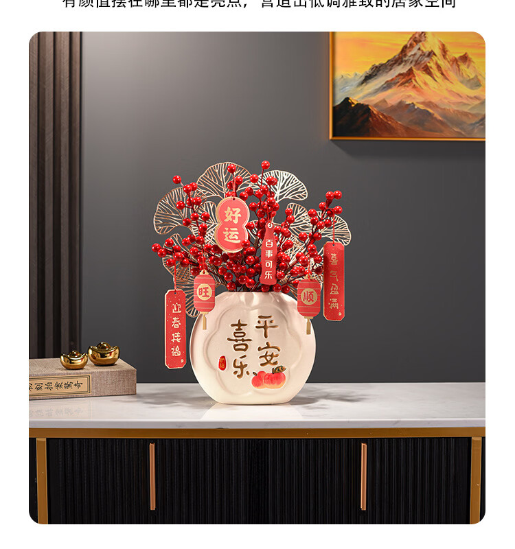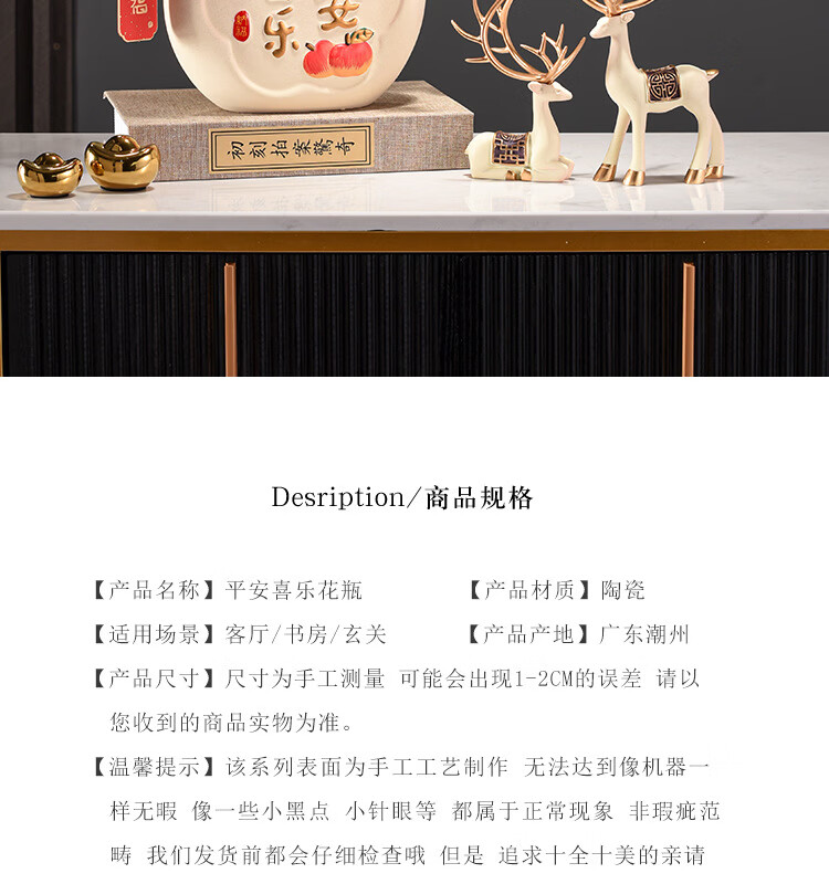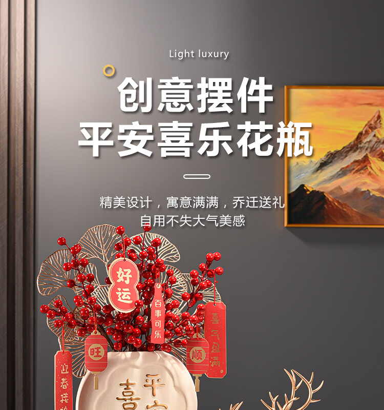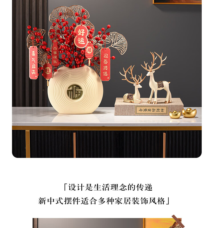 OYKTN乔迁之喜新居布置装饰品高档客厅摆件发财家居装饰摆件树脂工艺品 平安喜乐花瓶新婚+小鹿一对