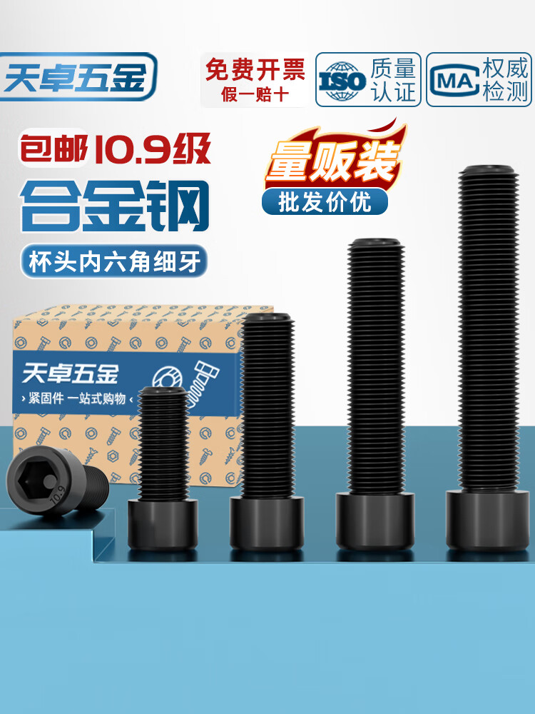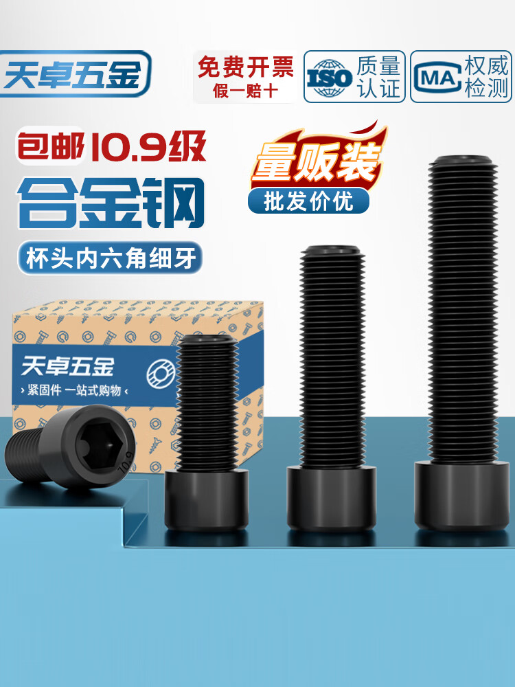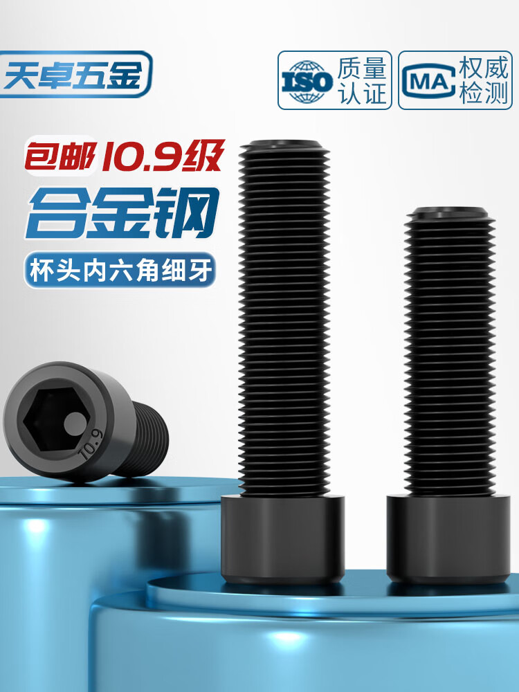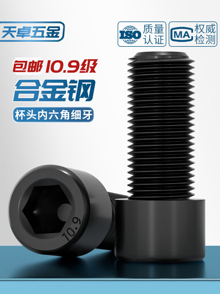 天卓五金10.9级细牙内六角螺丝MM8*1M10*1.25M12M14M16*1.5M18M20M22M24x2 M12*1.25*130半牙【4个】