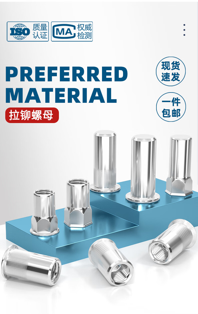 天卓五金国标 304不锈钢/镀锌 拉铆螺母拉卯螺帽拉母拉帽铆螺母螺丝帽大全 --以下为平头竖纹--