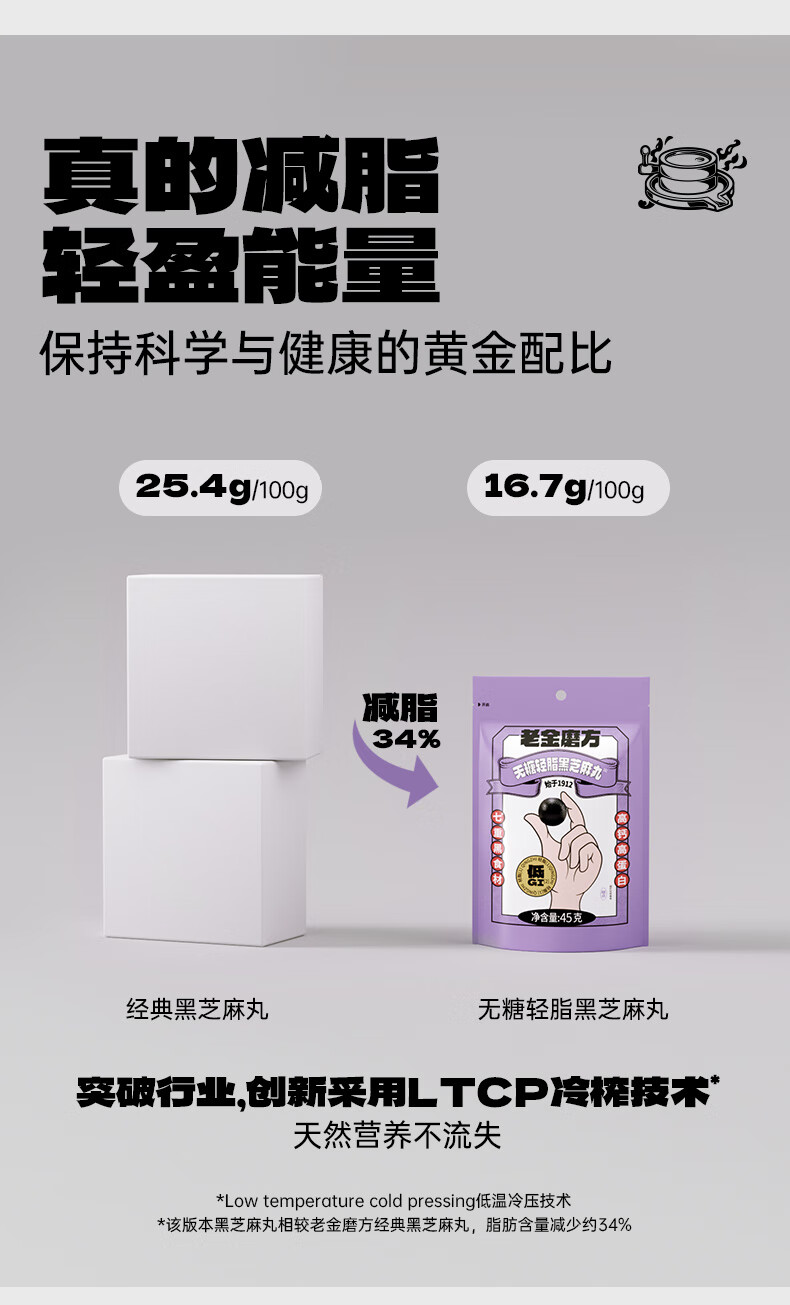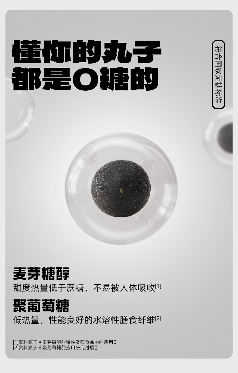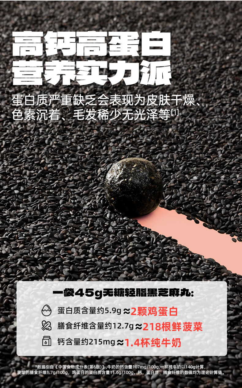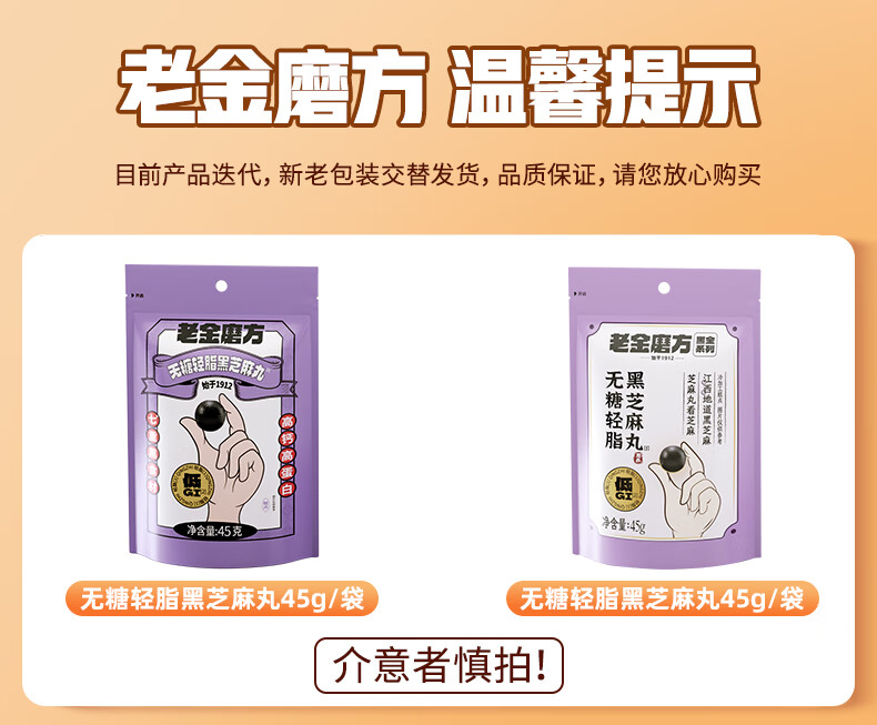 老金磨方【黑金系列】无糖轻脂黑芝麻丸45g袋装黑色食材办公室零食糕点 无糖轻脂黑芝麻丸 45g*1袋