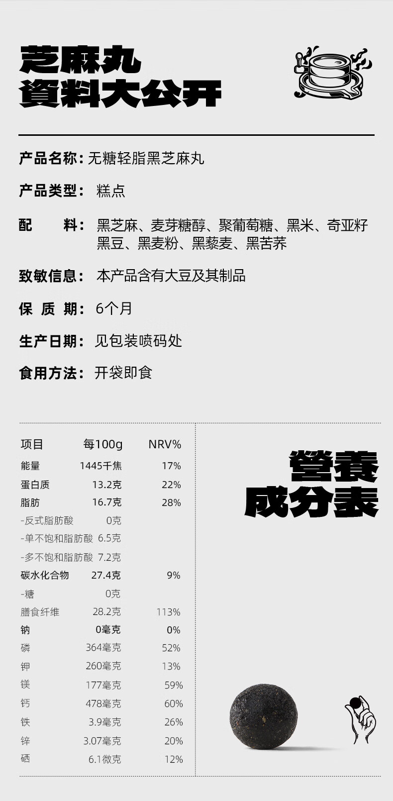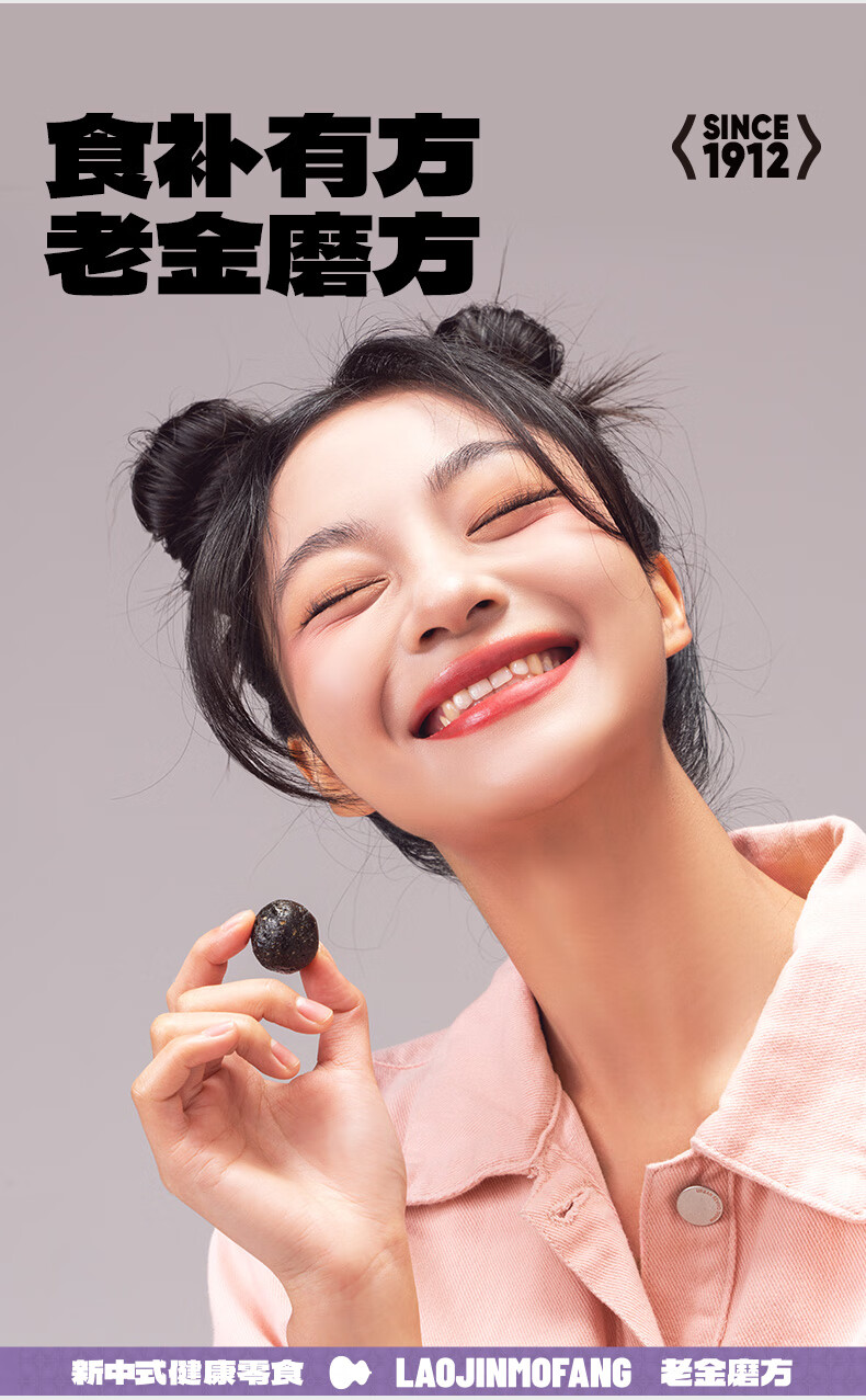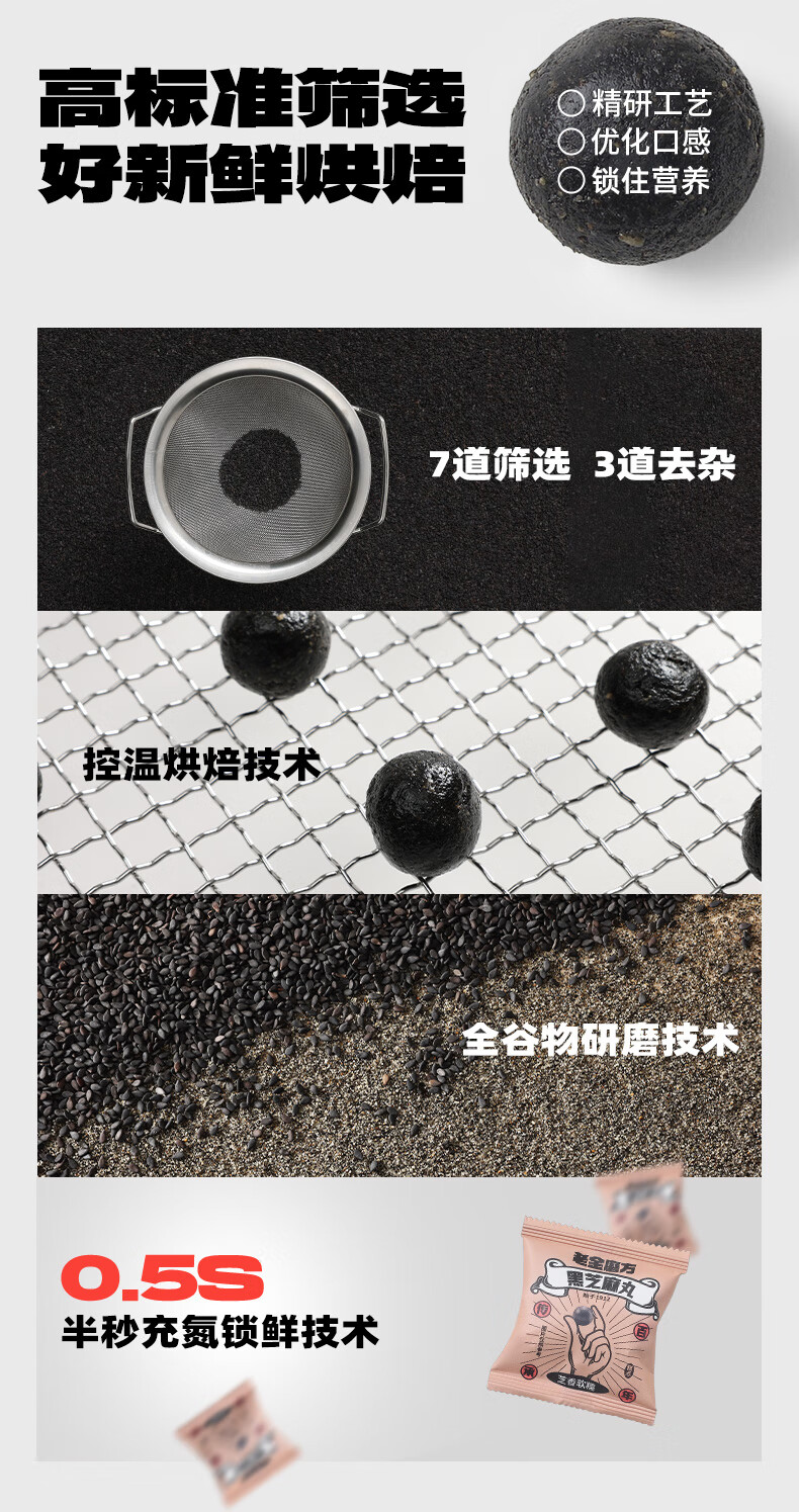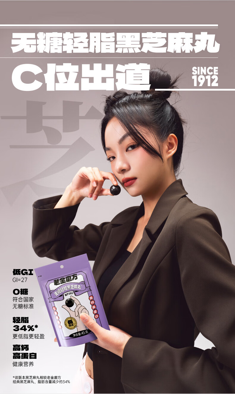 老金磨方【黑金系列】无糖轻脂黑芝麻丸45g袋装黑色食材办公室零食糕点 无糖轻脂黑芝麻丸 45g*1袋