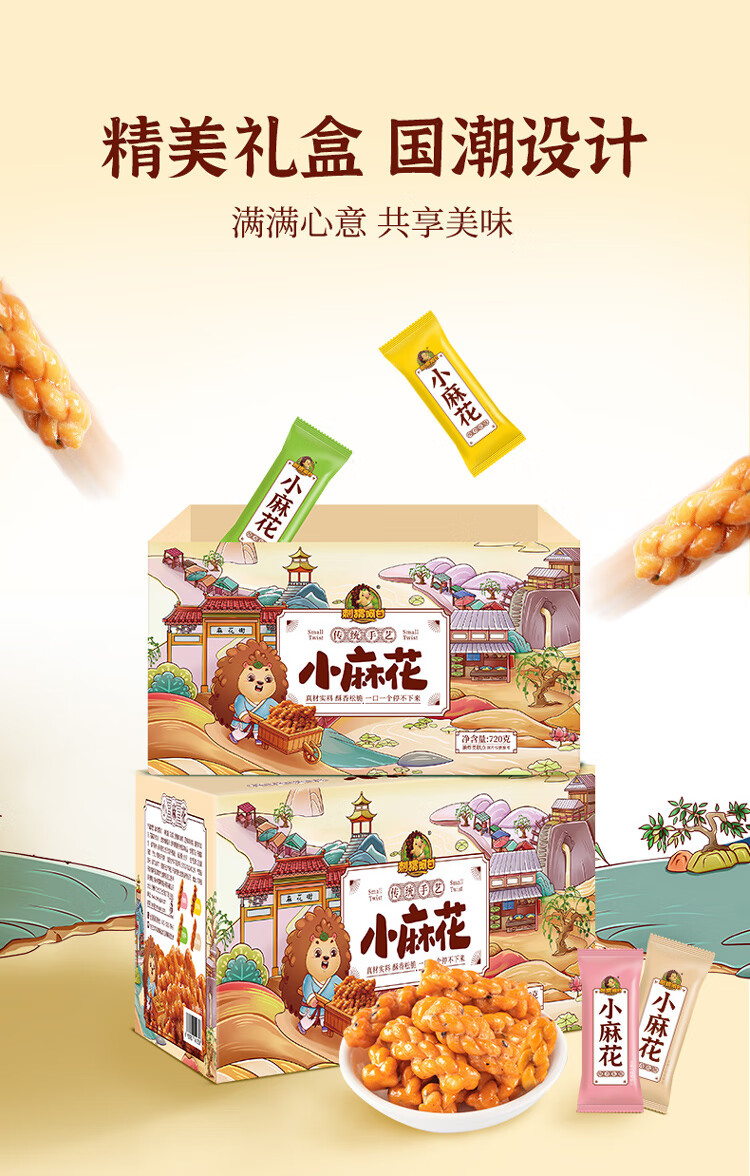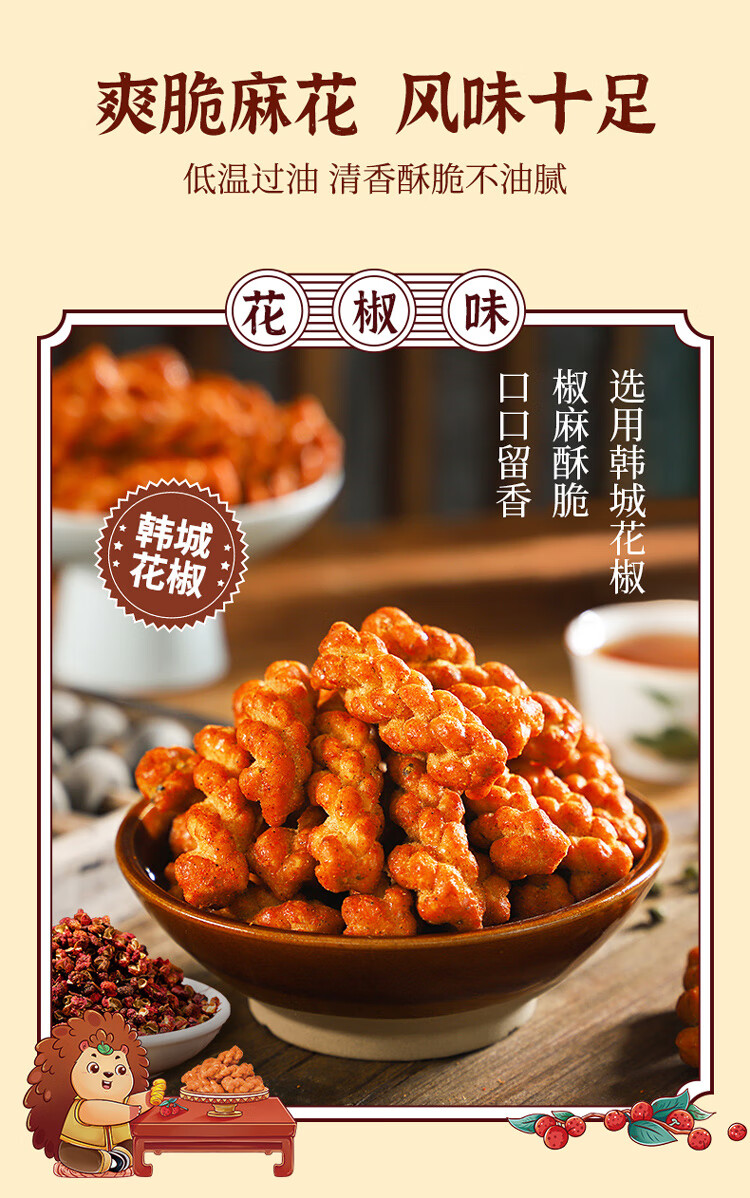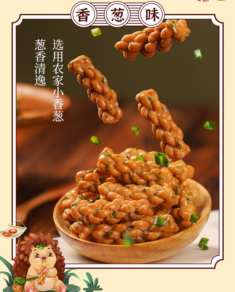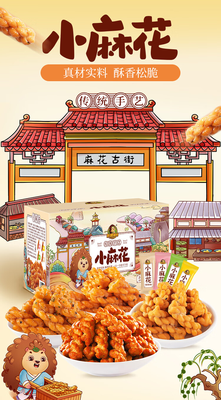 刺猬阿甘 【4种口味】零食下午茶花椒香葱芝麻味小麻花360g约100个 混合口味360g1箱约100根