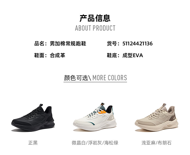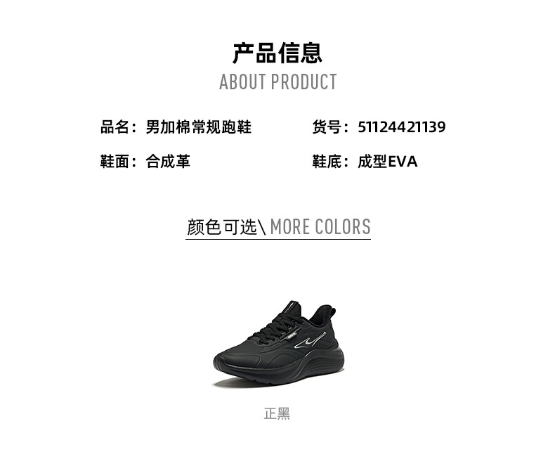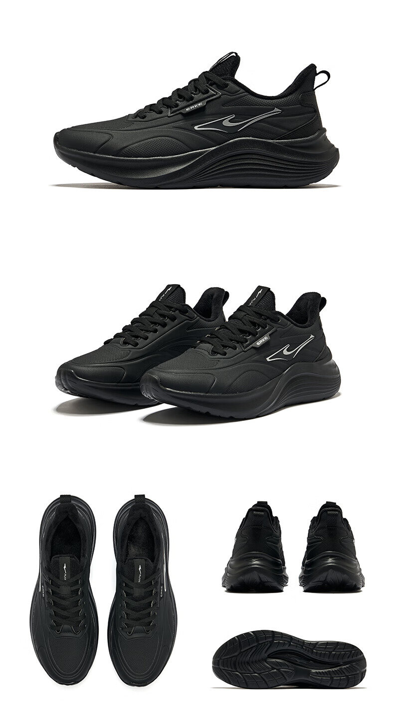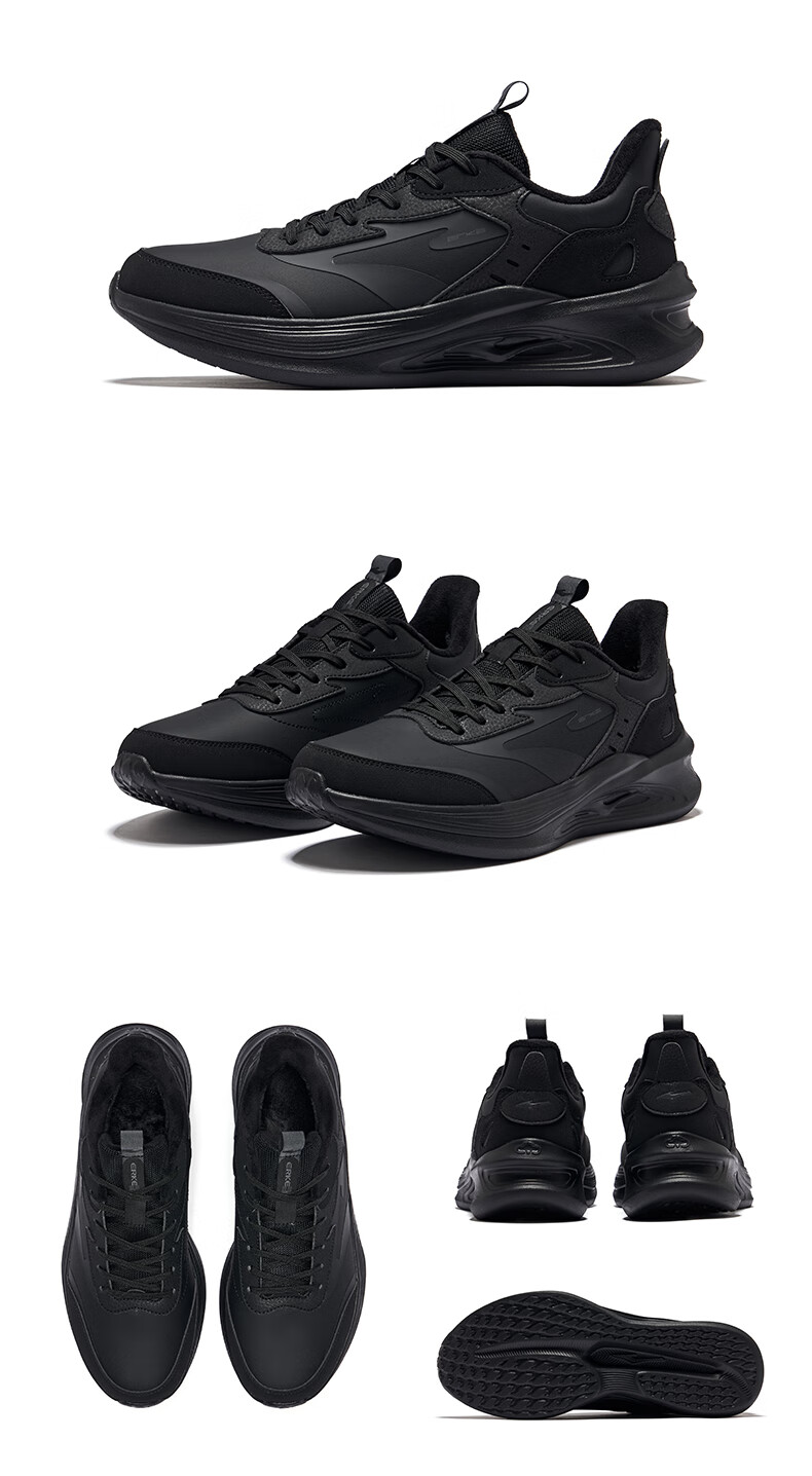 鸿星尔克凌跃2跑鞋加绒款冬季新款保暖棉鞋跑步鞋缓震加棉运动鞋子男鞋 正黑 42