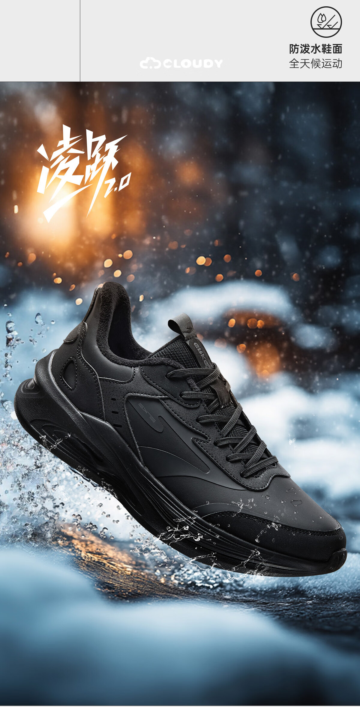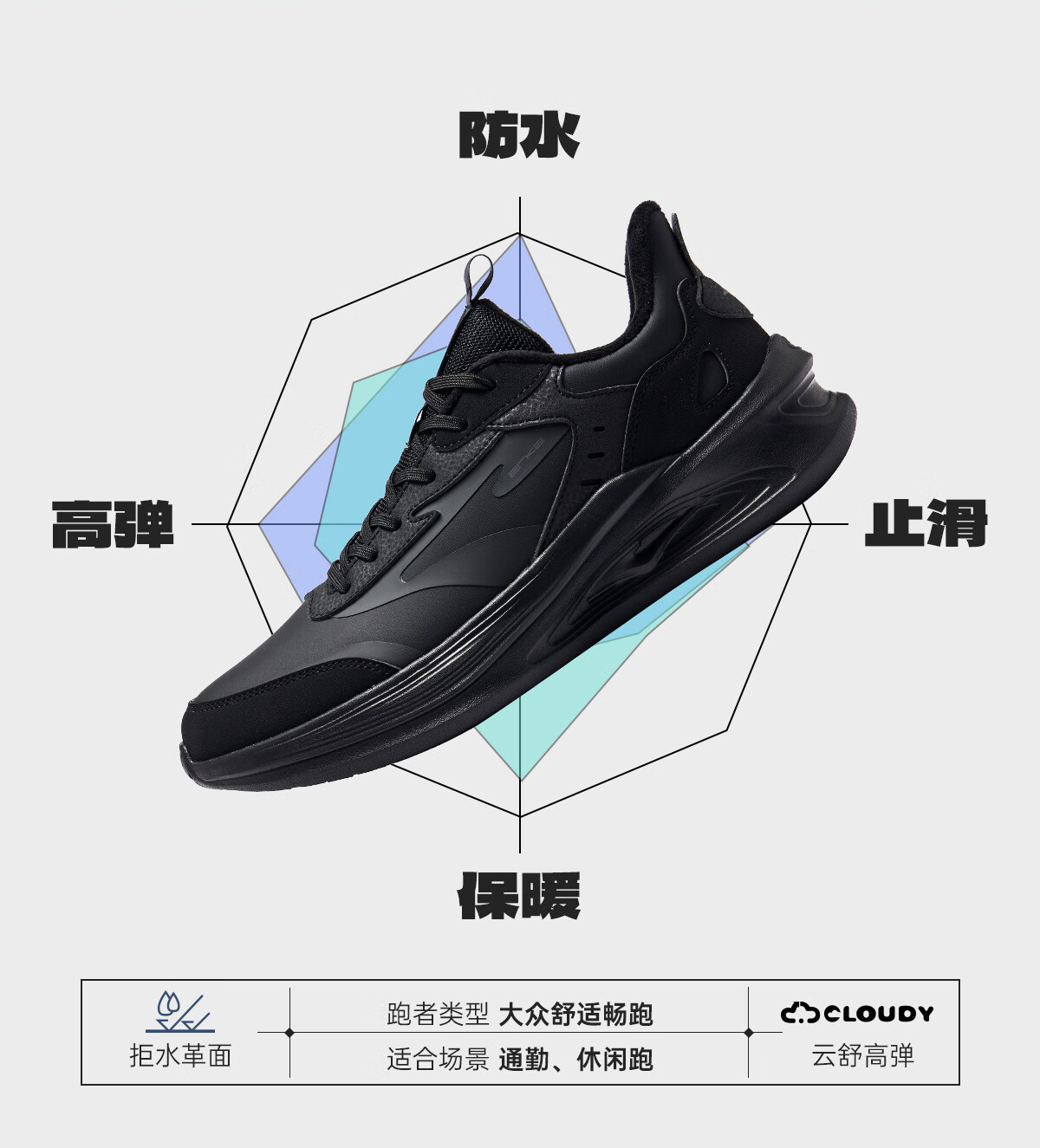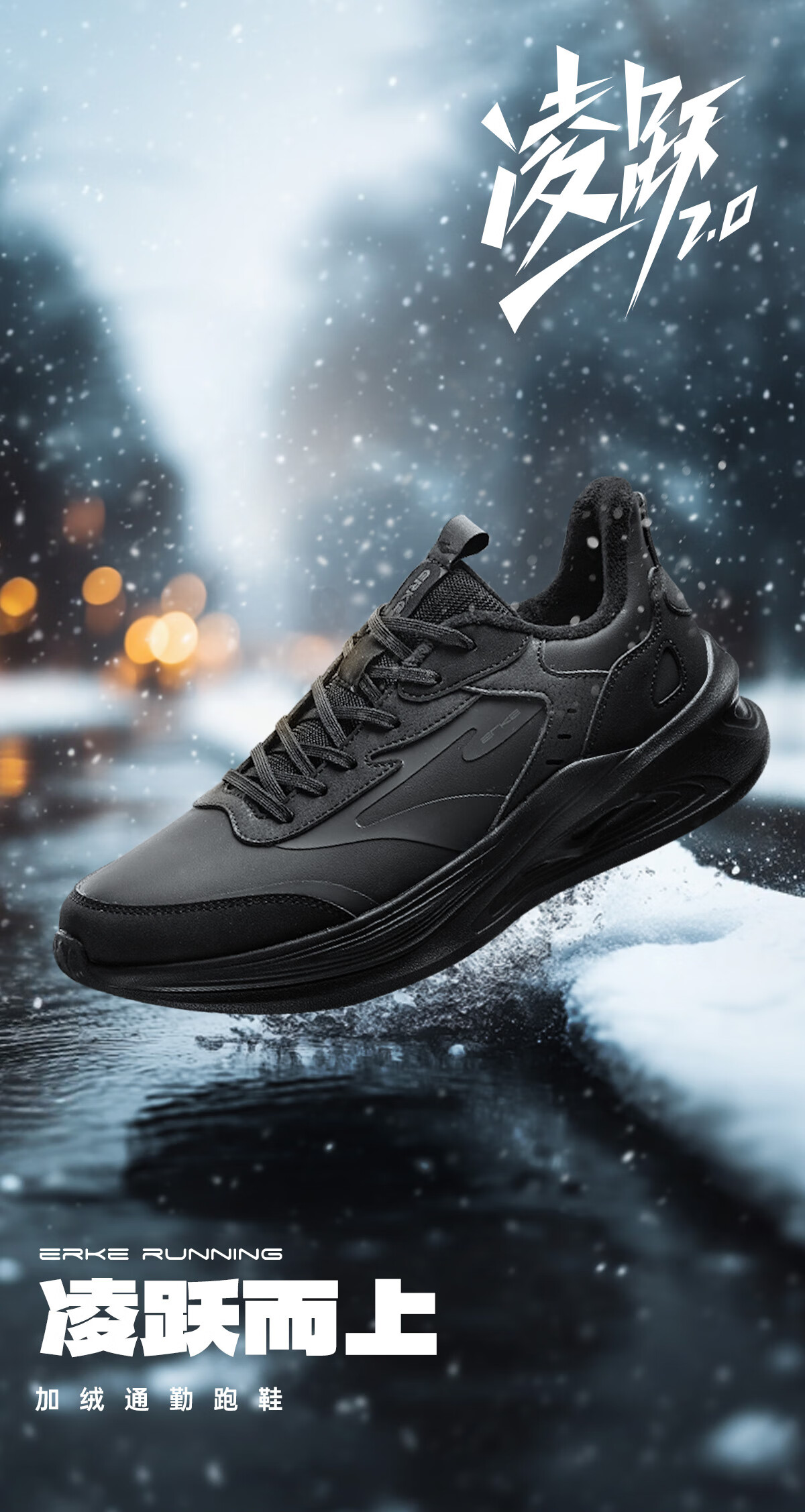 鸿星尔克凌跃2跑鞋加绒款冬季新款保暖棉鞋跑步鞋缓震加棉运动鞋子男鞋 正黑 42