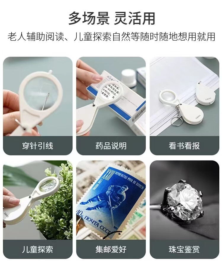 常为者外出便携式折叠放大镜老年人出门看价格标签高清迷你看报阅读神器 放大镜1个装