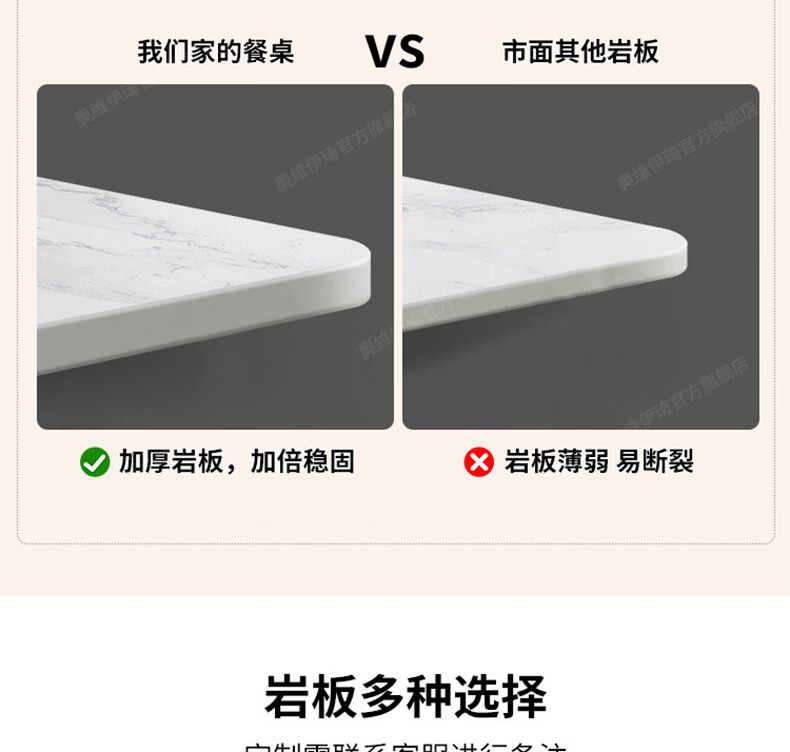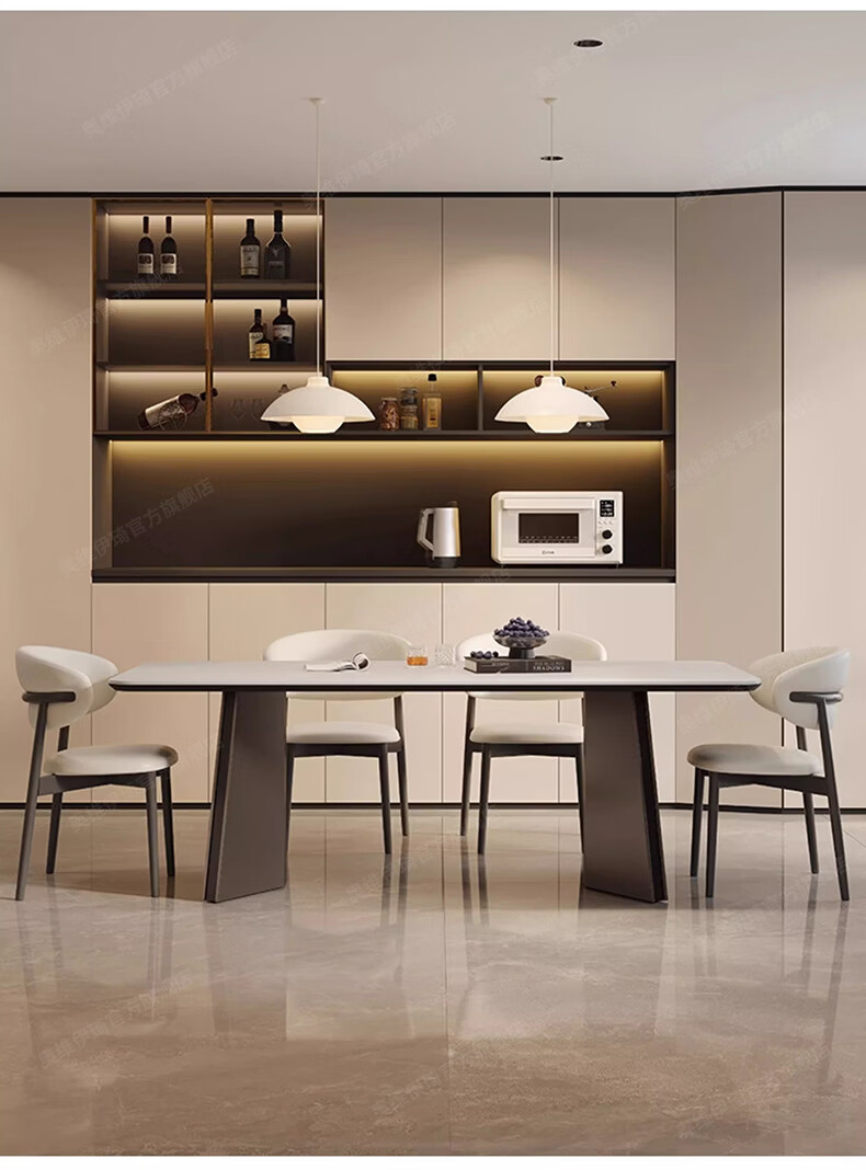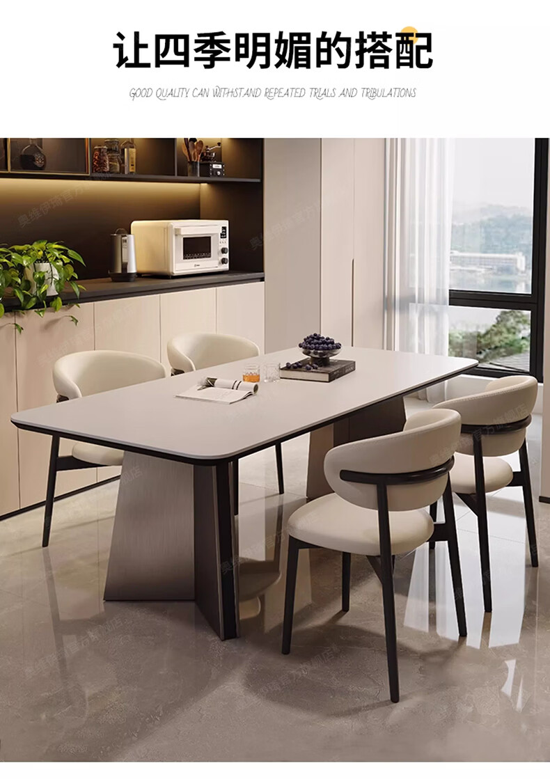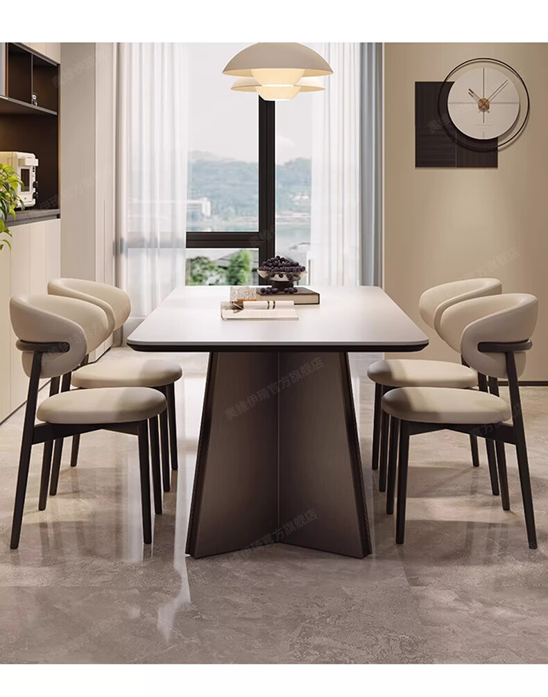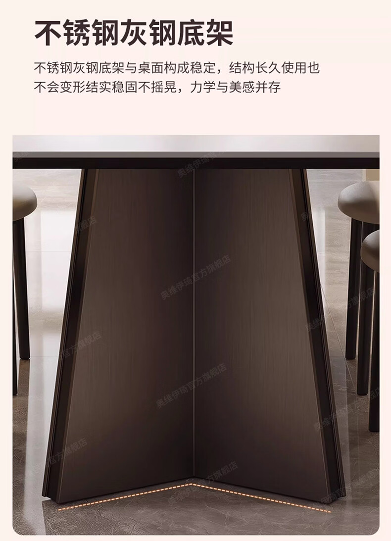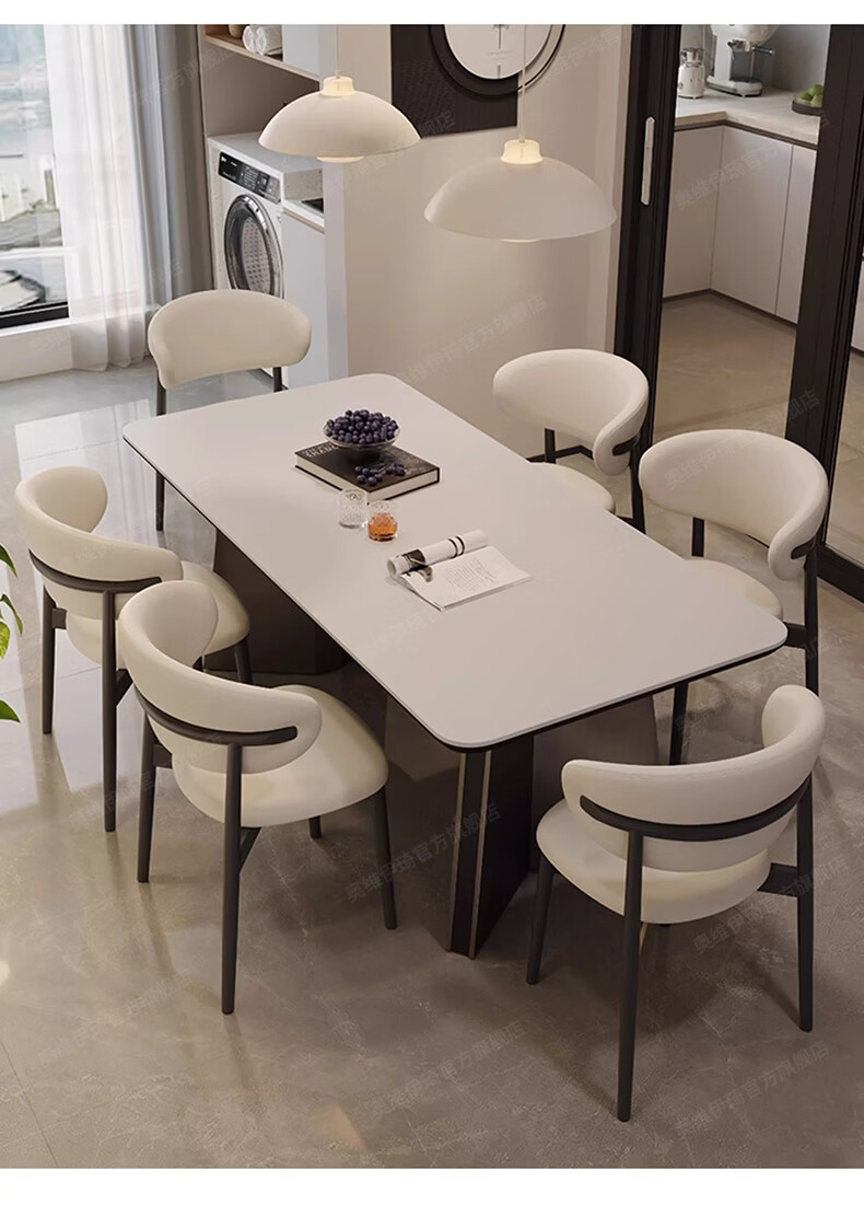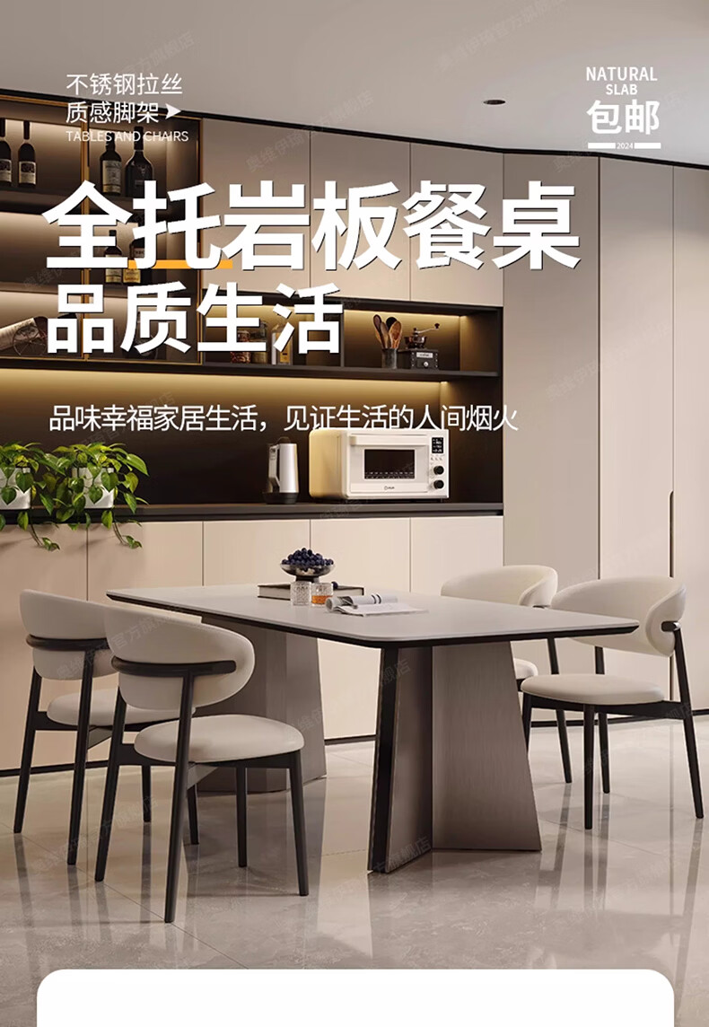 奥维伊琦意式轻奢小户型岩板餐桌椅家用组合现代简约长方形桌子 主图热销款:【加厚不锈钢脚】岩板餐桌+4张羊角椅 130x70x75cm【广东佛山发货/正品保证】