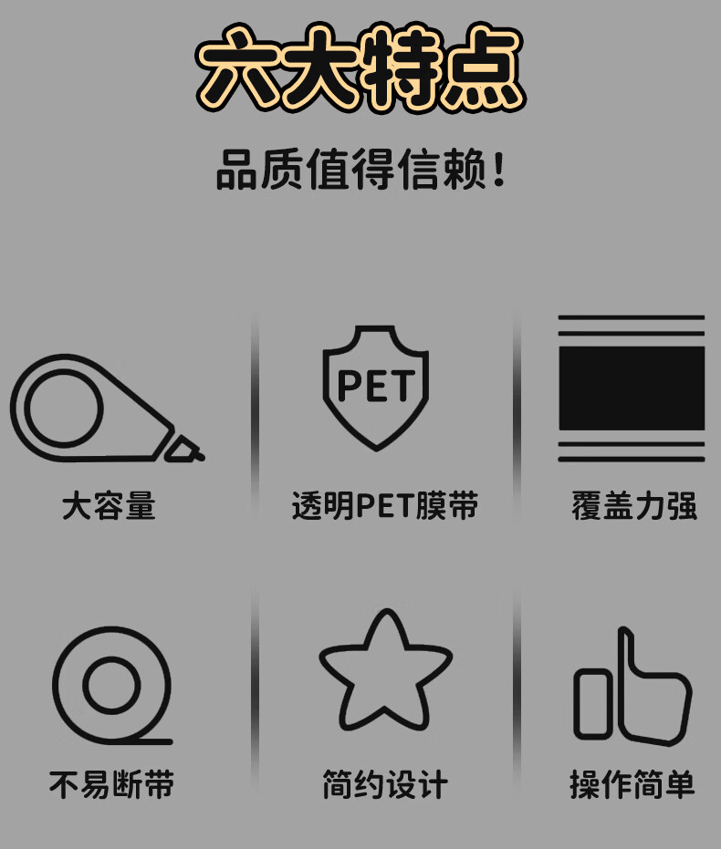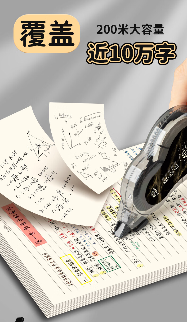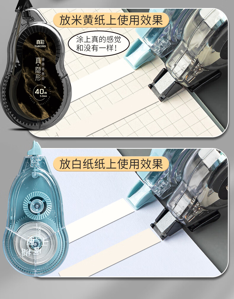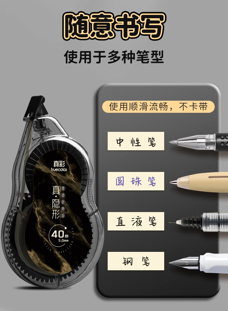 真彩(TRUECOLOR)黑色隐形修正带小学生专用涂改带初中生专用改正带大容量简约原纸色修改带学生开学文具5支装5021B