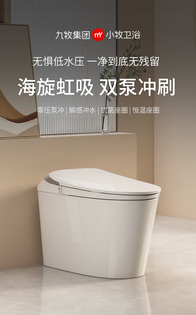 九牧(JOMOO)小牧卫浴智能马桶S3系列轻智能除臭抗菌自动冲水带水箱一体式 S3升级 无棱内壁+带水箱1级水效 305/300mm 【290-390以内选择】