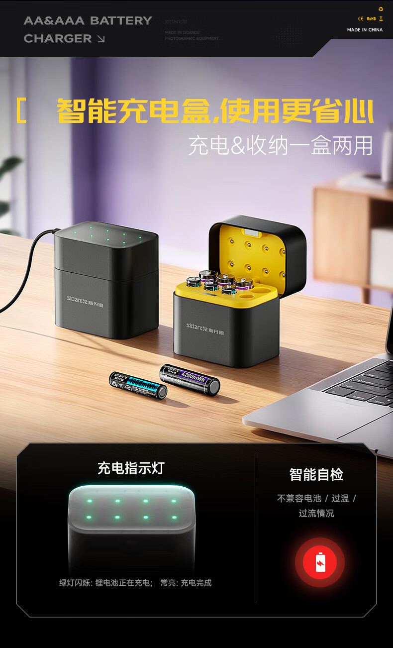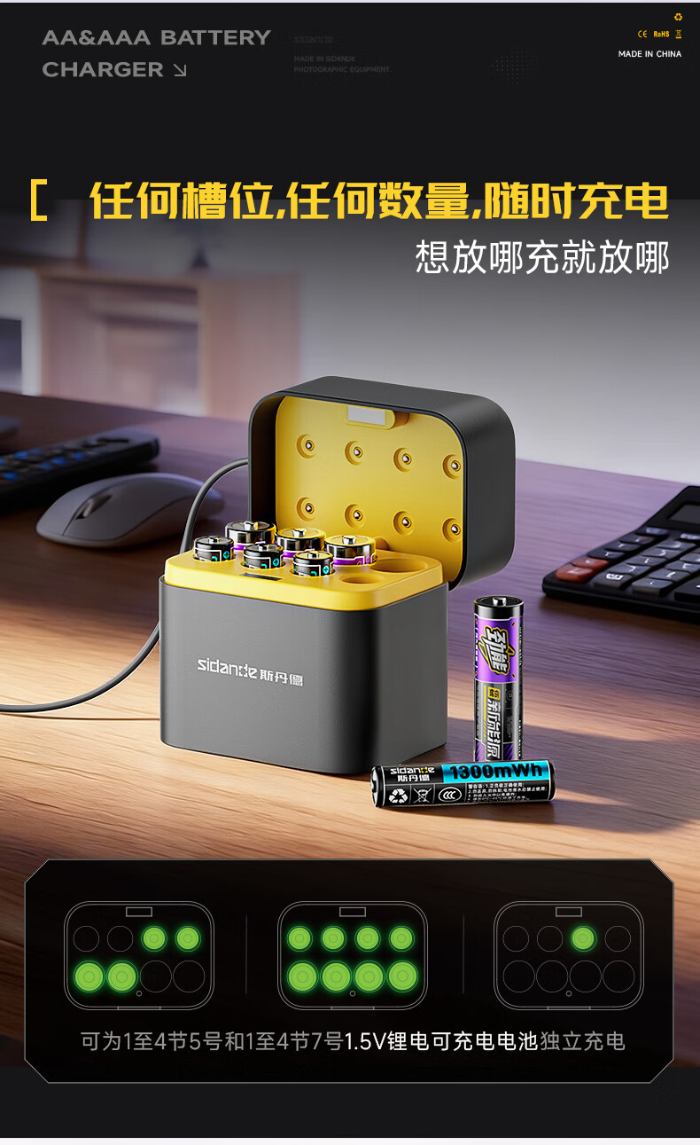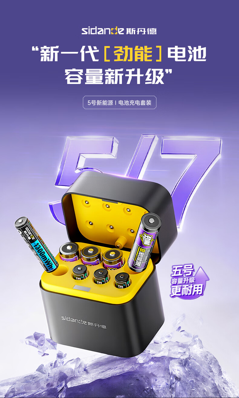 斯丹德(sidande)5/7号充电锂电池4200mWh8粒套装AA五号1.5V快充适用智能门锁/游戏手柄/摇控器/血压计/玩具/话筒等