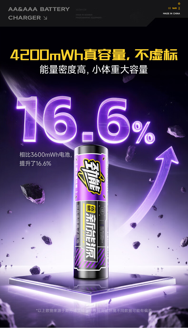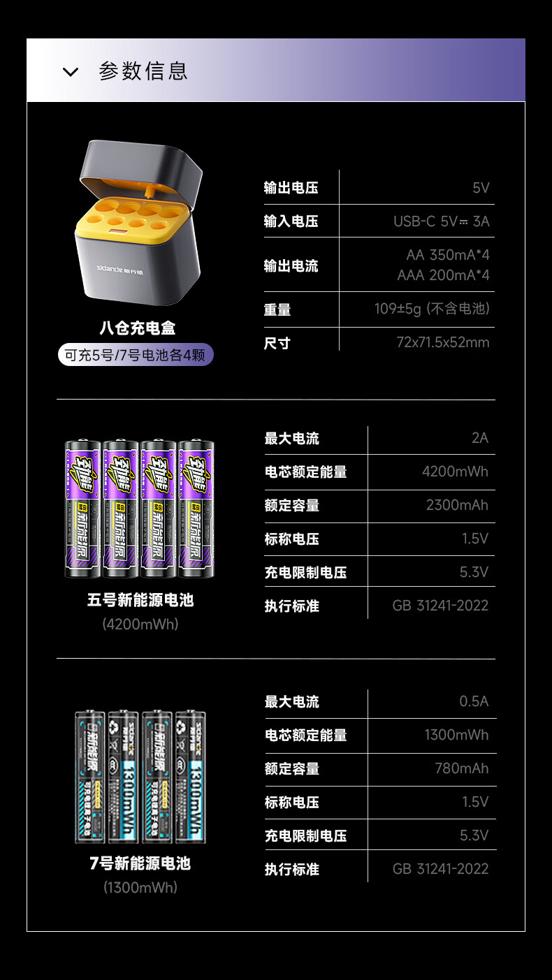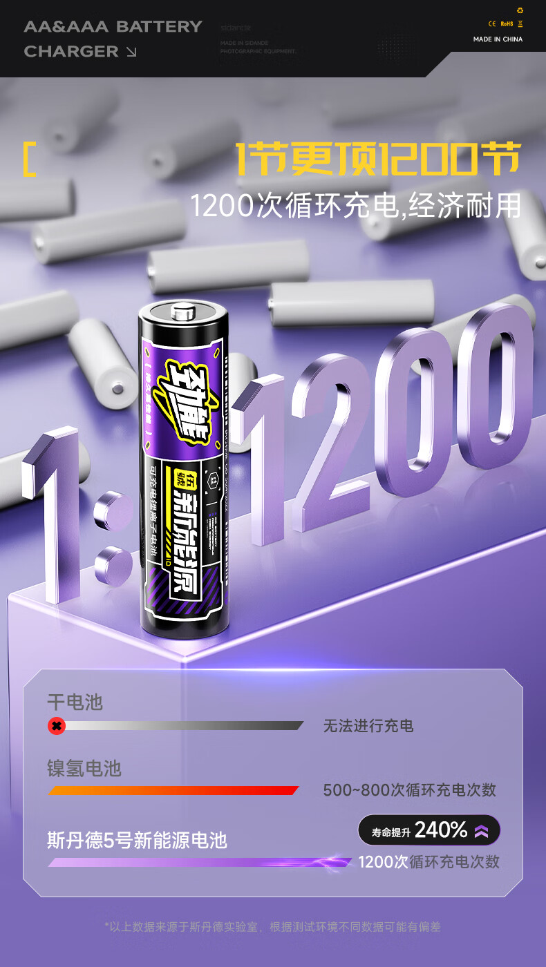 斯丹德(sidande)5/7号充电锂电池4200mWh8粒套装AA五号1.5V快充适用智能门锁/游戏手柄/摇控器/血压计/玩具/话筒等