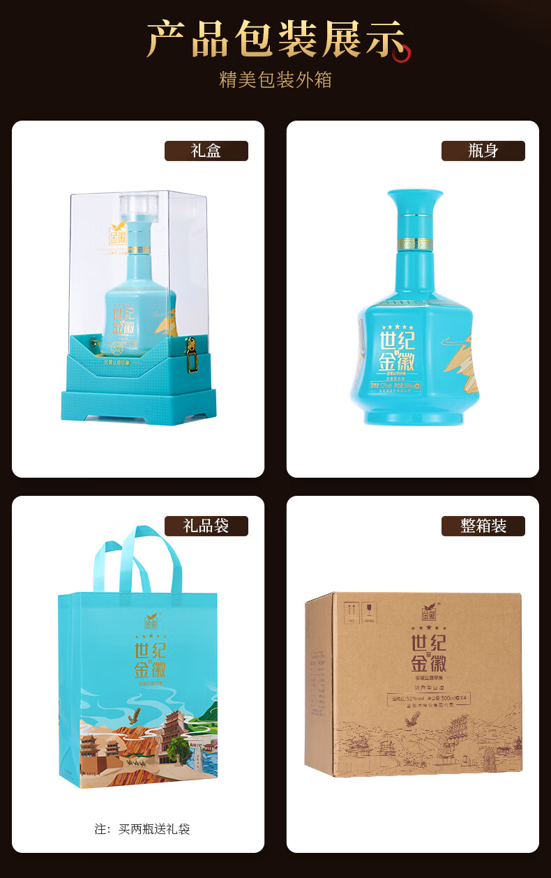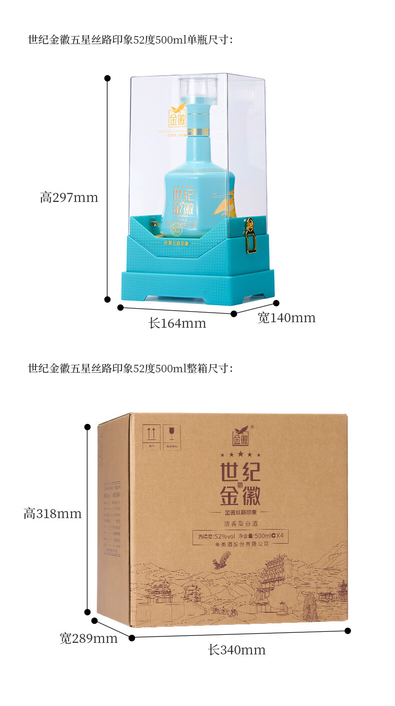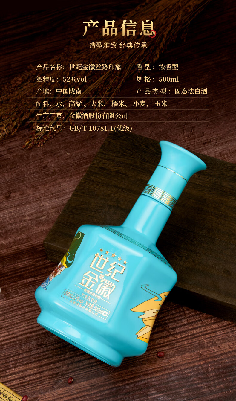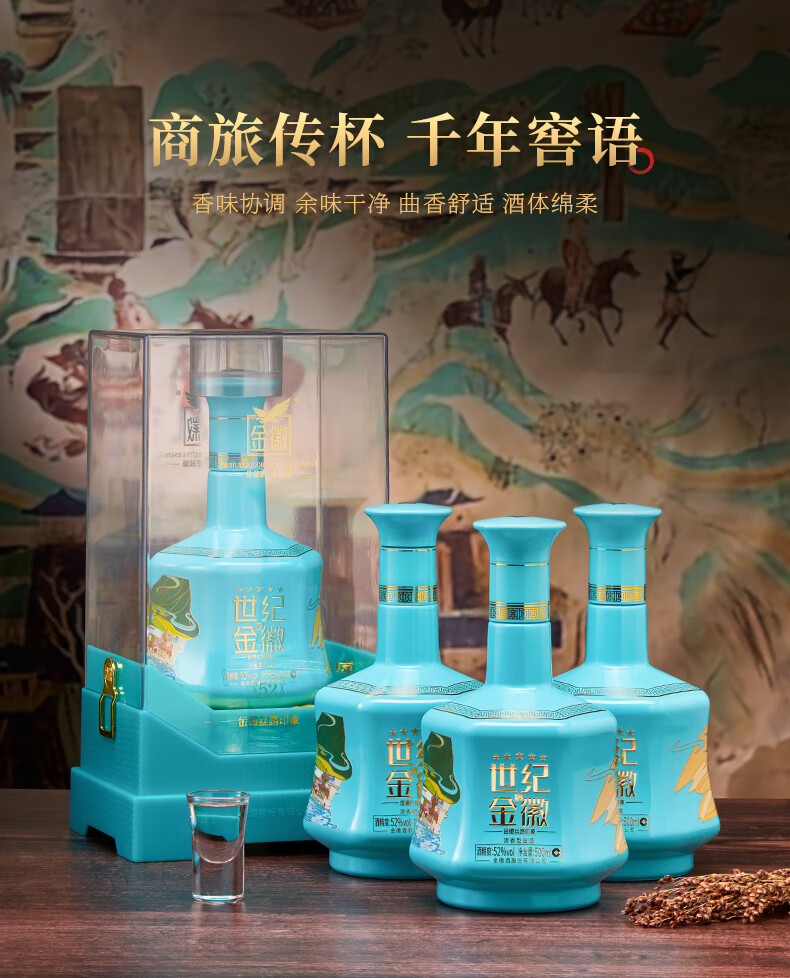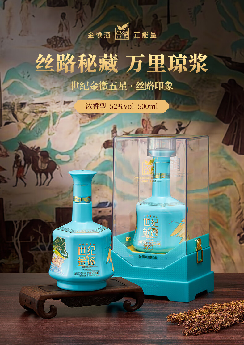 金徽酒 世纪金徽 五星白酒 浓香型白酒 52度 500mL 4瓶 (丝路印象)整箱装