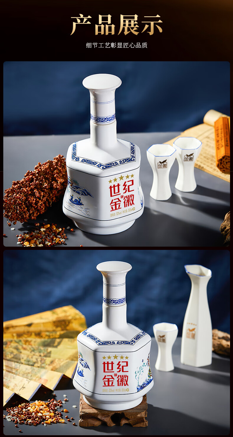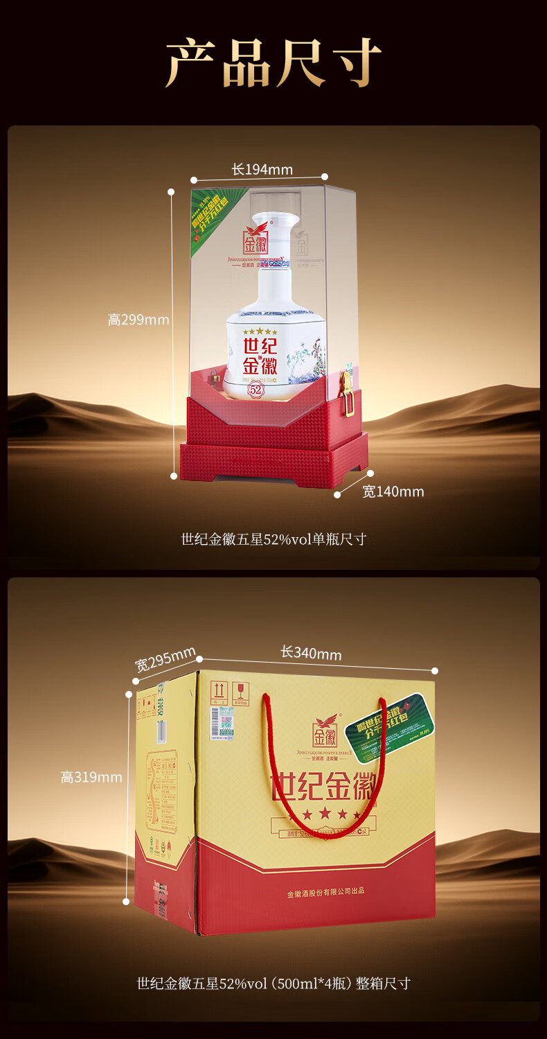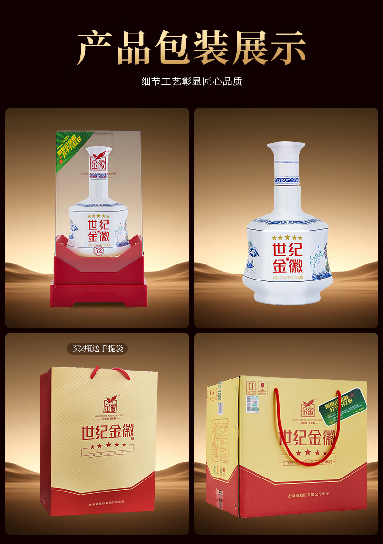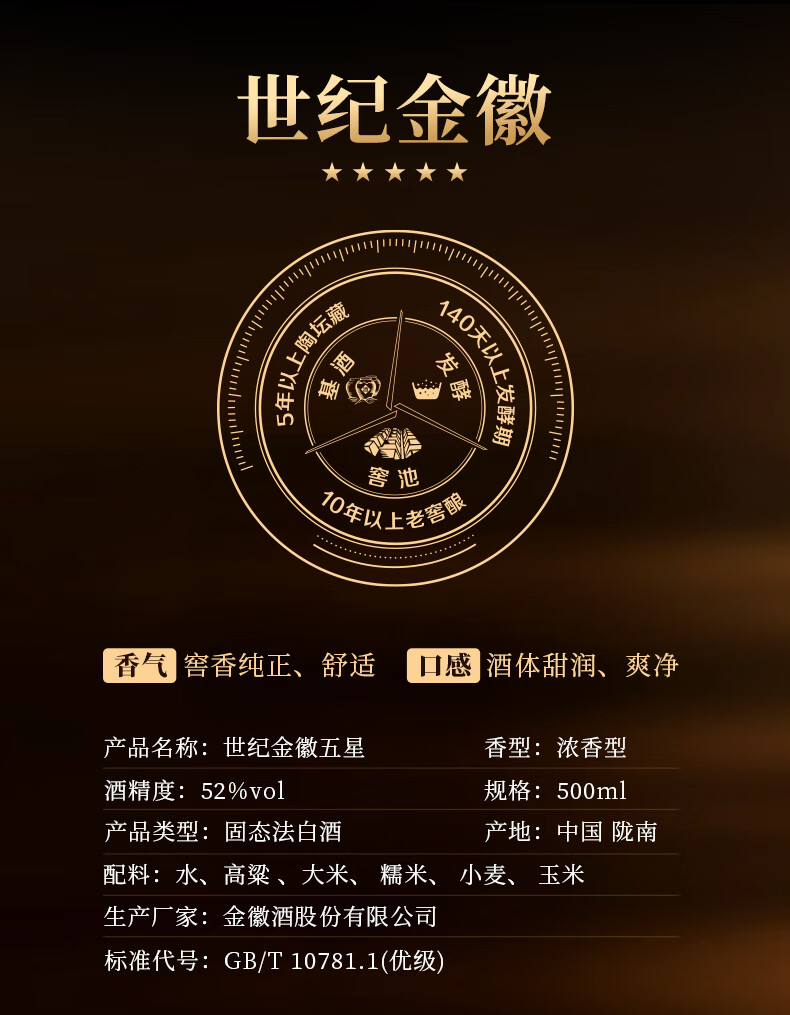金徽酒 世纪金徽 五星白酒 浓香型白酒 52度 500mL 4瓶 (丝路印象)整箱装