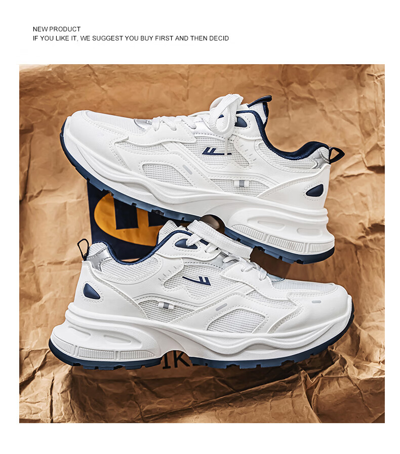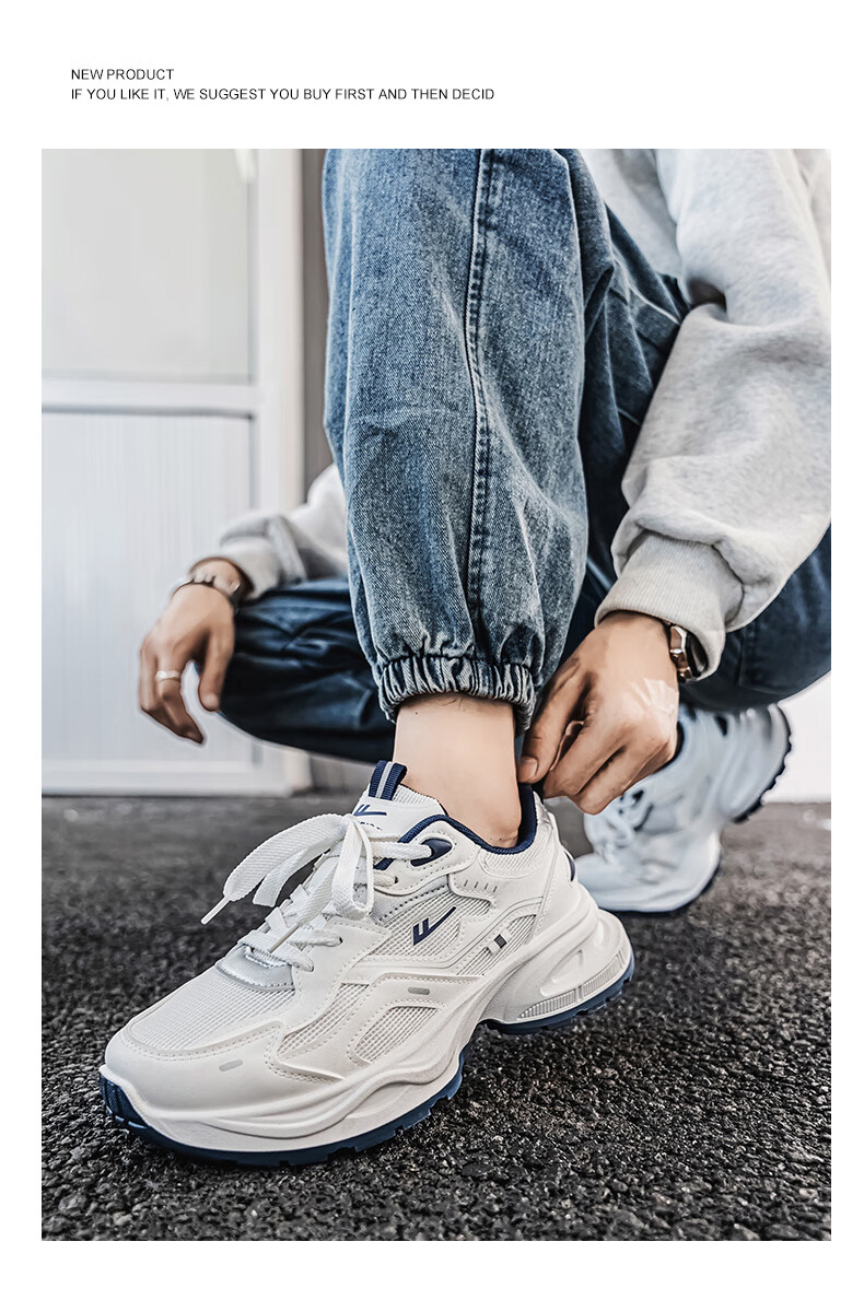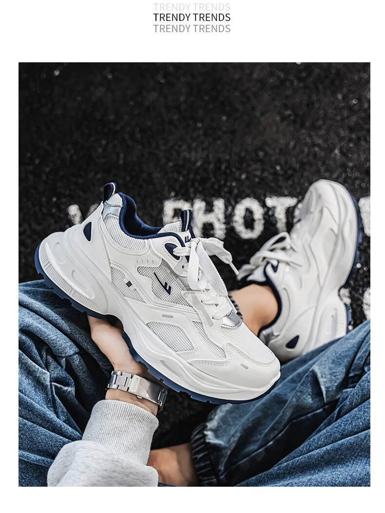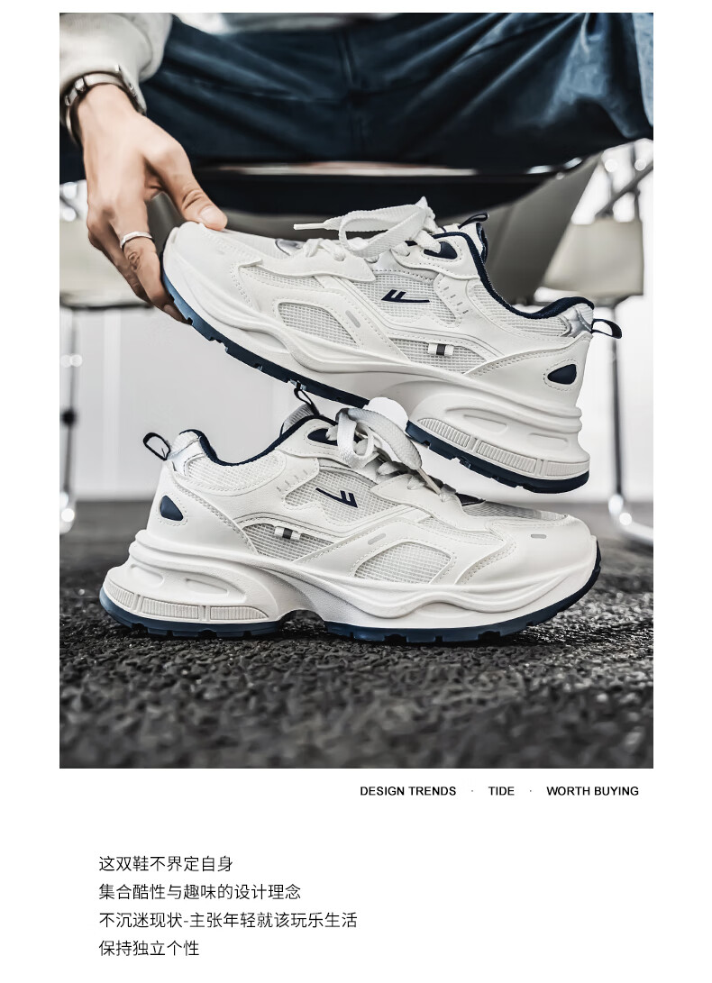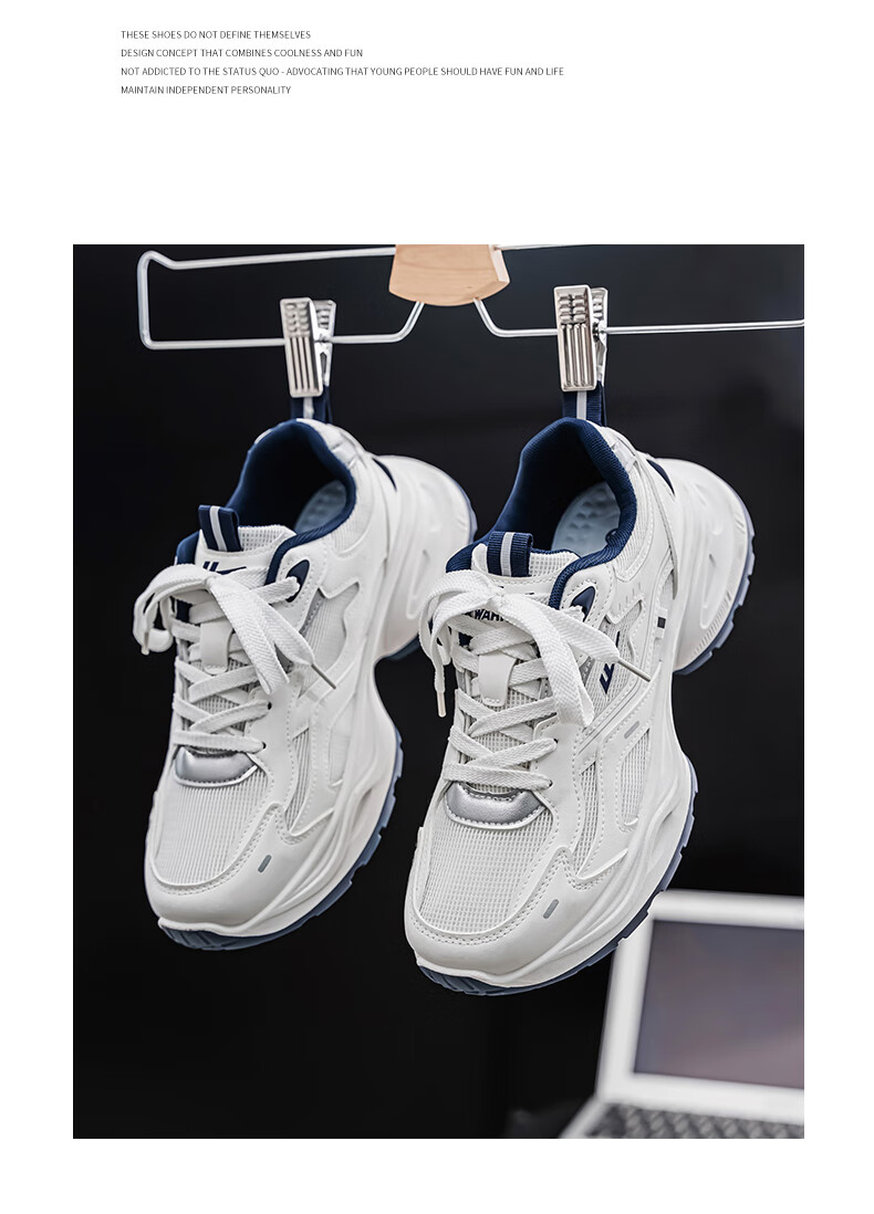 回力(Warrior)官方男鞋运动鞋男秋冬情侣老爹鞋男女士增高休闲鞋子 白深蓝 42