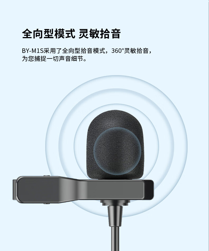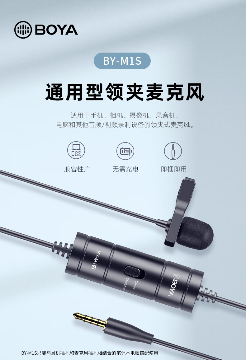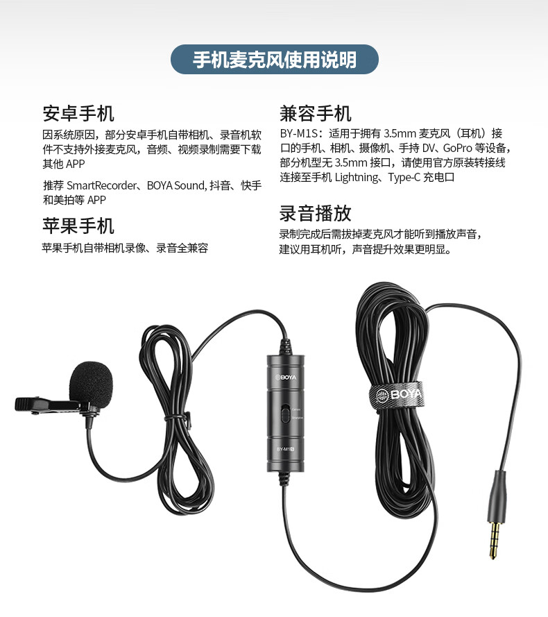 BOYA 博雅麦克风 M1S手机直播领夹麦克风 摄像机单反相机采访短视频配音收音麦克风胸麦小蜜蜂话筒 6米
