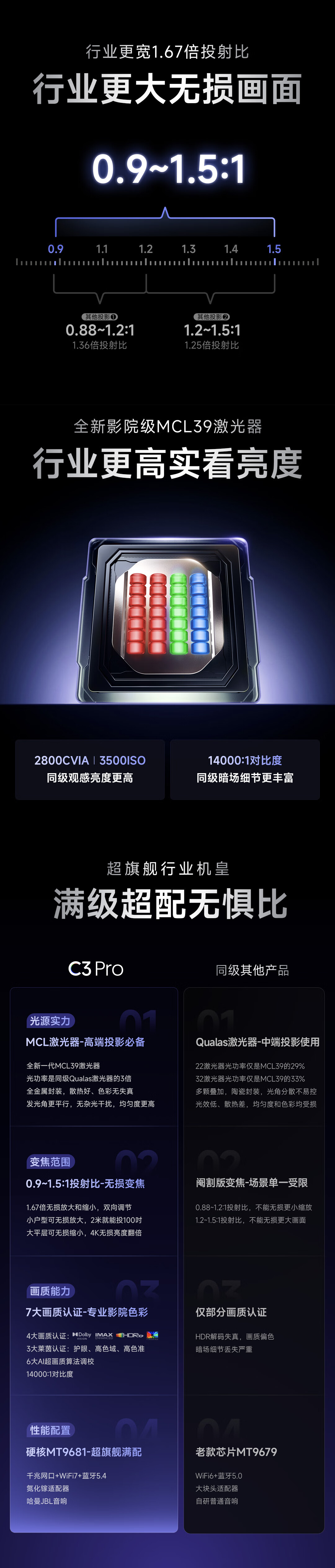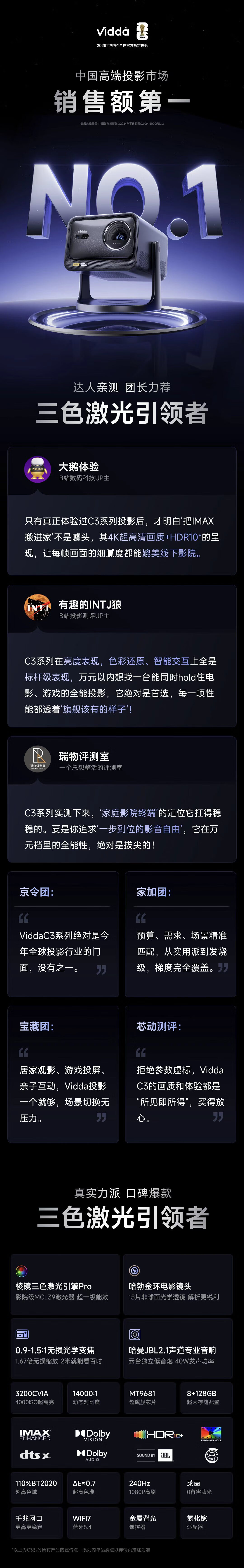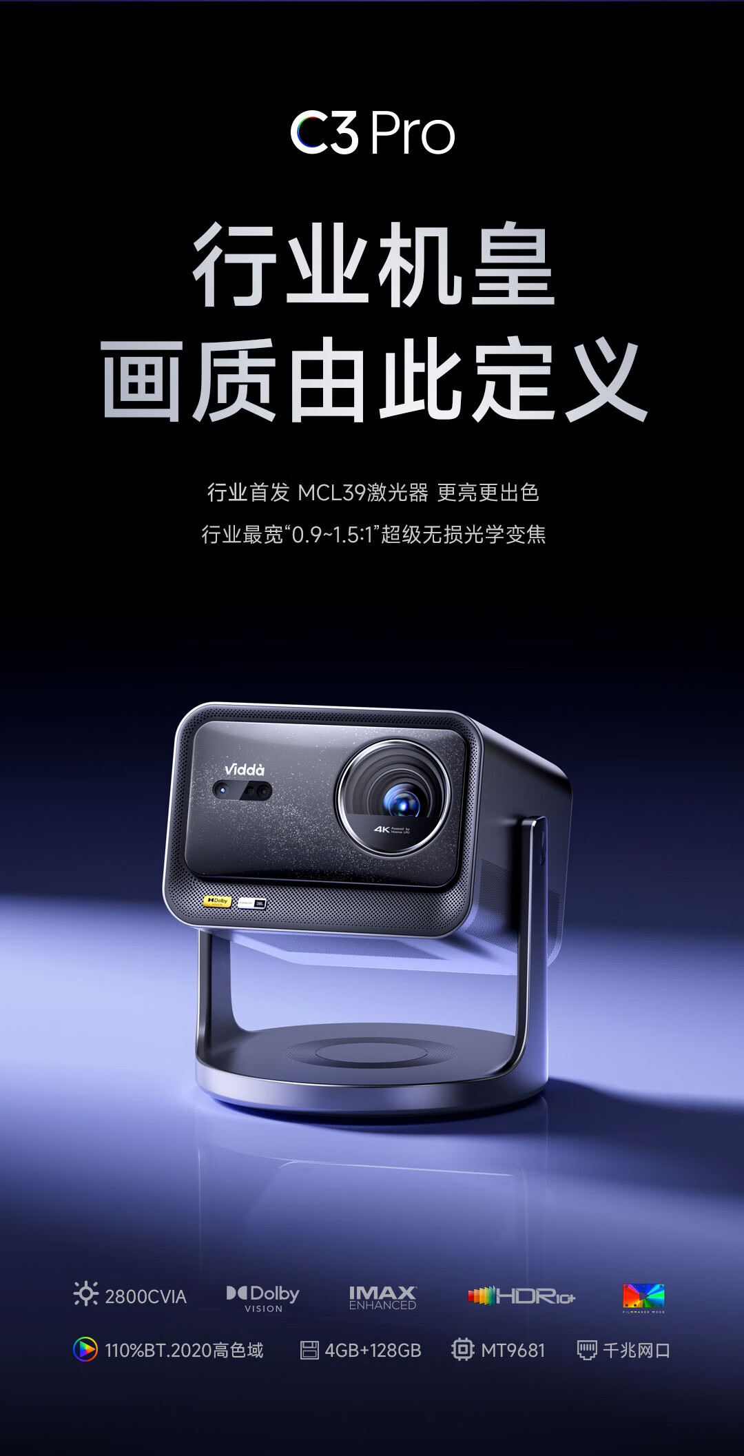 Vidda C3 Pro 海信4K超高清三色激光投影仪家用投影机 1.67倍光学变焦+MCL39激光器家庭影院 国家补贴