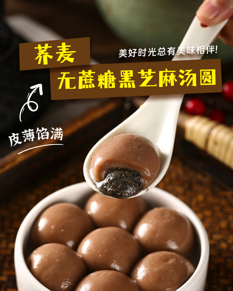 梦唤荞麦汤圆无添加蔗糖糖友可以吃的元宵黑芝麻汤圆粗粮杂粮早餐食品 荞麦黑芝麻汤圆2袋 640g 32枚 无添加蔗糖