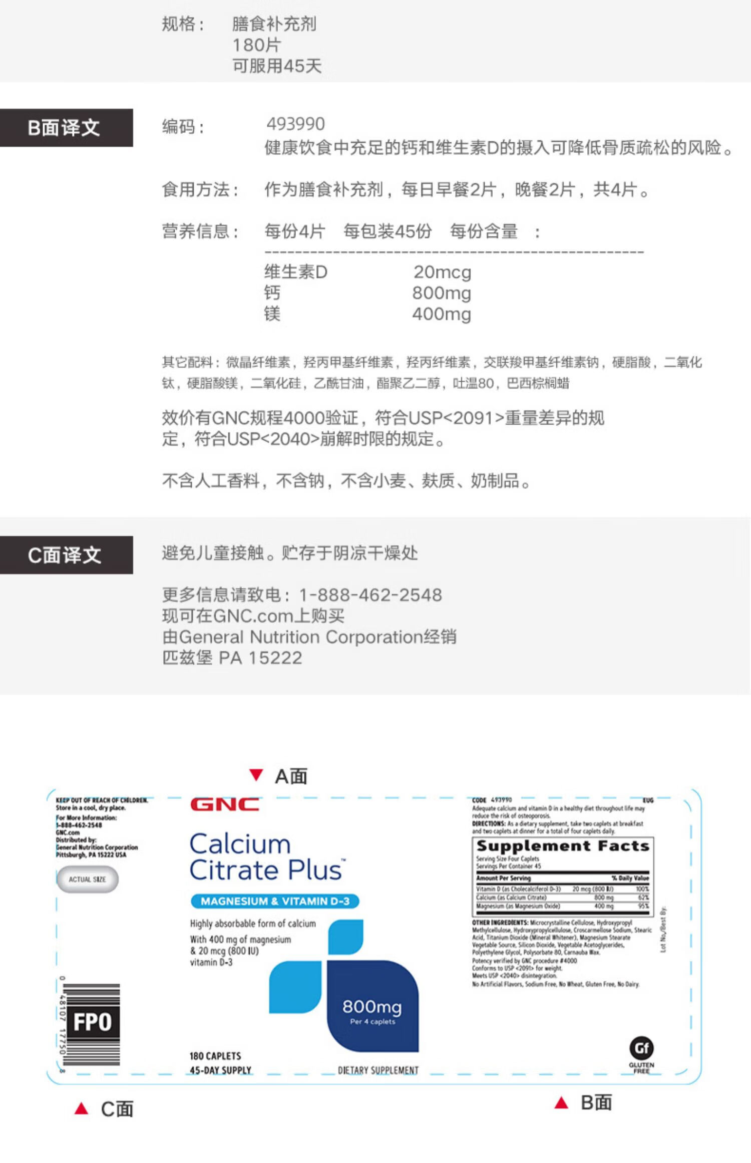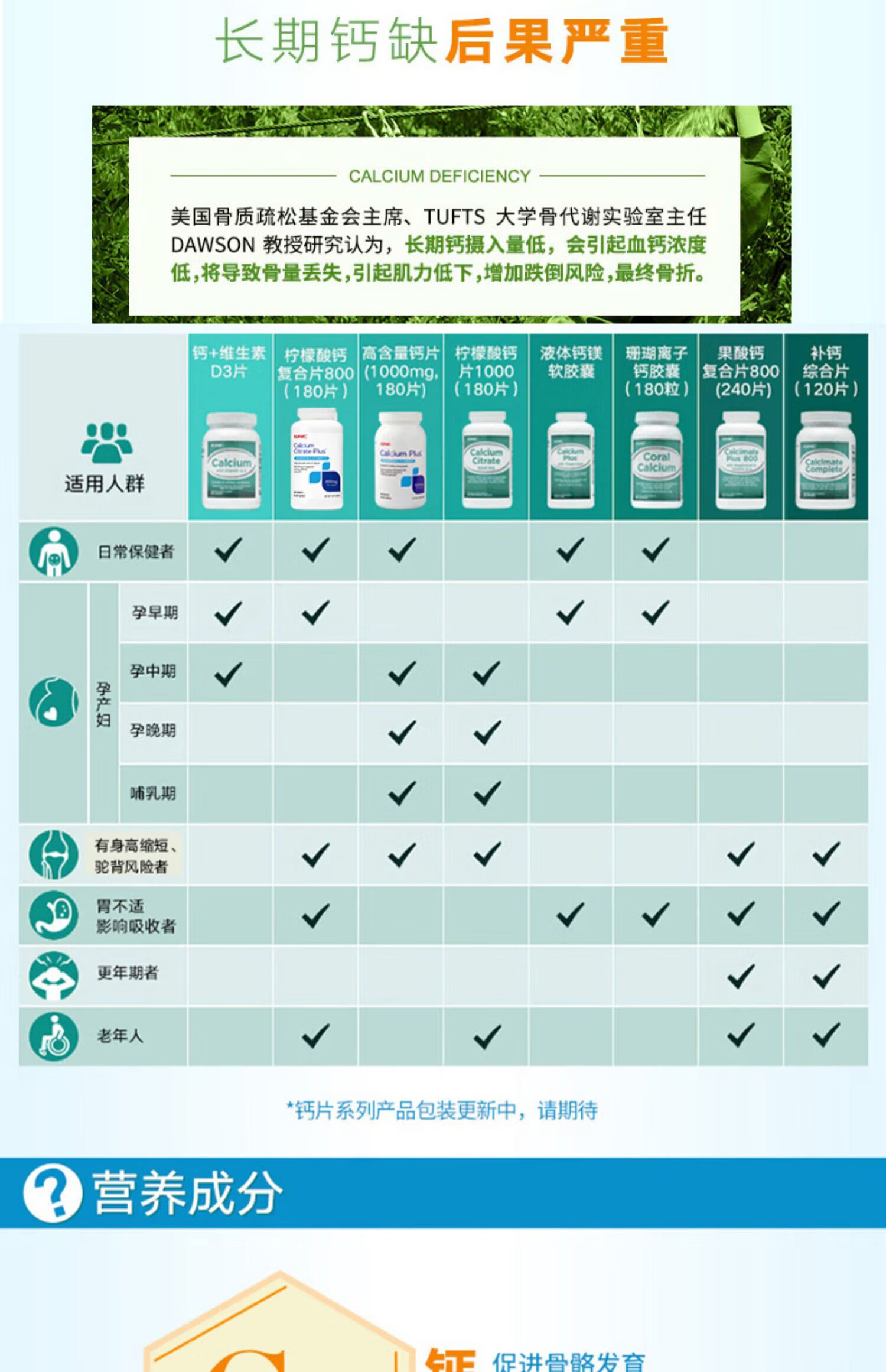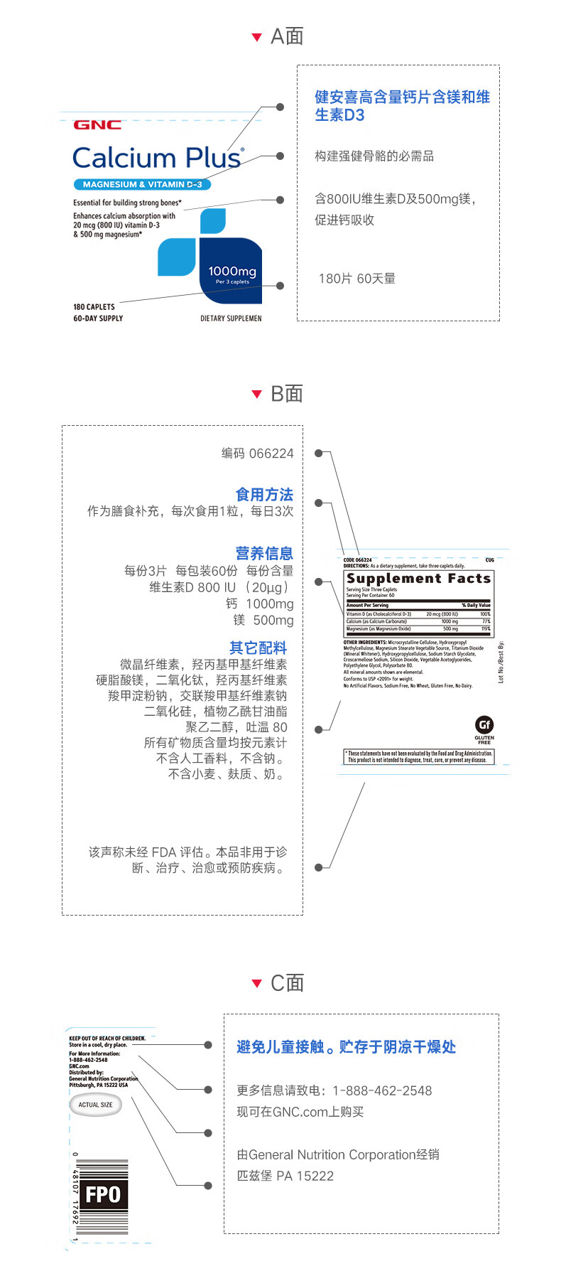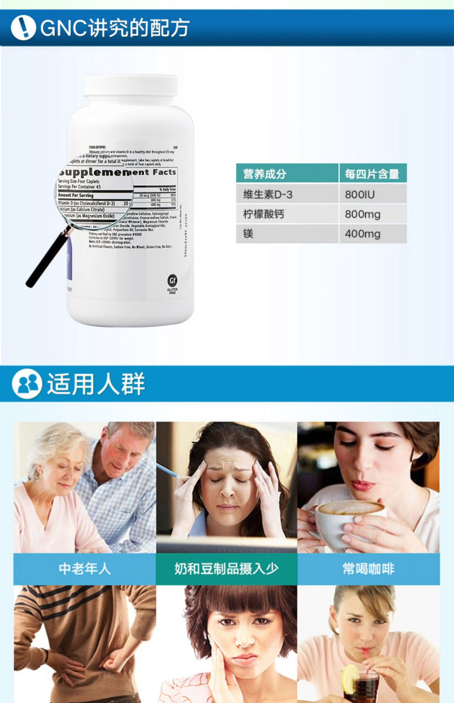 GNC健安喜 钙片易吸收 小粒易吞服 中老年成人补钙 强健骨骼 柠檬酸钙维生素D维生素K胶囊 360粒*1瓶