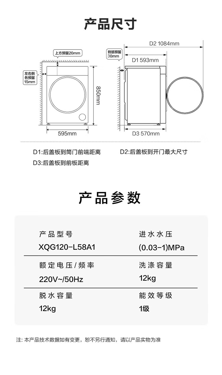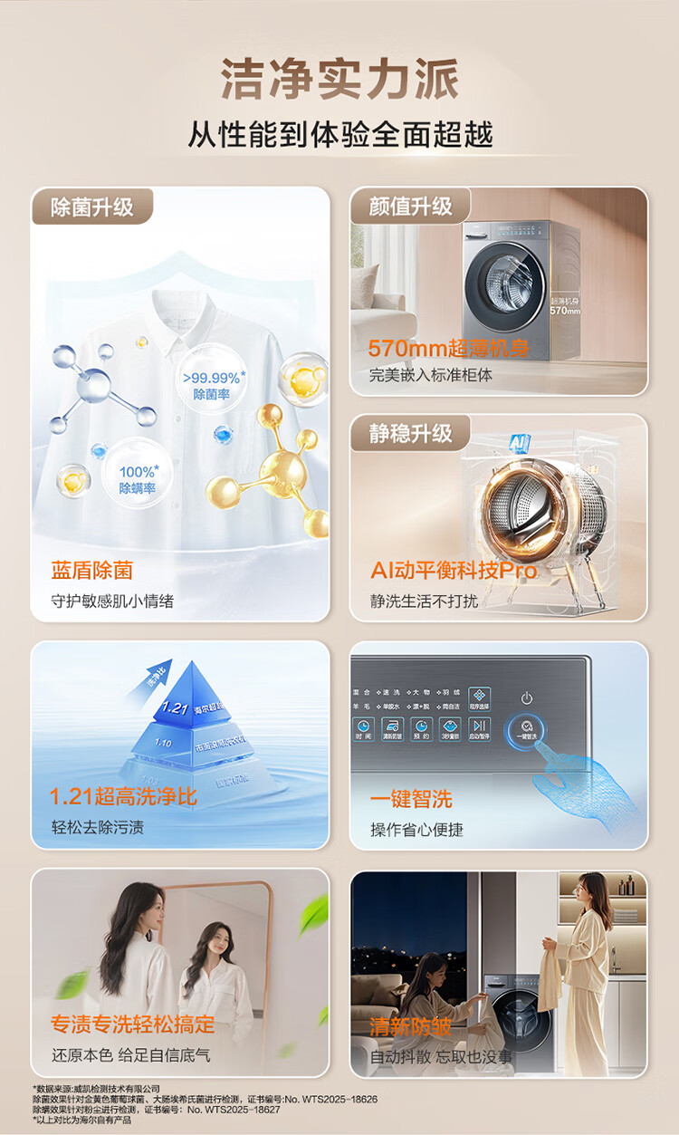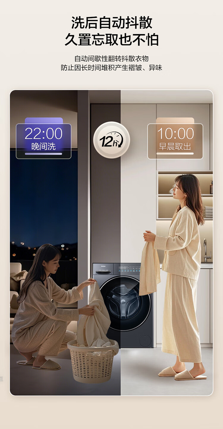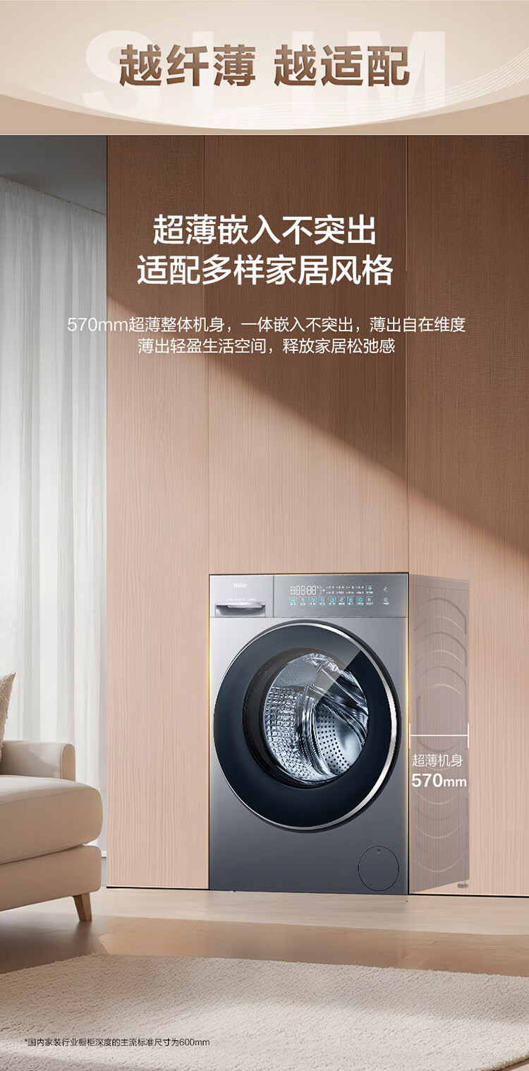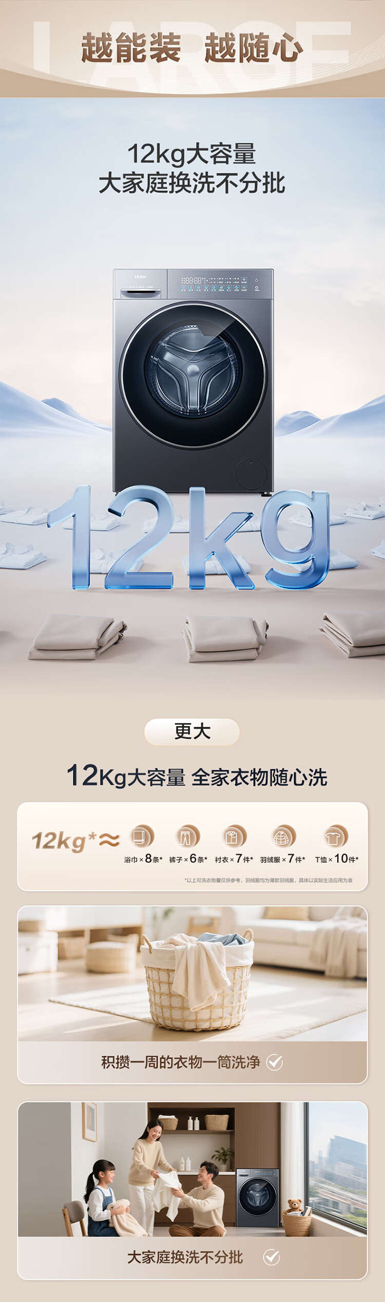 海尔(Haier)滚筒洗衣机全自动12kg家用大容量 25年新品丨超薄平嵌+八维减震+蓝盾除菌 商场同款XQG120-L58A1