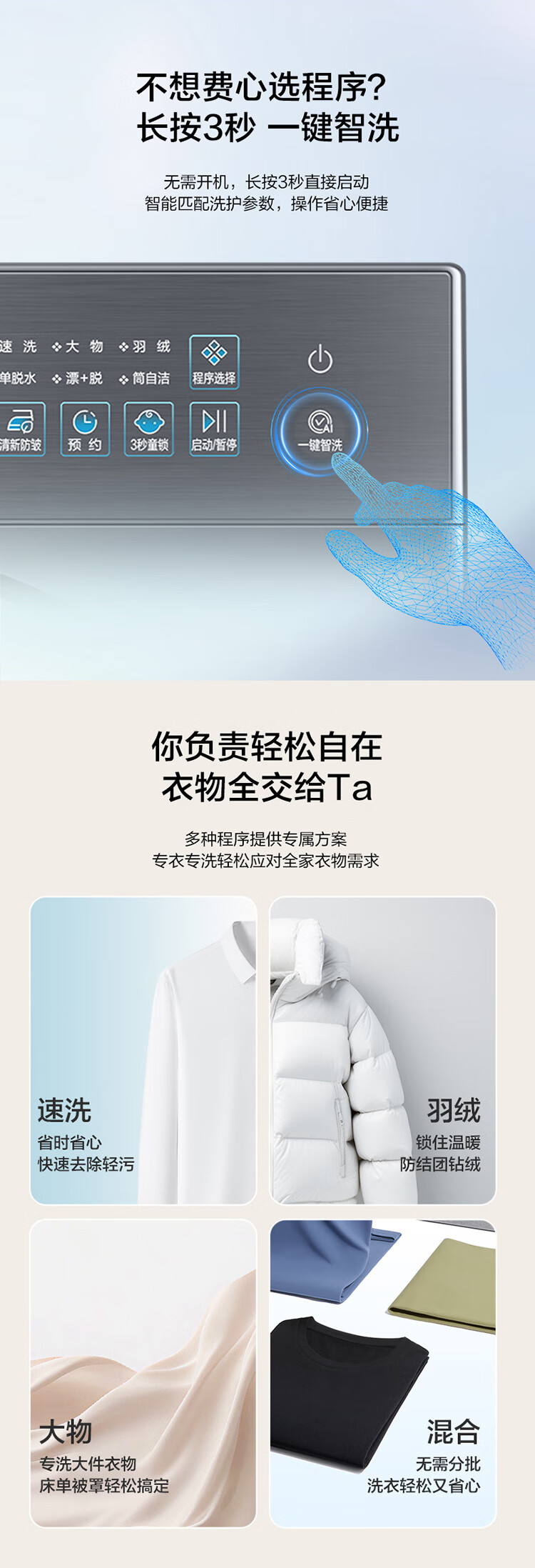 Heiai洗衣机全自动新一级能效家商两用波轮大容量 洗脱烘一体蓝光洗护防缠绕 16KG【升级节能+蓝光风干+强劲动力】