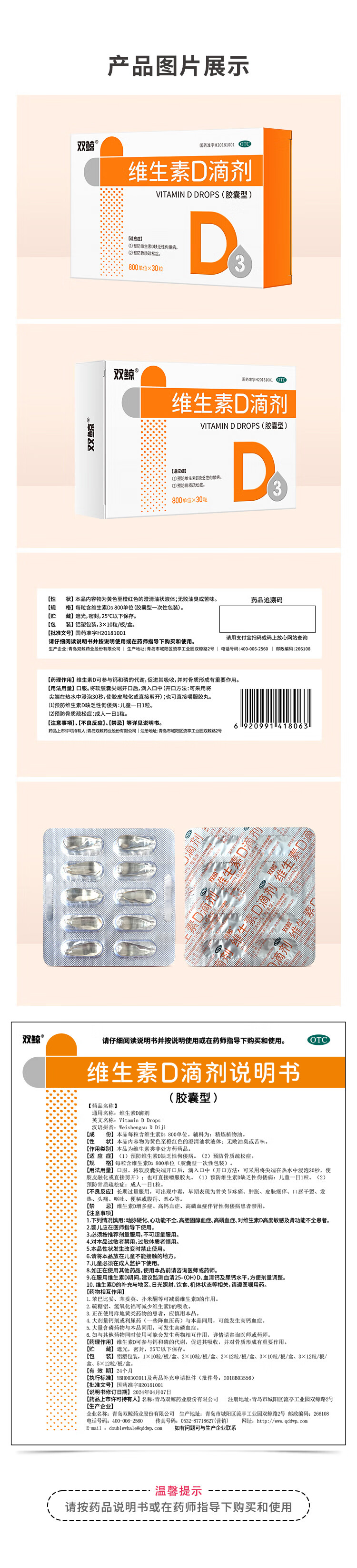 双鲸 维生素D滴剂 800单位*30粒 维生素d3成人 维生素d中老年预防骨质疏松症 成人维生素d促钙吸收补钙d3