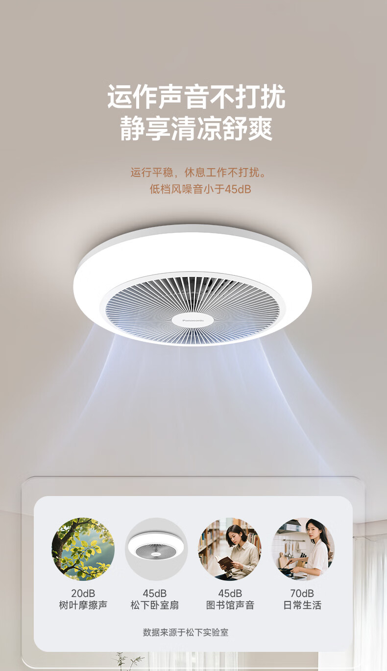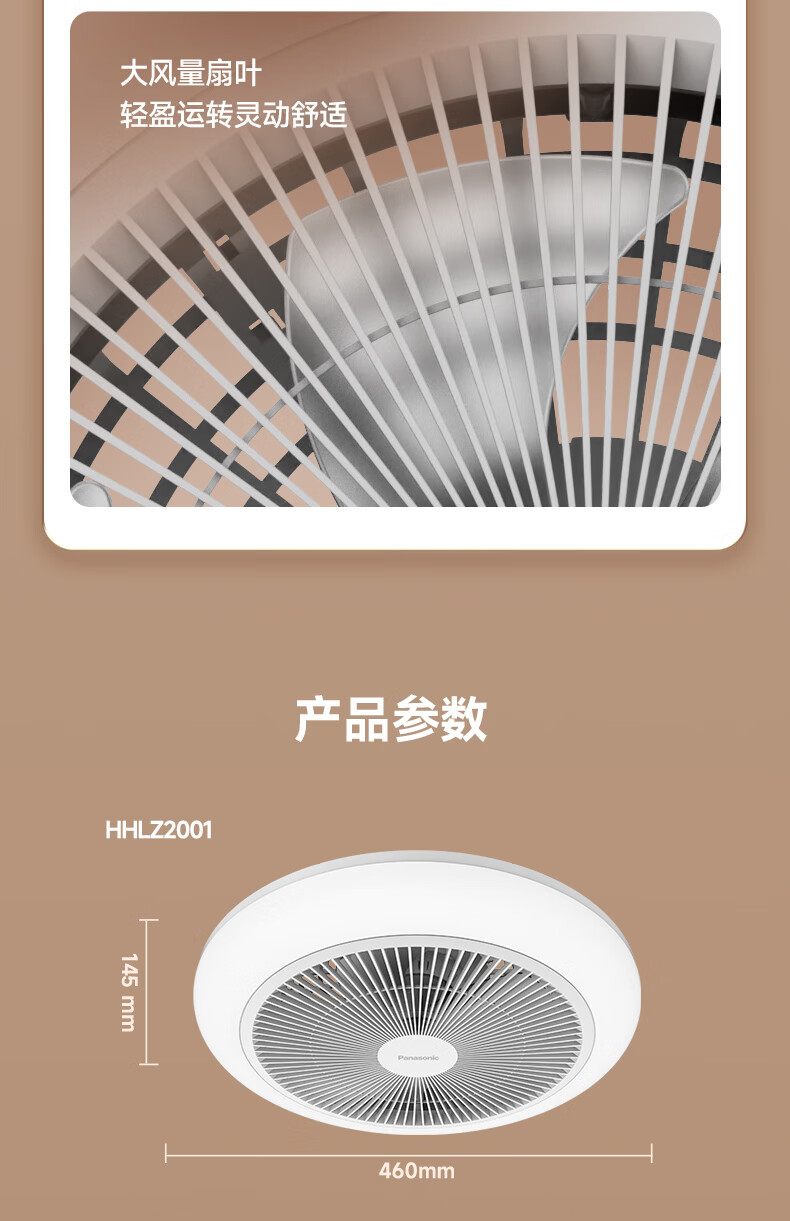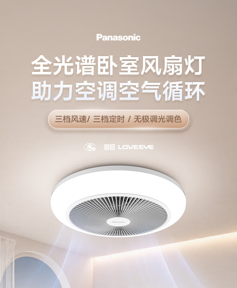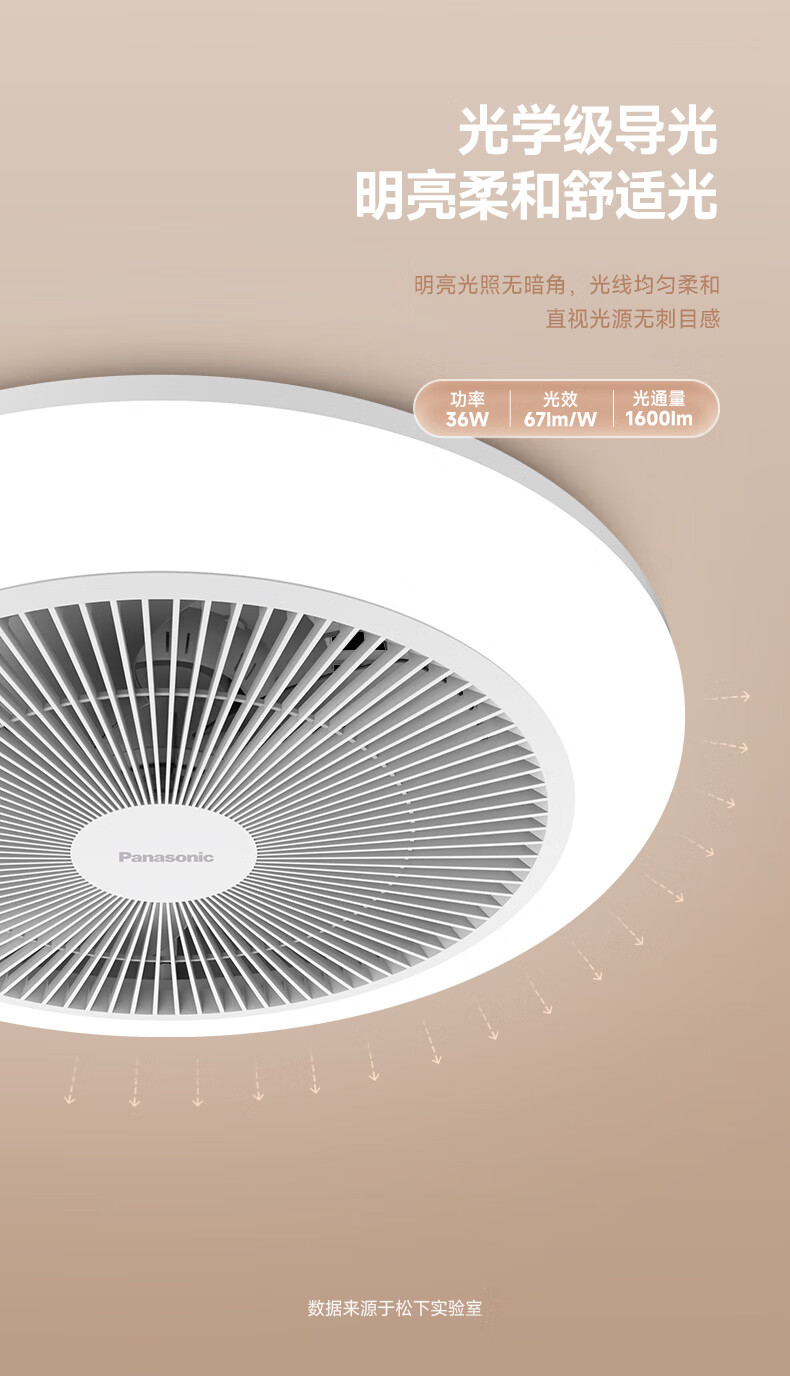 松下(Panasonic)风扇灯全光谱防眩护眼36瓦LED照明IP40风扇灯 HHLZ2001
