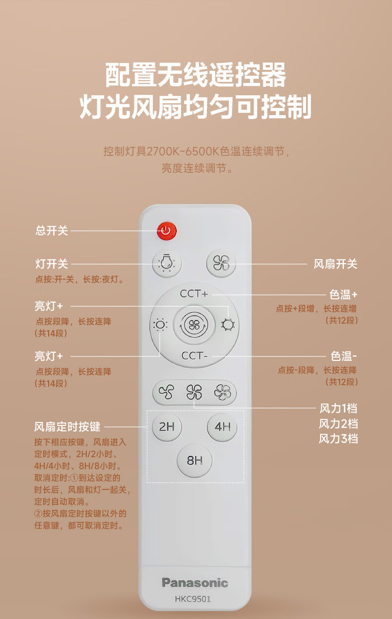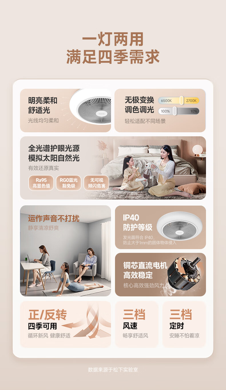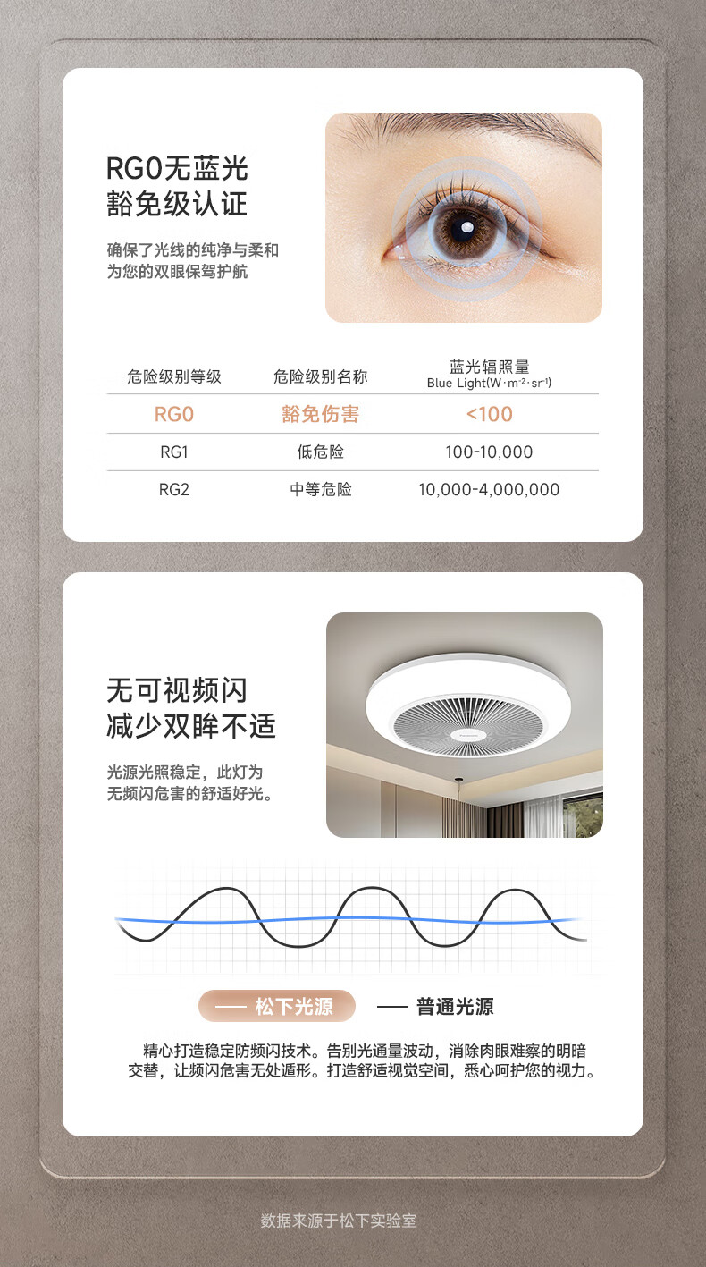 松下(Panasonic)风扇灯全光谱防眩护眼36瓦LED照明IP40风扇灯 HHLZ2001