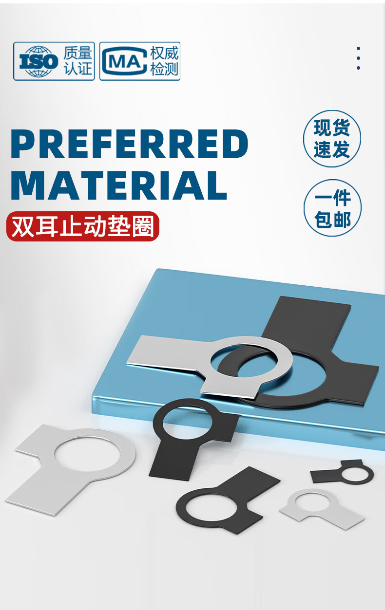 天卓五金GB855 304不锈钢发黑色A3钢双耳止动垫圈止退垫片锁紧片防松挡圈 ---以下为【304不锈钢 GB855双耳】---