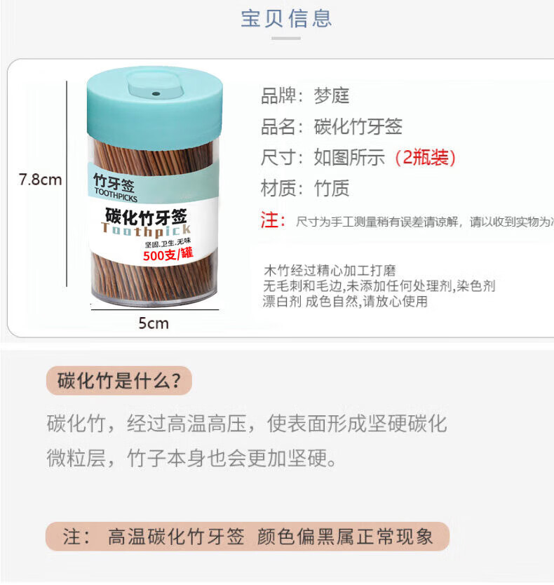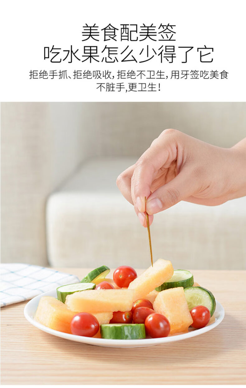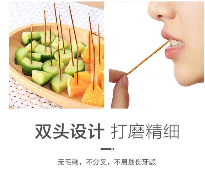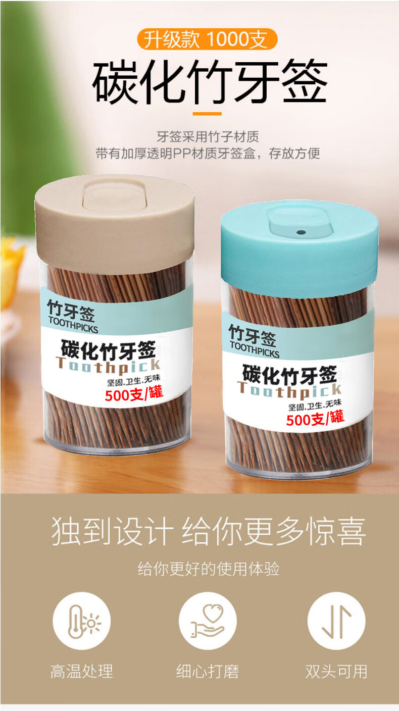 梦庭 一次性牙签碳化竹签水果签组合套装 升级款2罐1000支装 3133