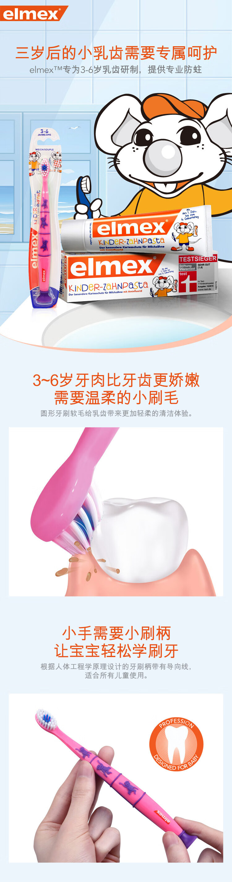 ELMEX艾美适儿童牙刷 4支装 2岁以上 预防蛀牙 呵护牙齿【临期清仓】