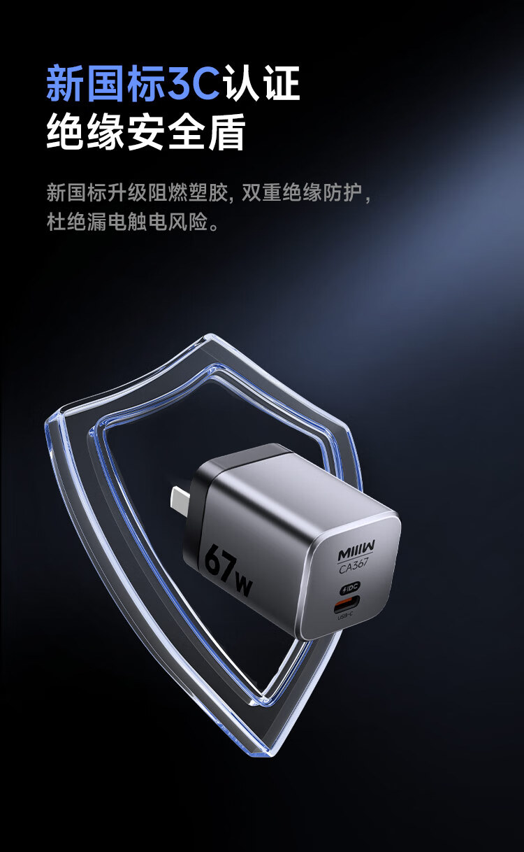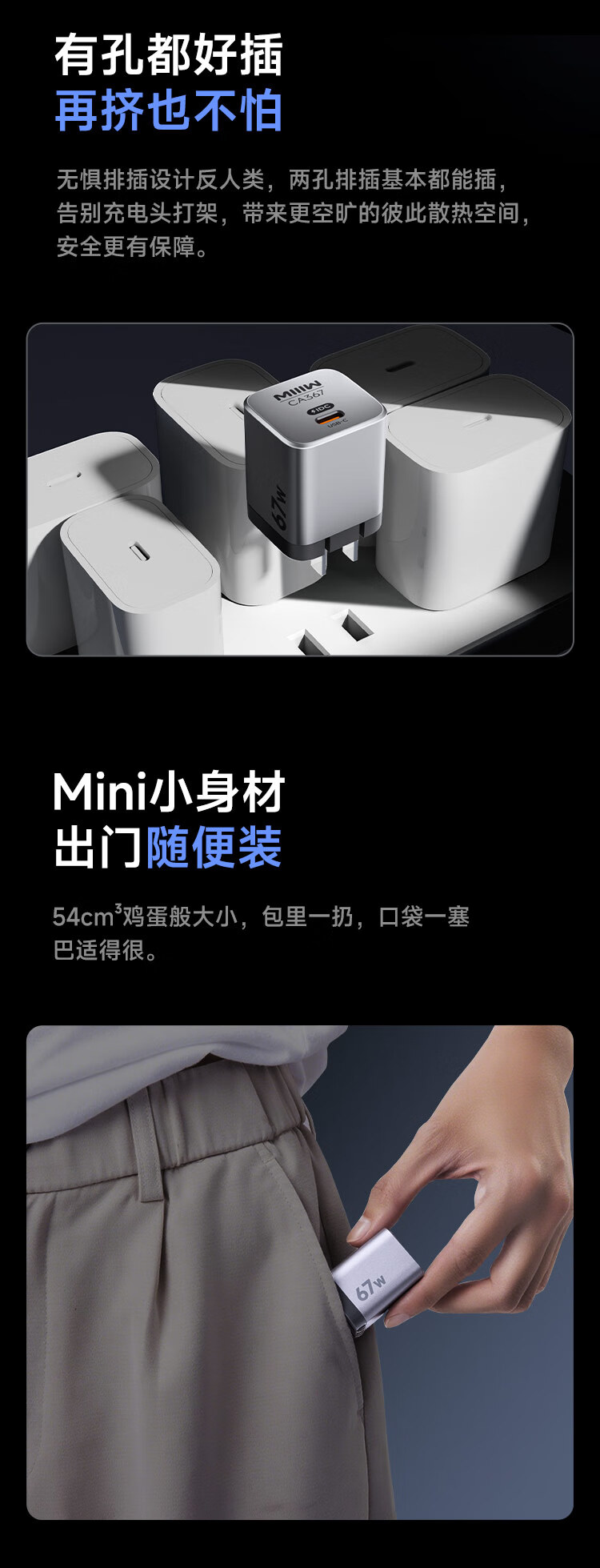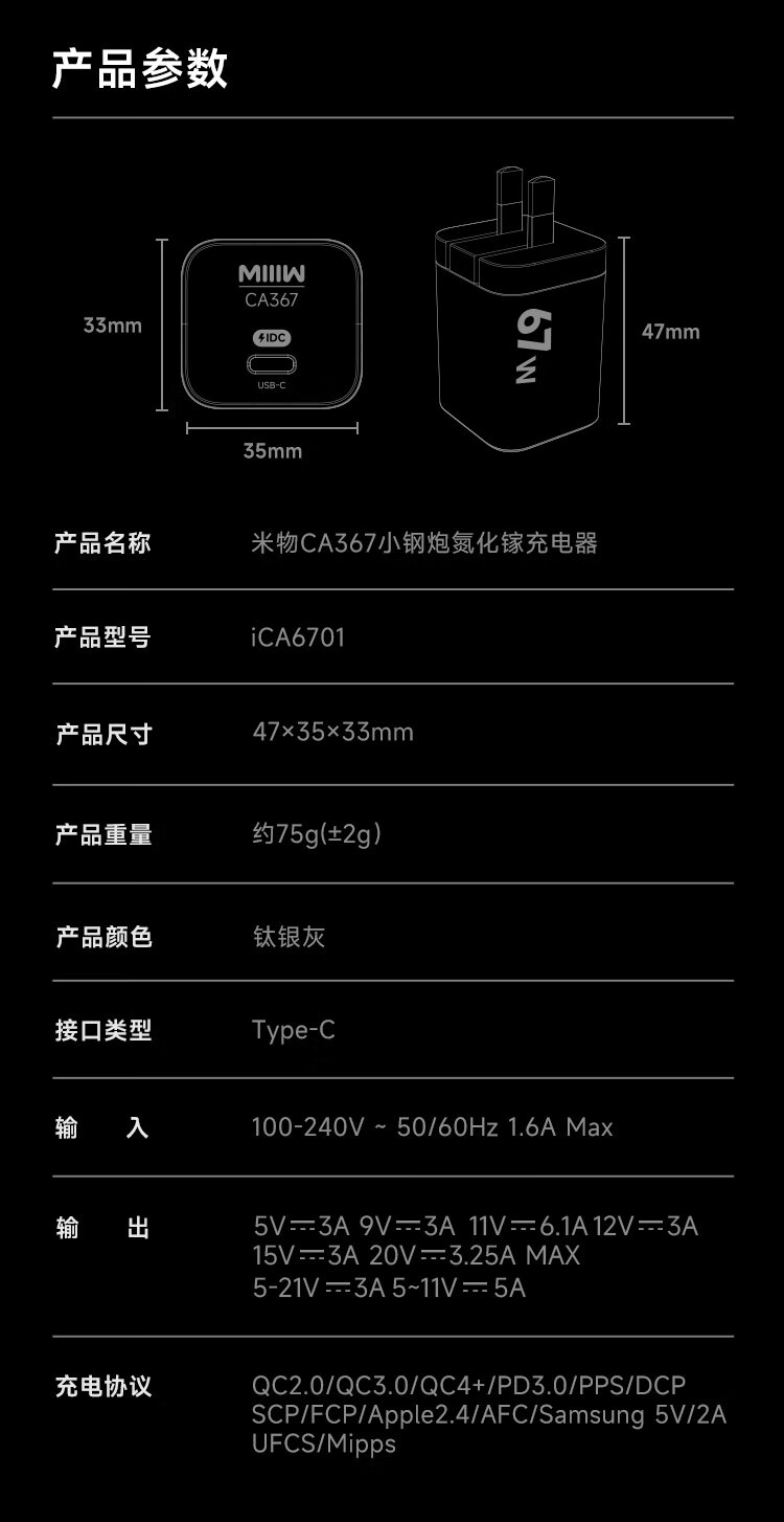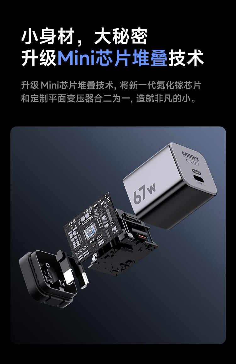 MIIIW米物67W氮化镓小钢炮【新年礼物】type-c快充充电器兼容65W/45W适用苹果/小米 支持小米私有协议
